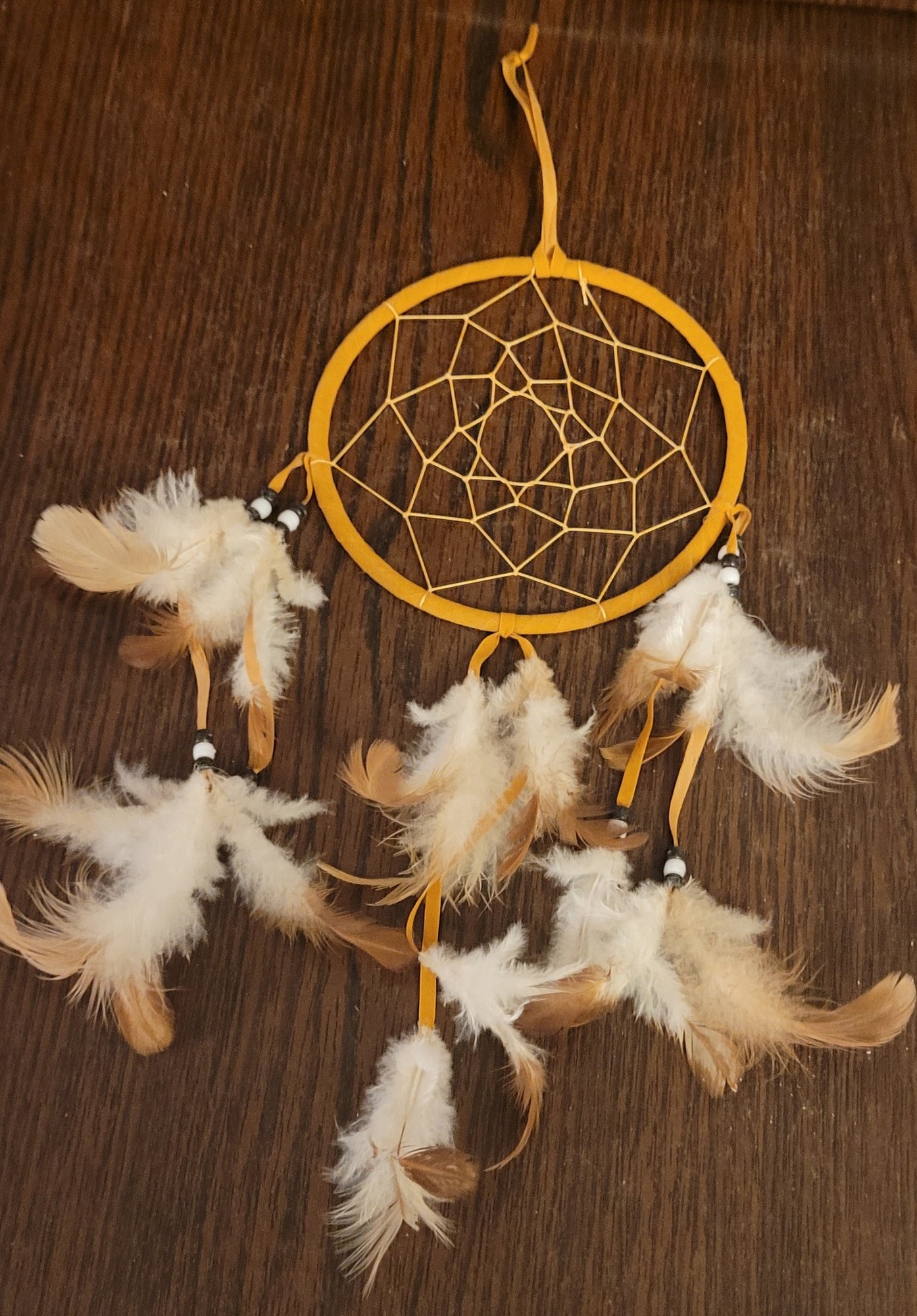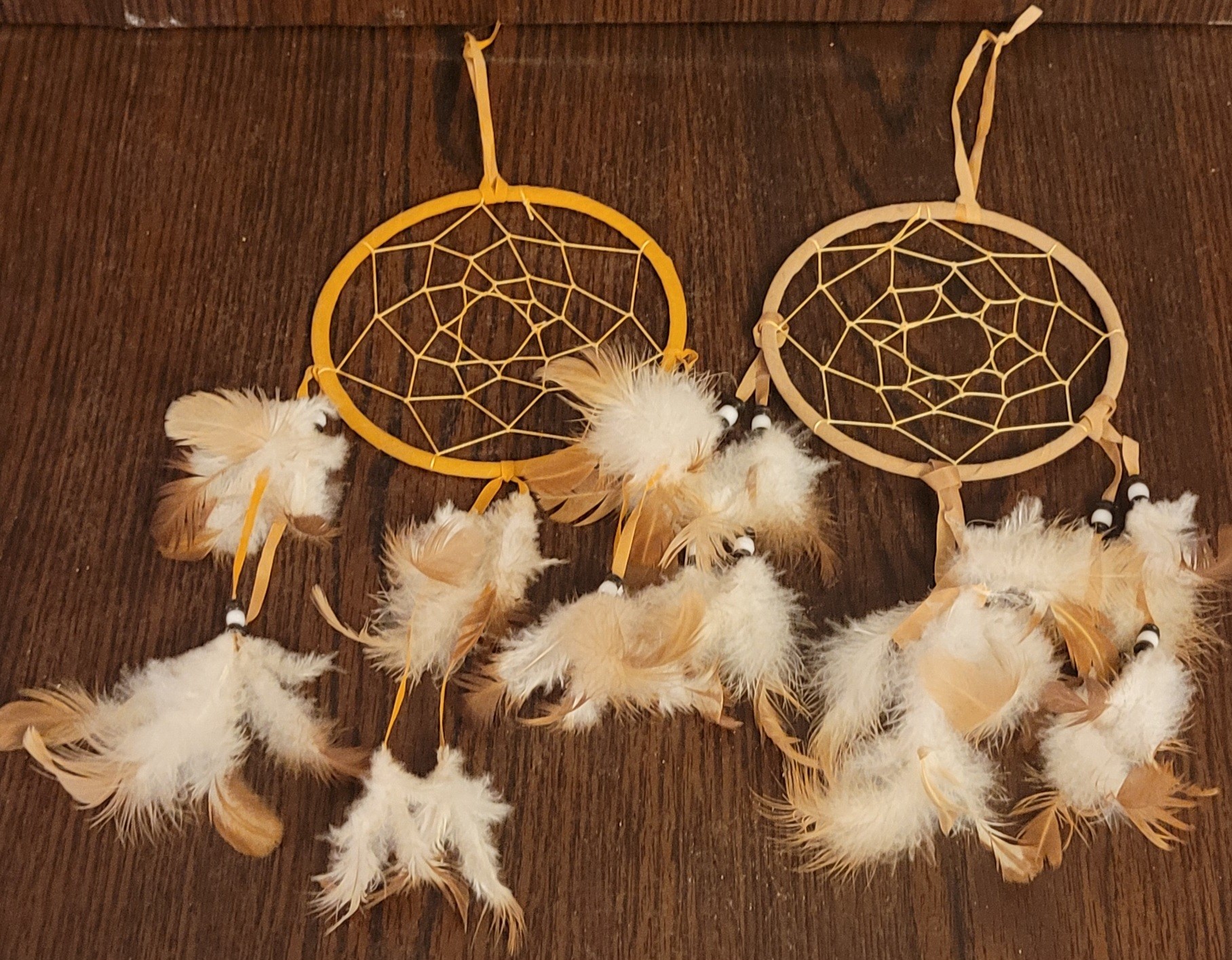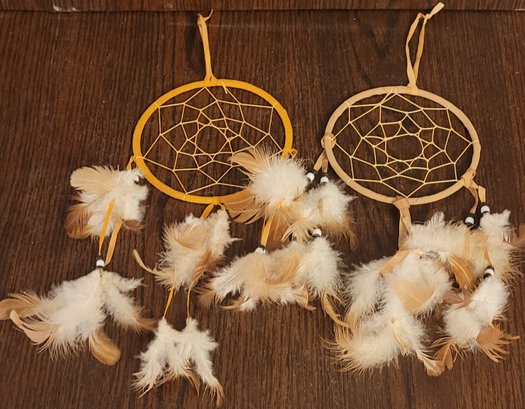 2 dream catchers they measure 11" tall with the feathers and the ring is 5" in diameter. See pictures for details.