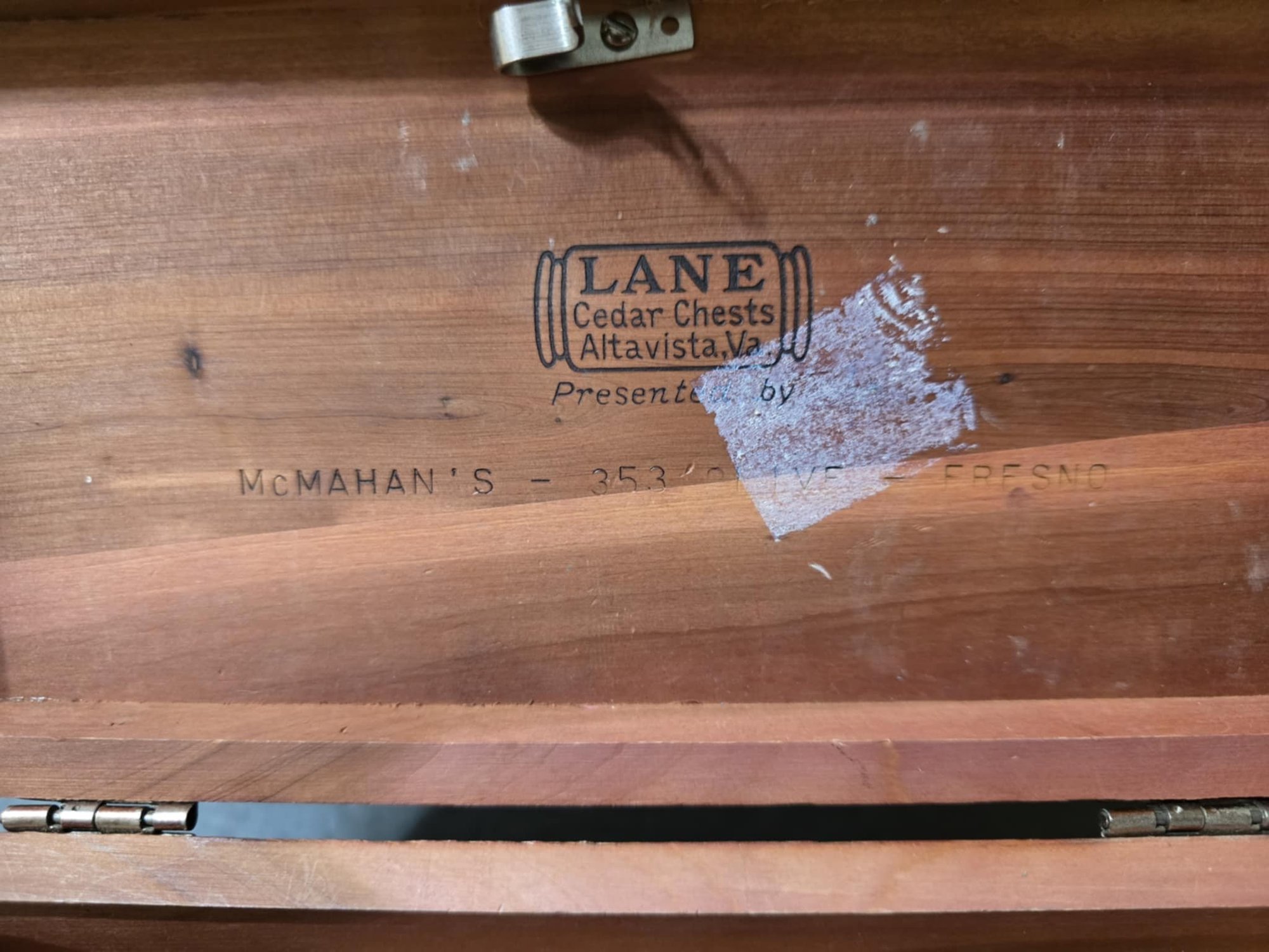 Dresser top Lane Cedar Chest. No key. Measures 9w x 4d x 4h.