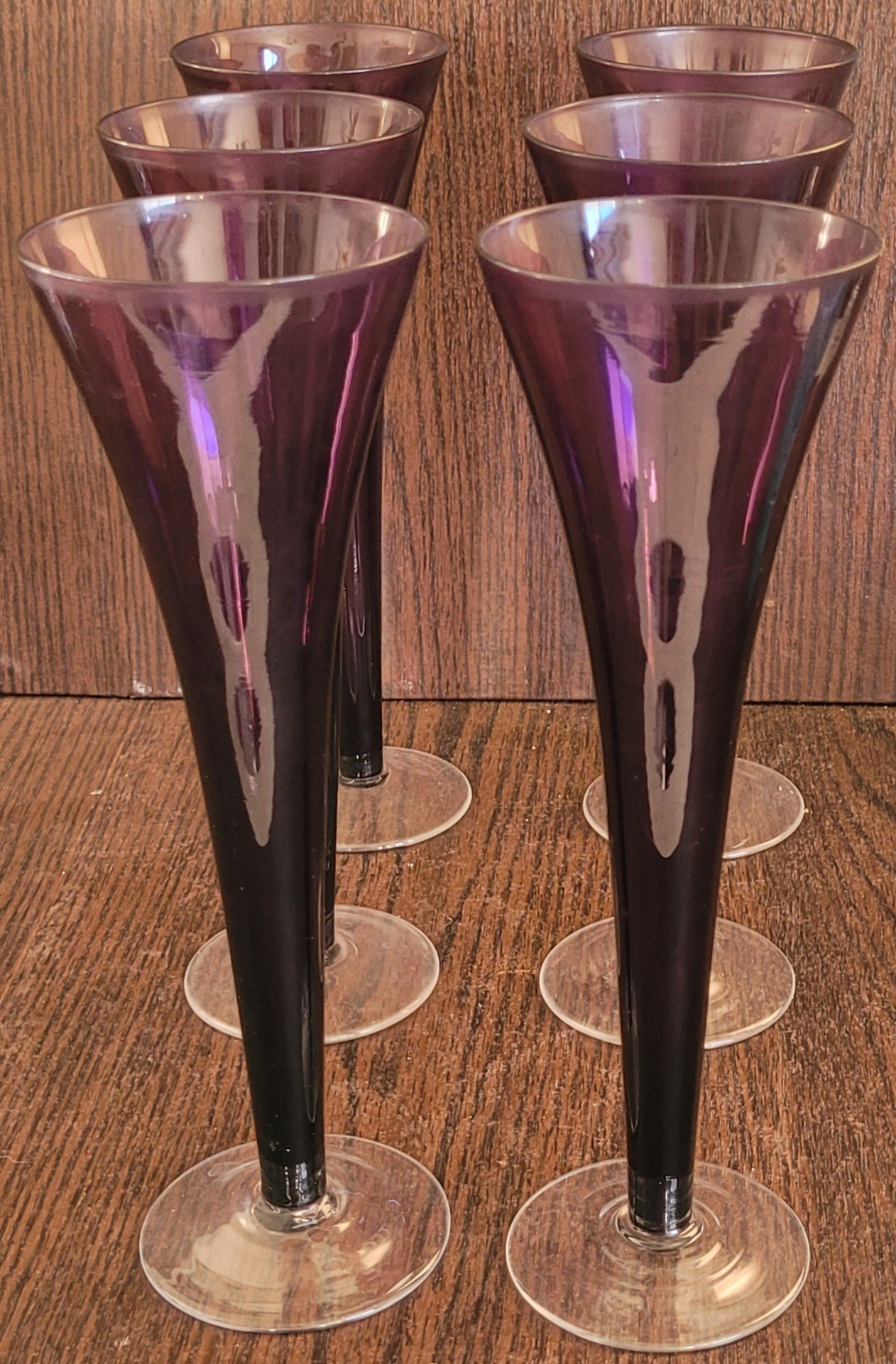 This lot comes with 6 glasses. Each of these measure 10" tall. See pictures for details.