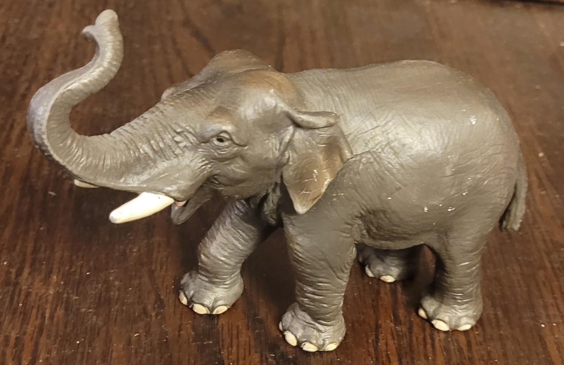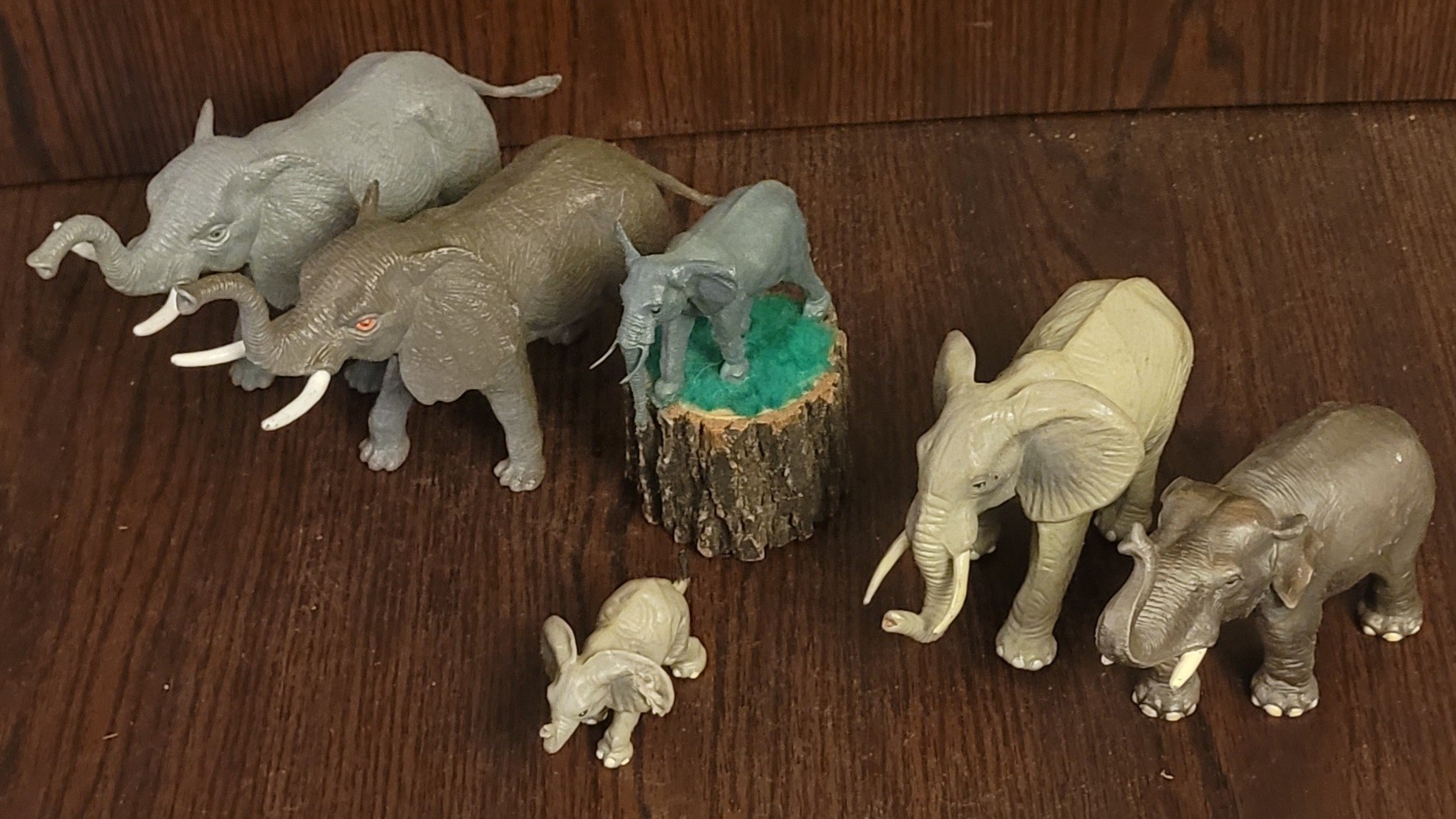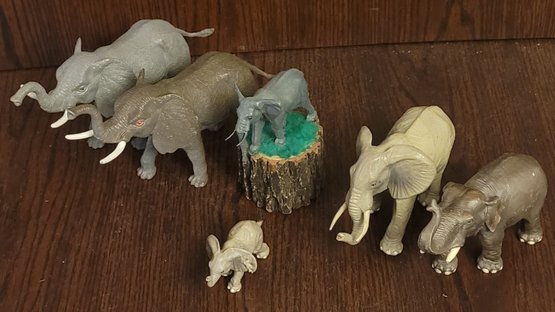 These elephants are made of hard rubber. They measure from 2" tall to 5" tall. See pictures for details.