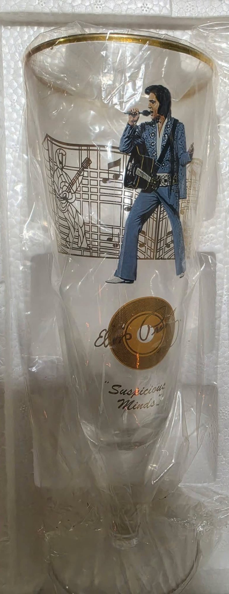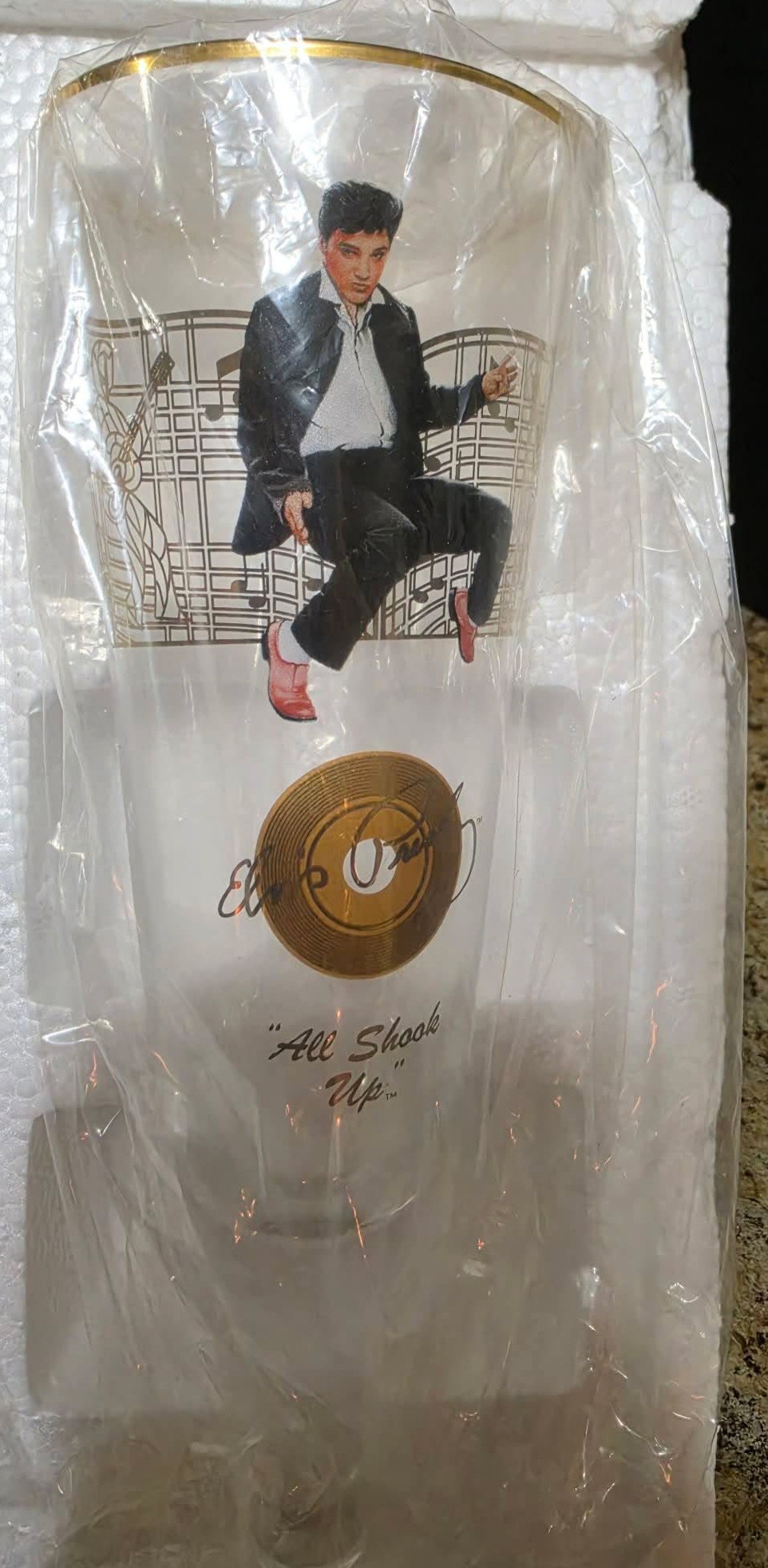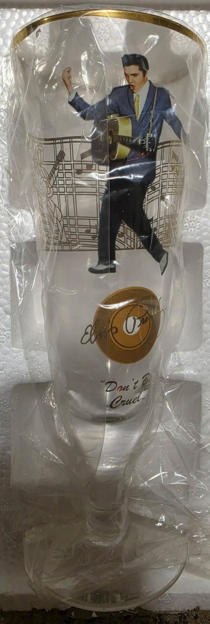 ELVIS PRESLEY 8 1/2" Tall Pilsner Glass Collection 3 Glasses Bradford Exc no cracks or chips noted.