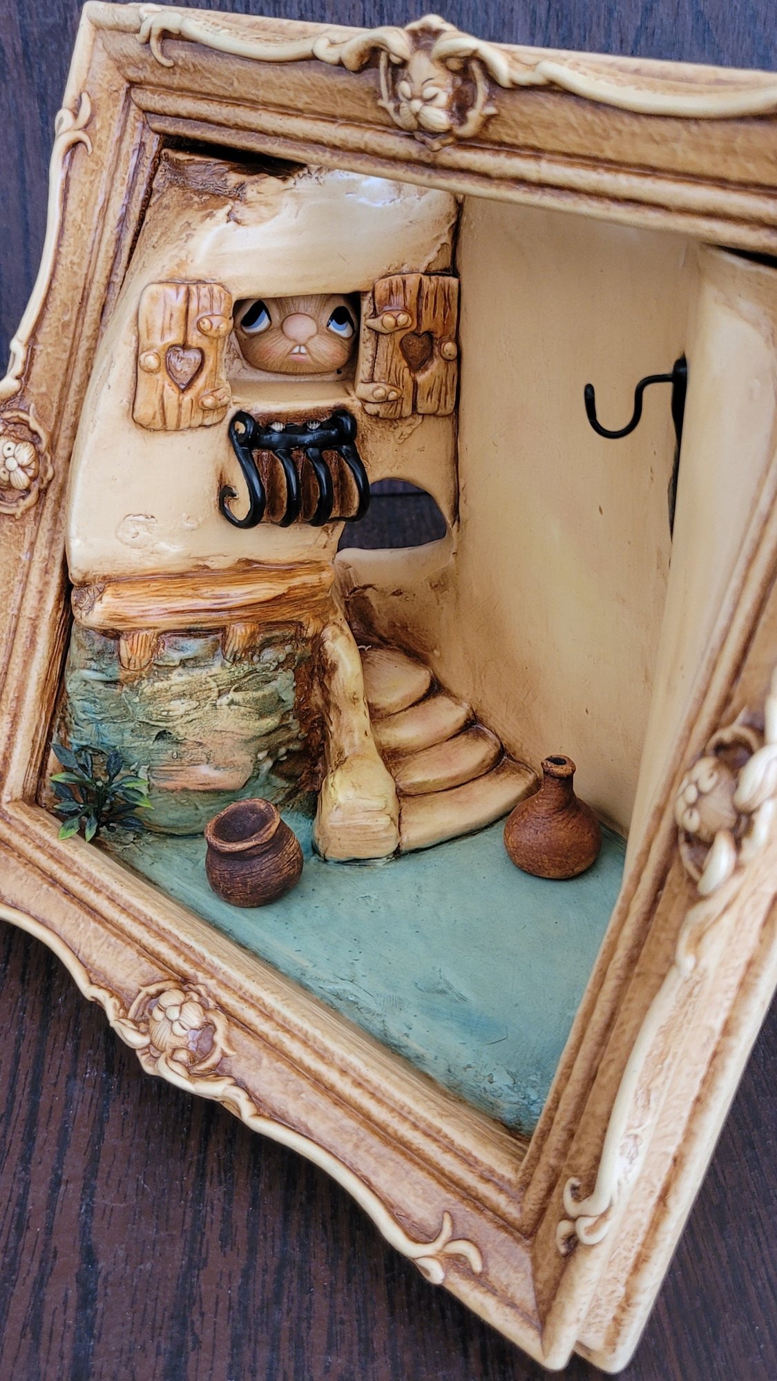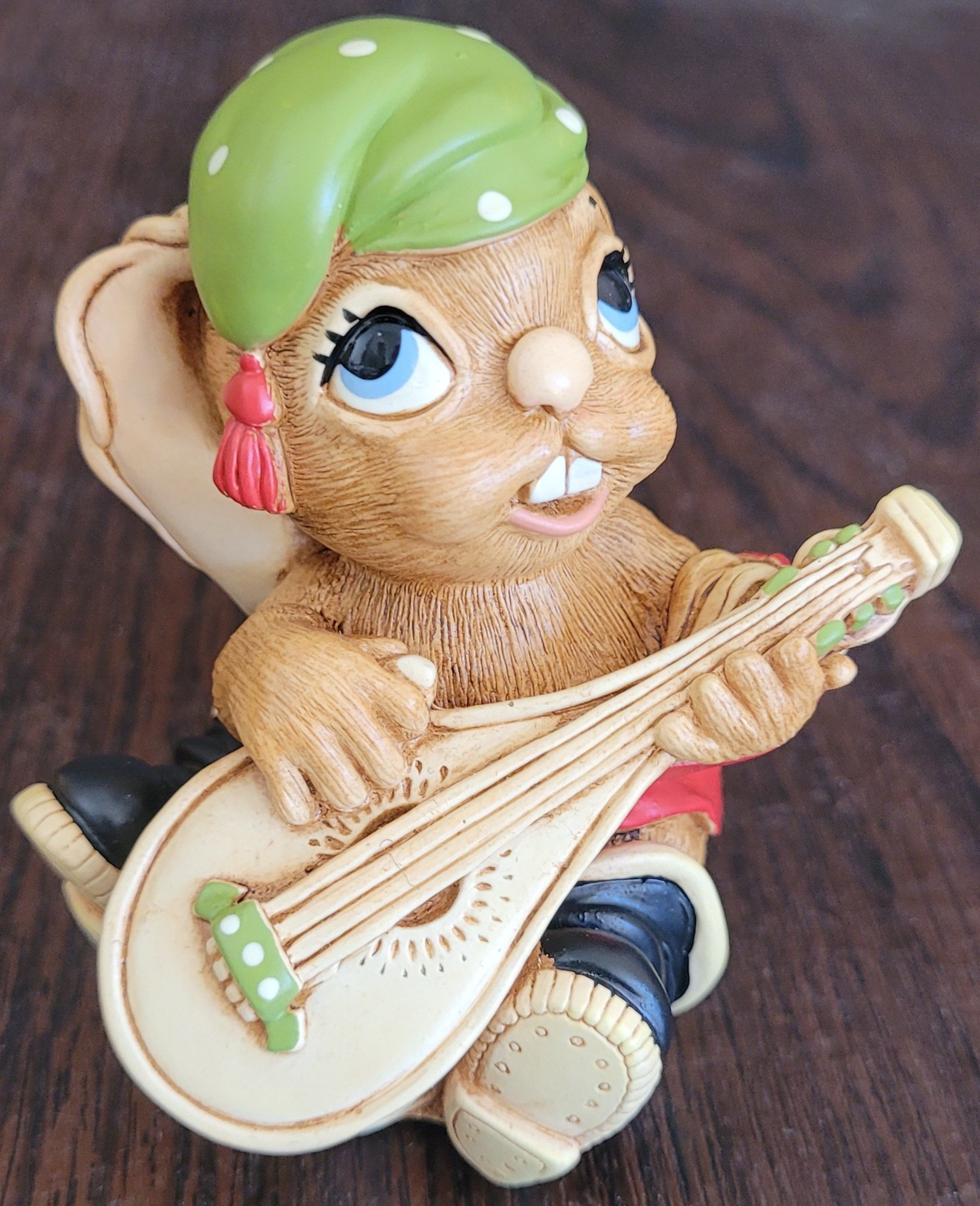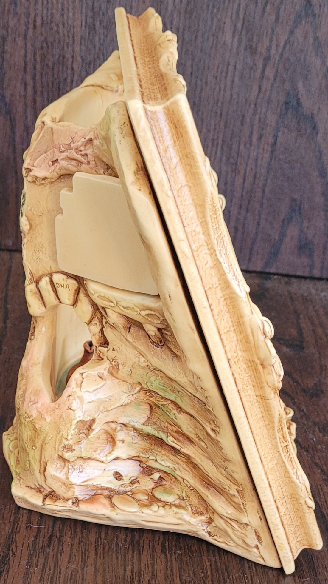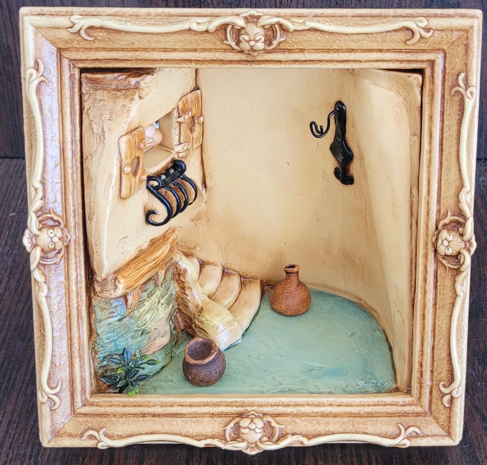 This measures 8.5" long by 8.5" tall by 5.5" deep. The bunny that it comes with is Casanova. There is a spot on the back of the scene that is missing some paint. See pictures for details.