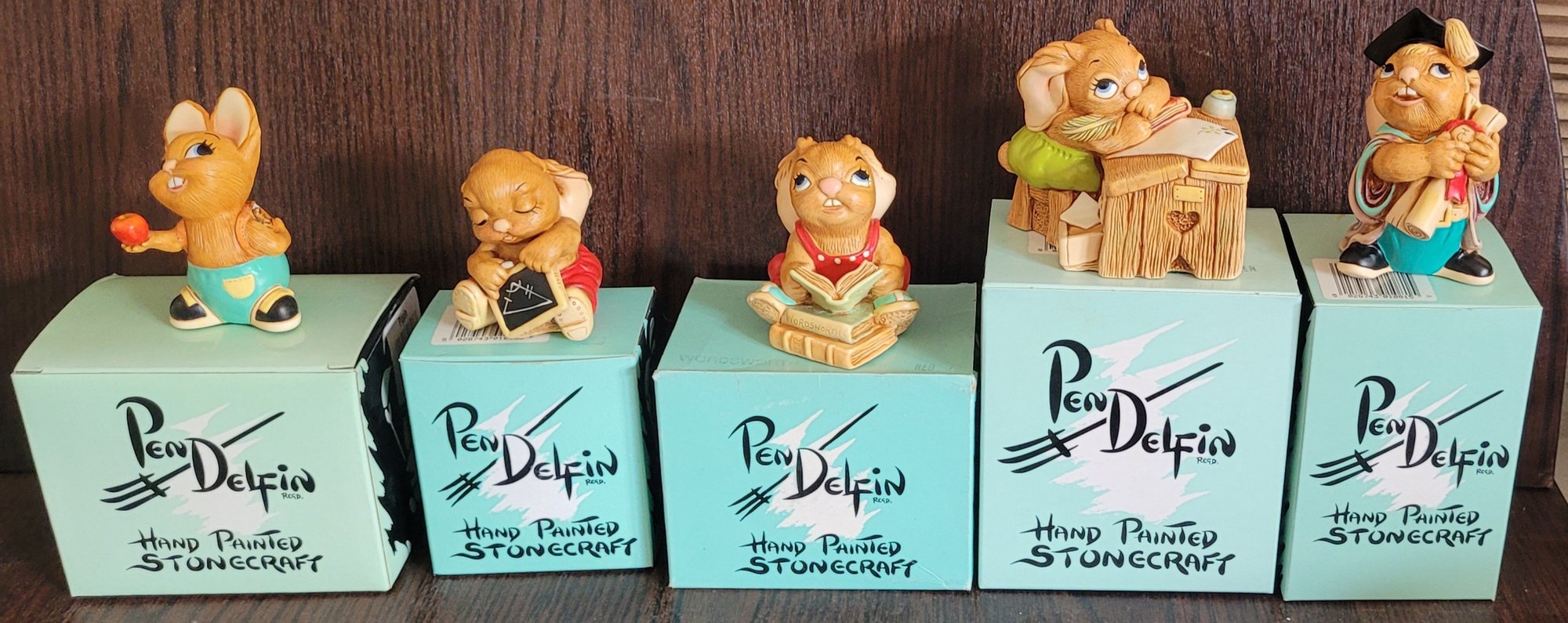 This is a school lot of the rabbits from starting giving an apple to graduation. All come in the original boxes and are all in good condition. See pictures for details.