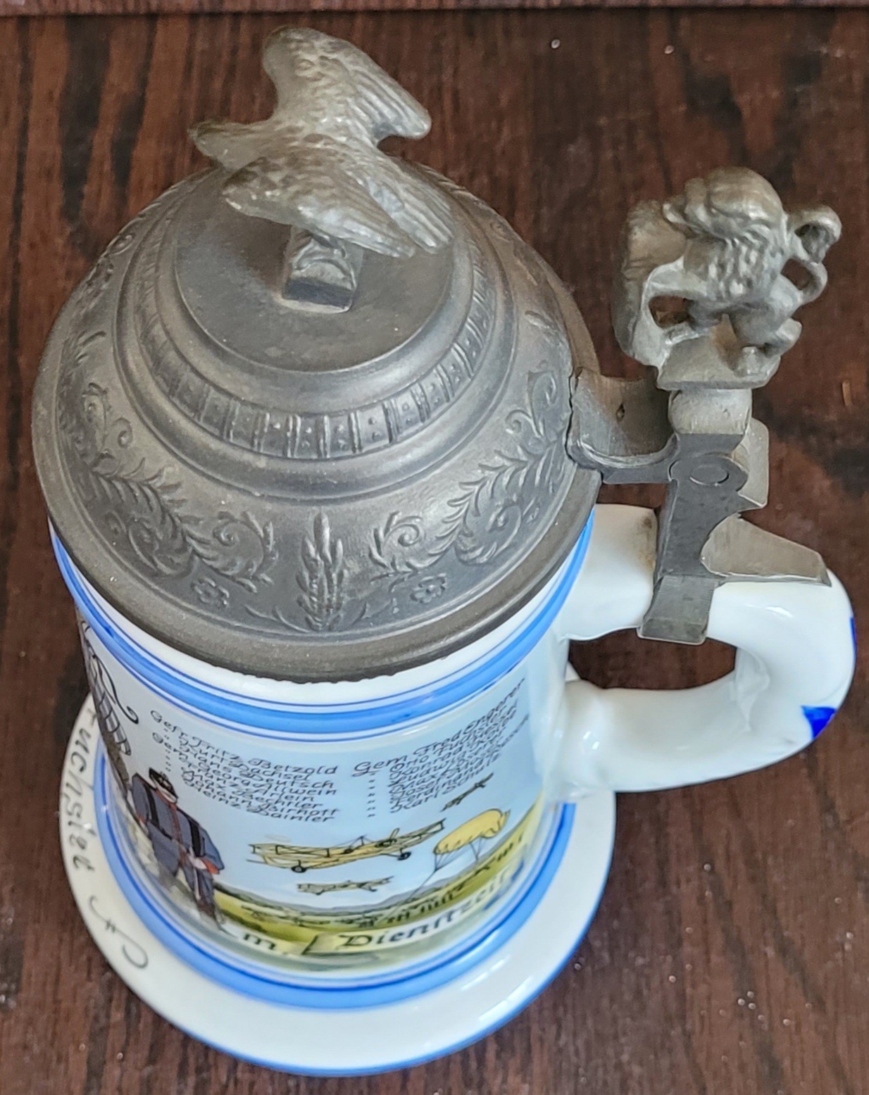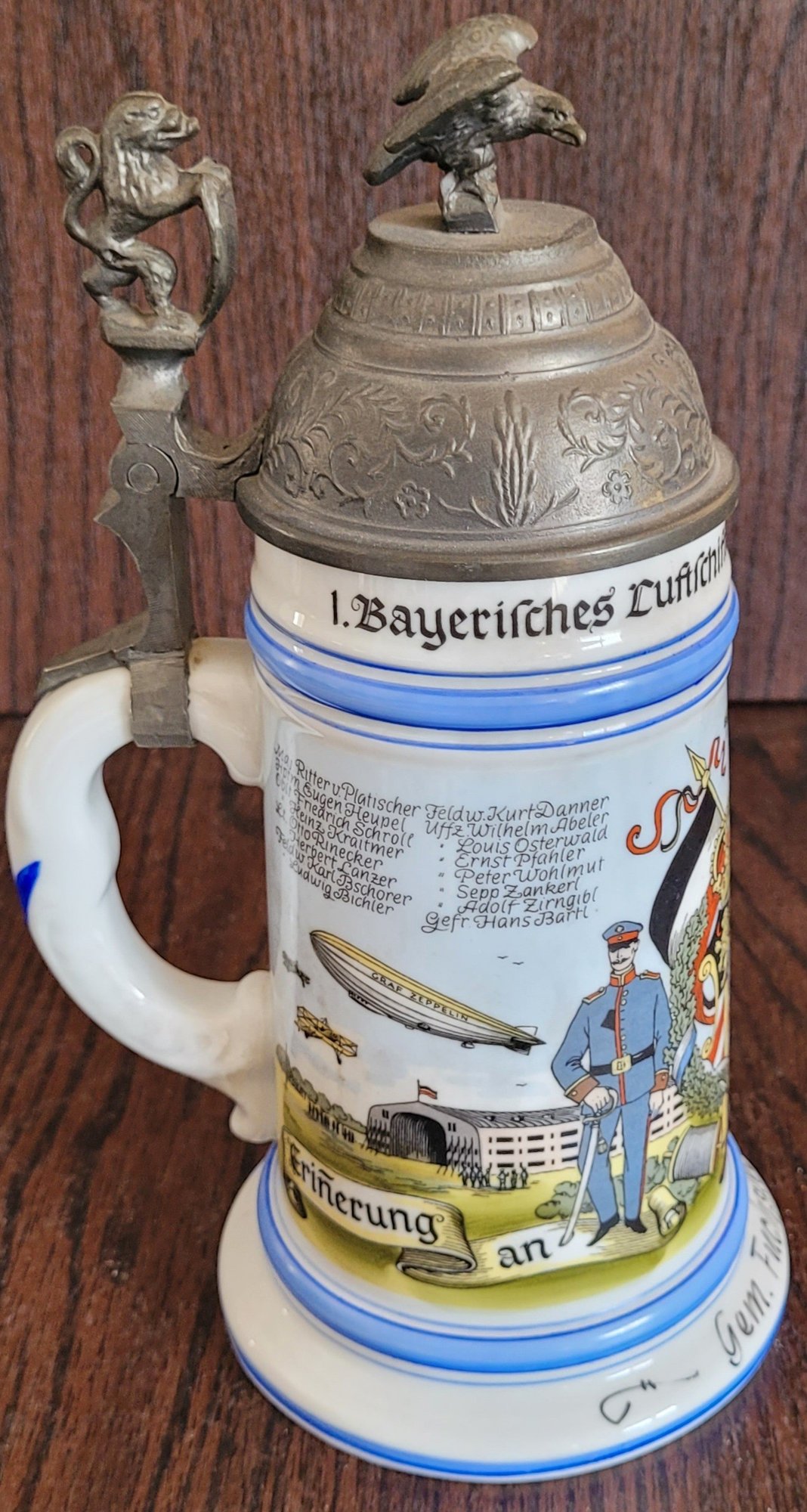 This stein measures 9.5" tall. This is a 1st Bavarian Airship Battalion Munich. See pictures for details.