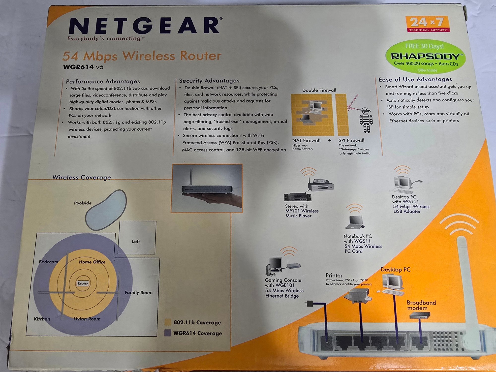 Netgear WGR614 54 Mbps Wireless Router. Untested. Comes as pictured. Please see all pics for details.