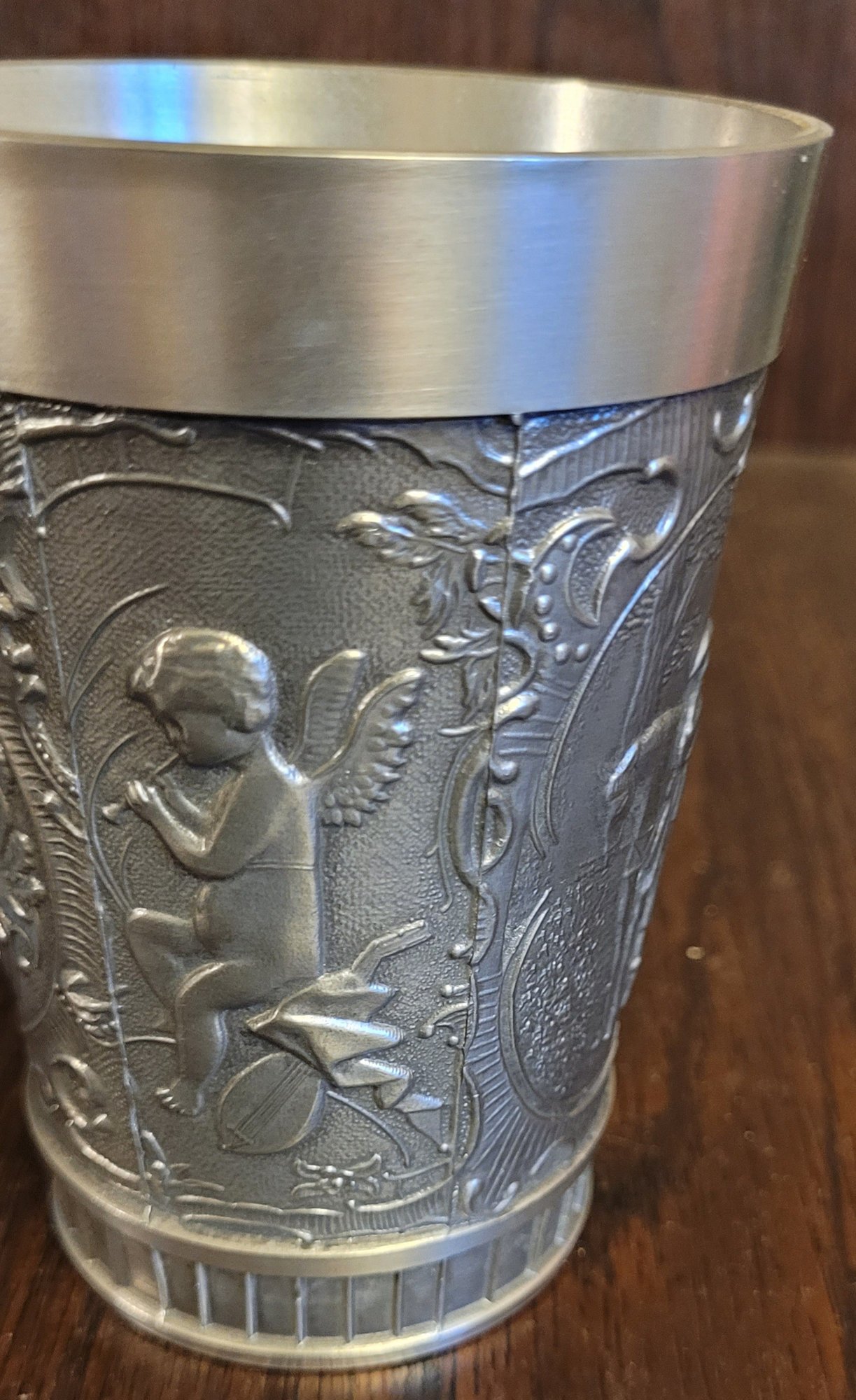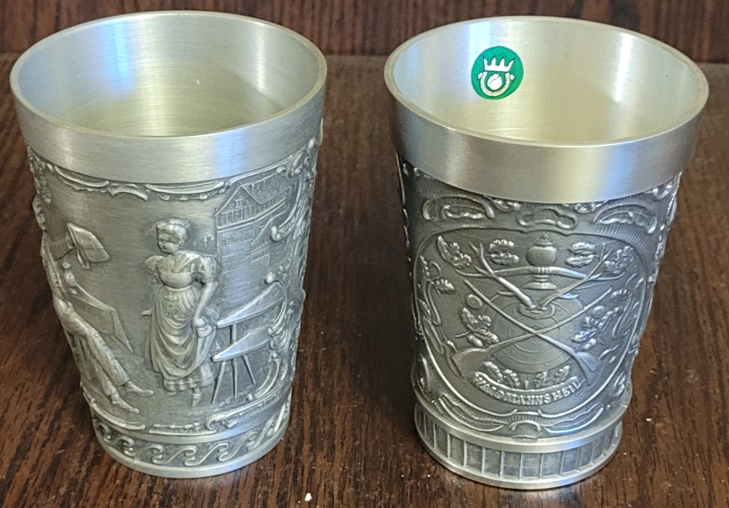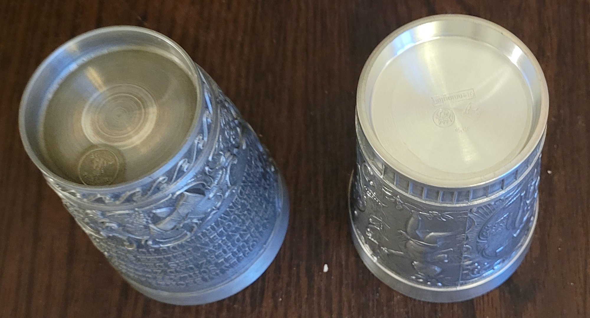 These are 2 different cups. See pictures for details. They each measure 4.25" tall. See pictures for details.