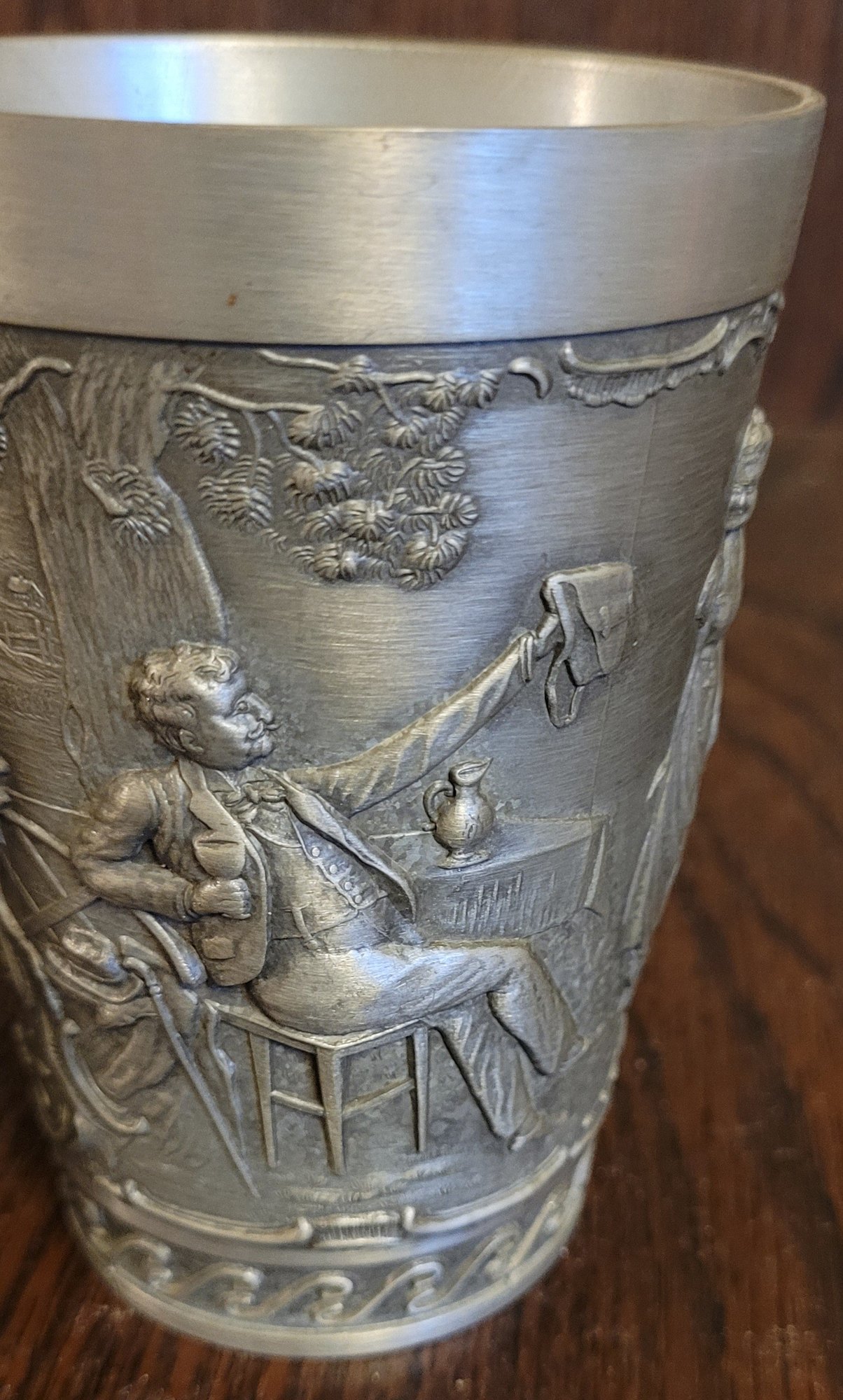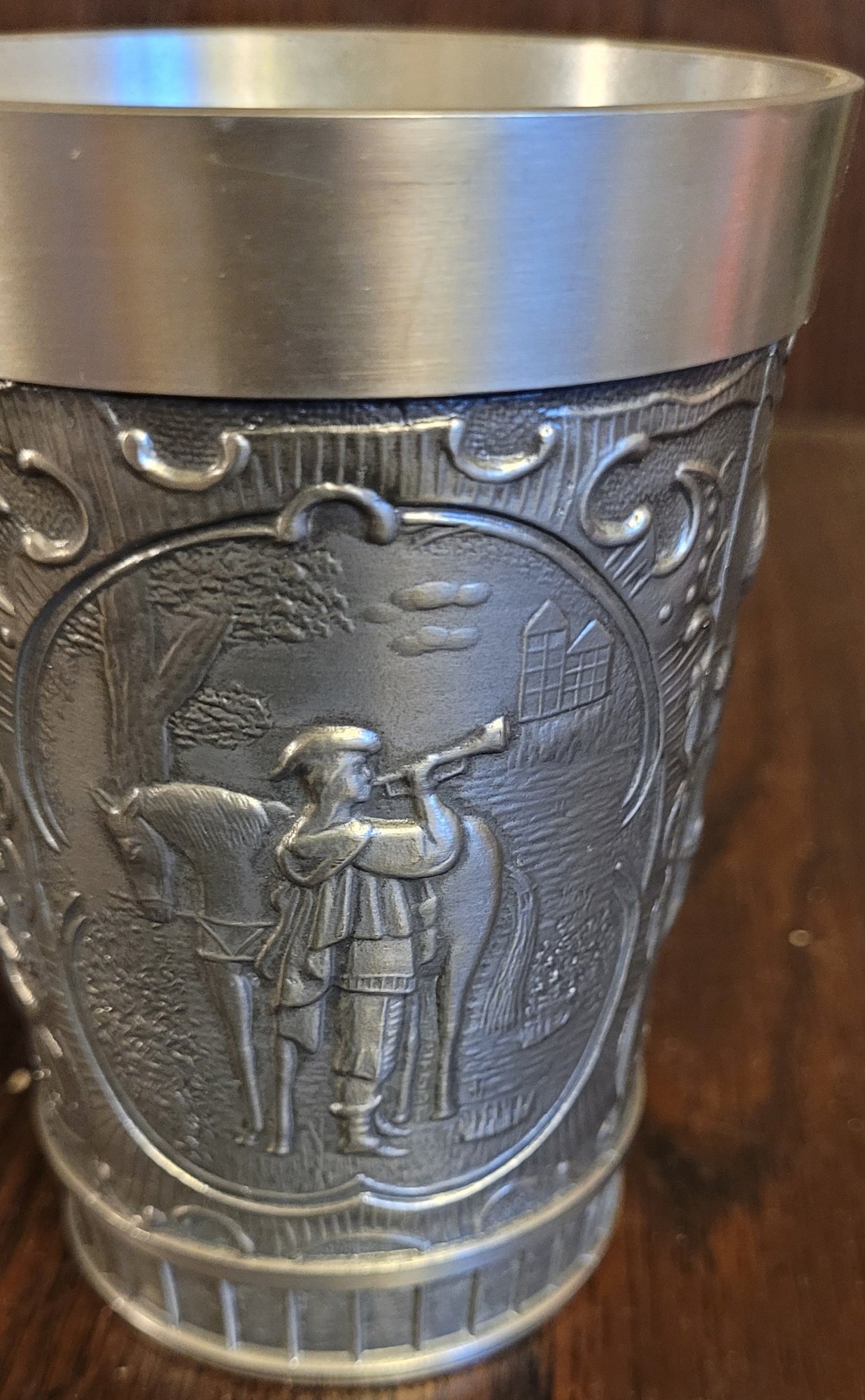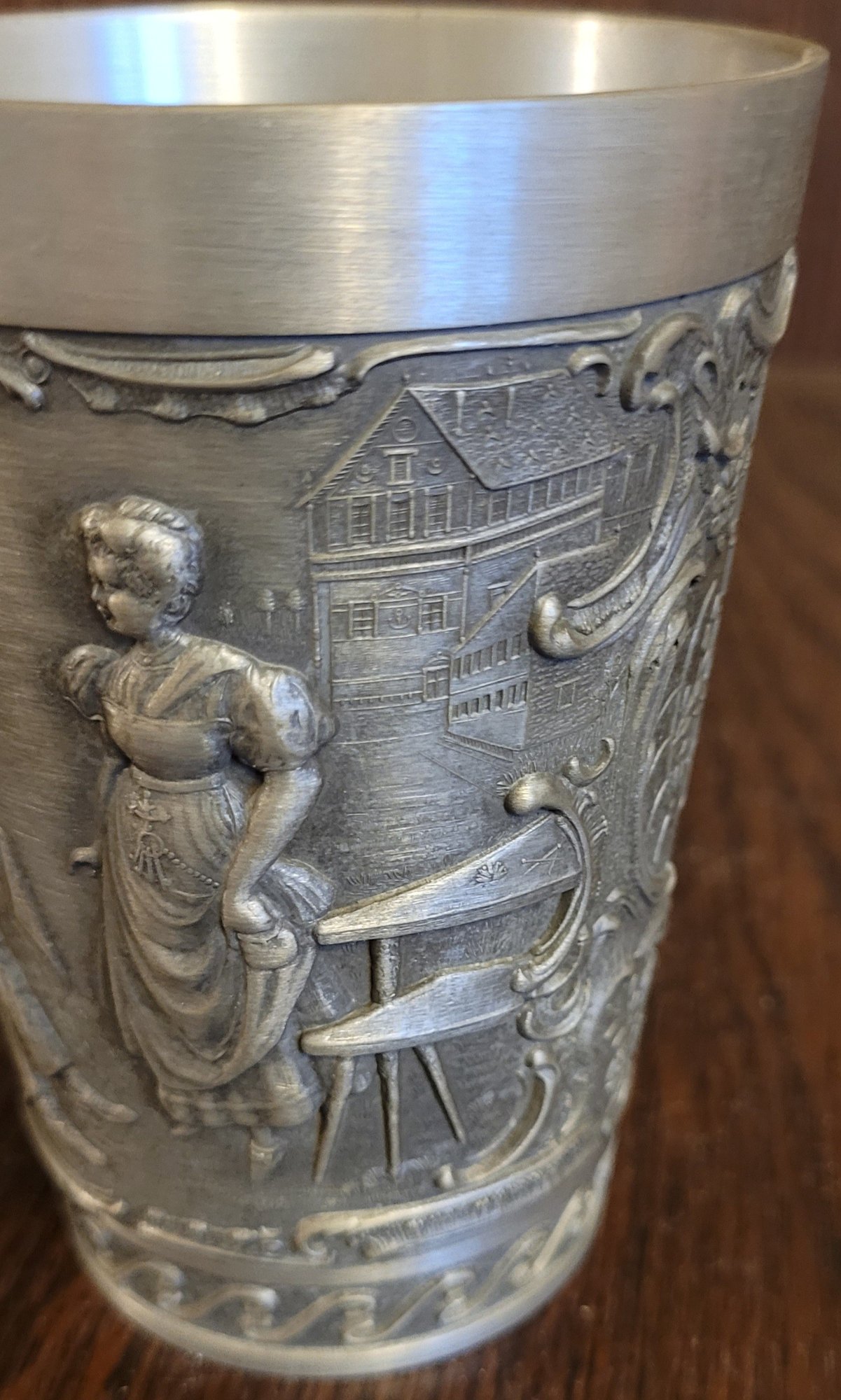These are 2 different cups. See pictures for details. They each measure 4.25" tall. See pictures for details.