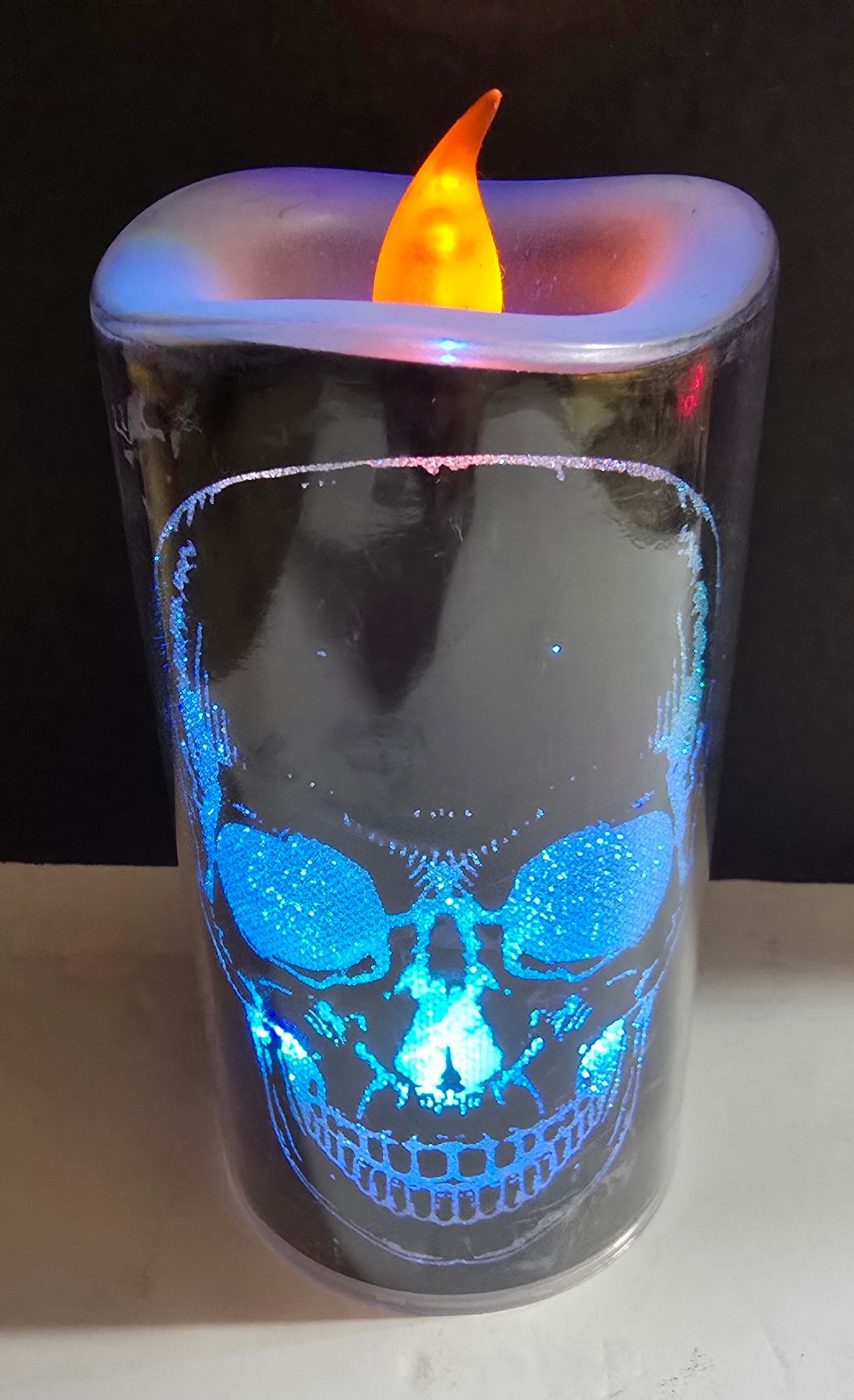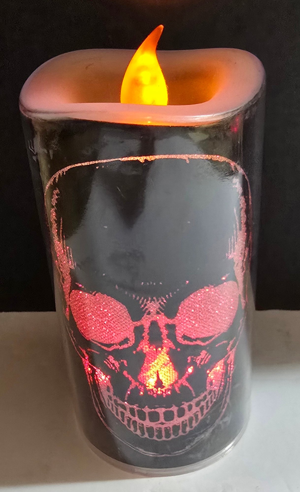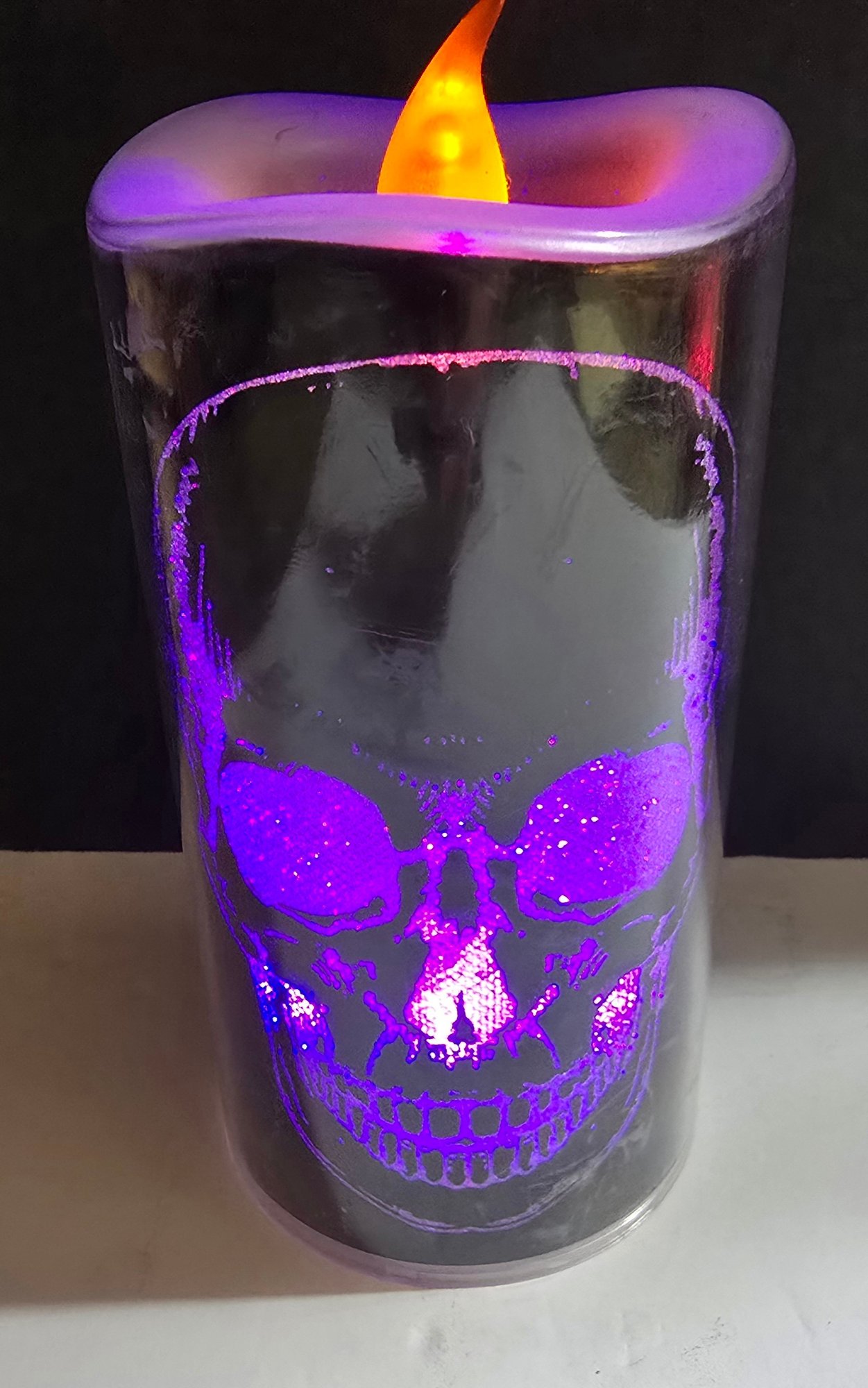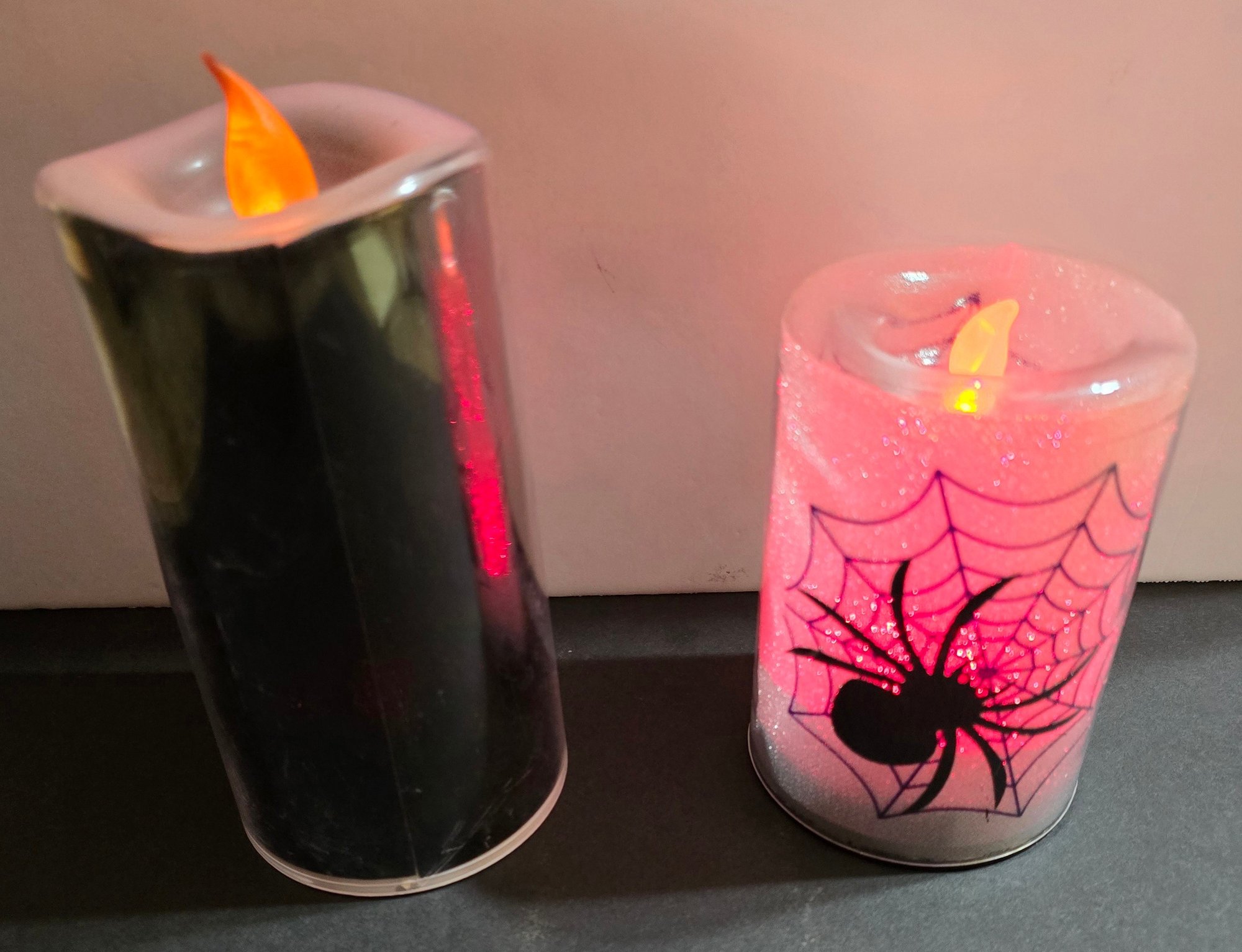 Flameless Halloween-themed LED pillar candles designed for holiday decoration. . The tall one changes colors. Please see all pics for details.