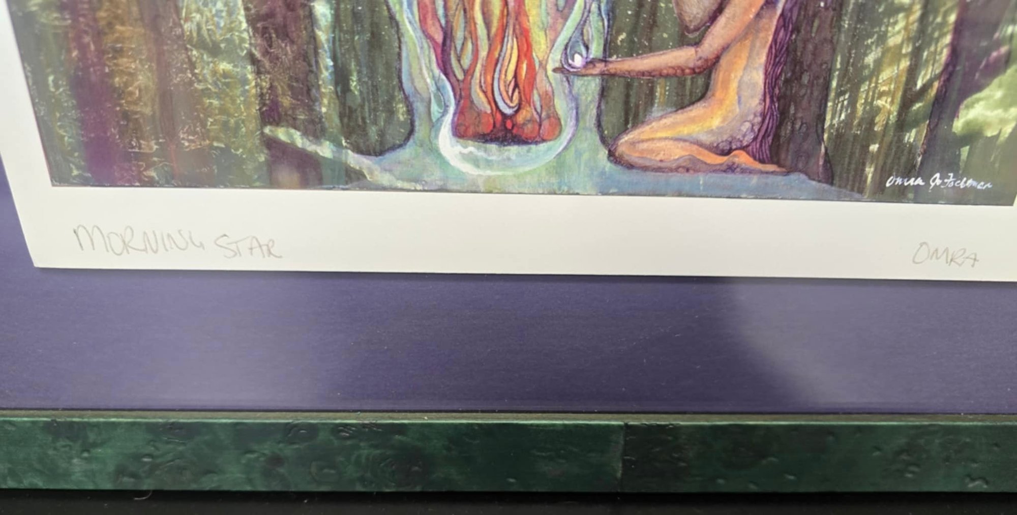 Framed and matted art by Omra Kubby. Visionary Artist Singer Songwriter. Both are signed. Measures 12 x 15.