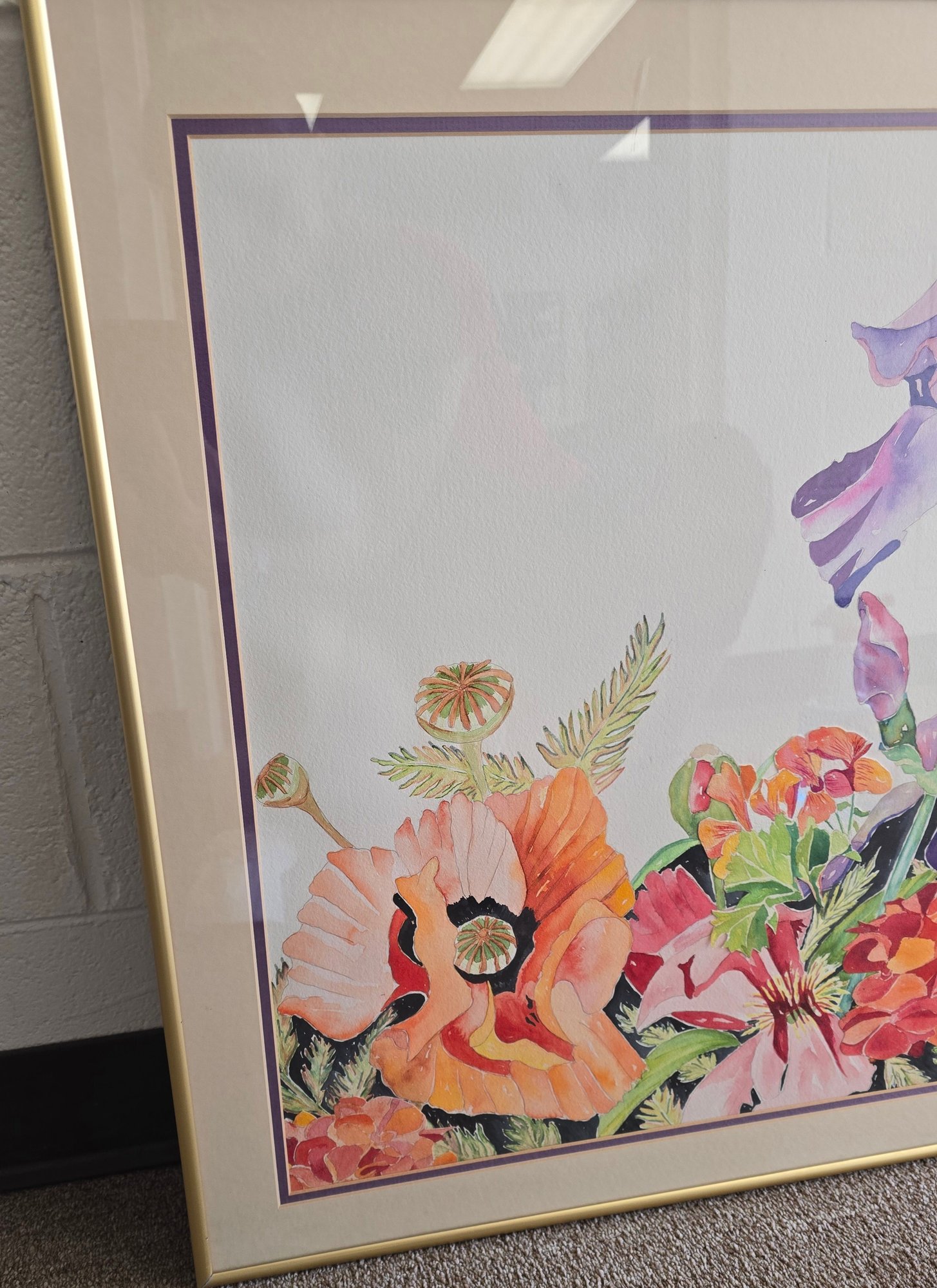 Framed artwork is a print titled "Spring's Rainbow" by artist Joanne Porter. Measures 33.5 x 24. Please see all pics for details