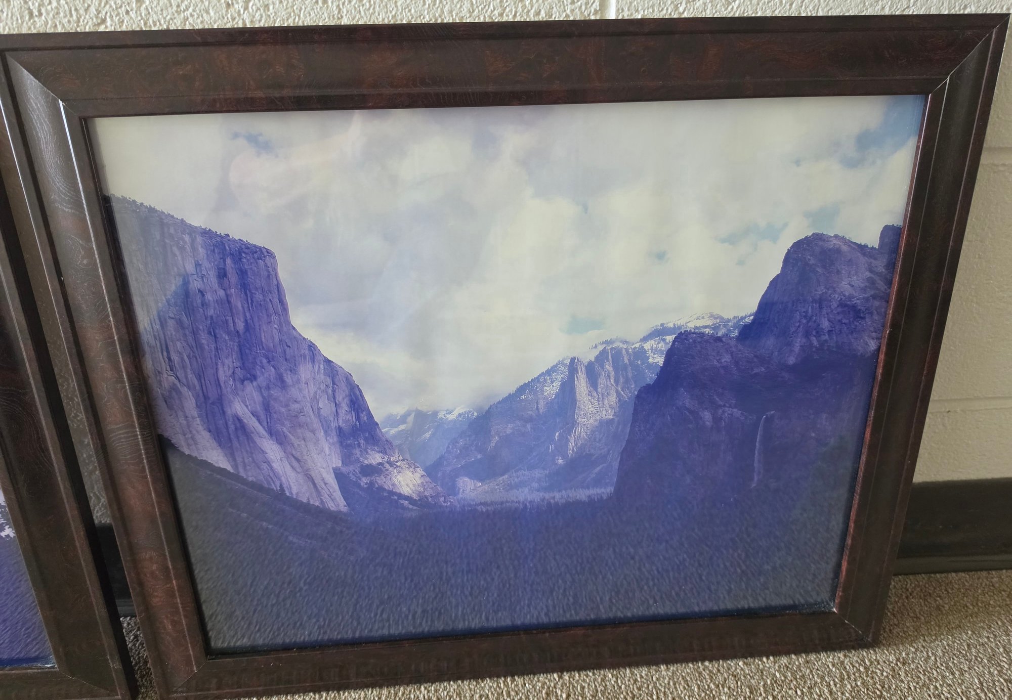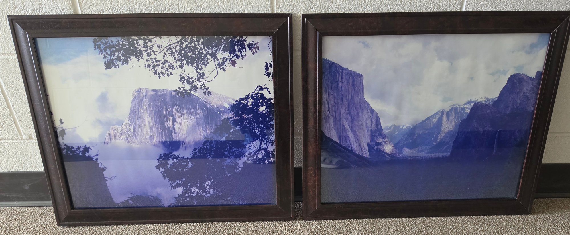 Framed pictures depict scenes from Yosemite National Park. Measures 23 x 19. Please see all pics for details.