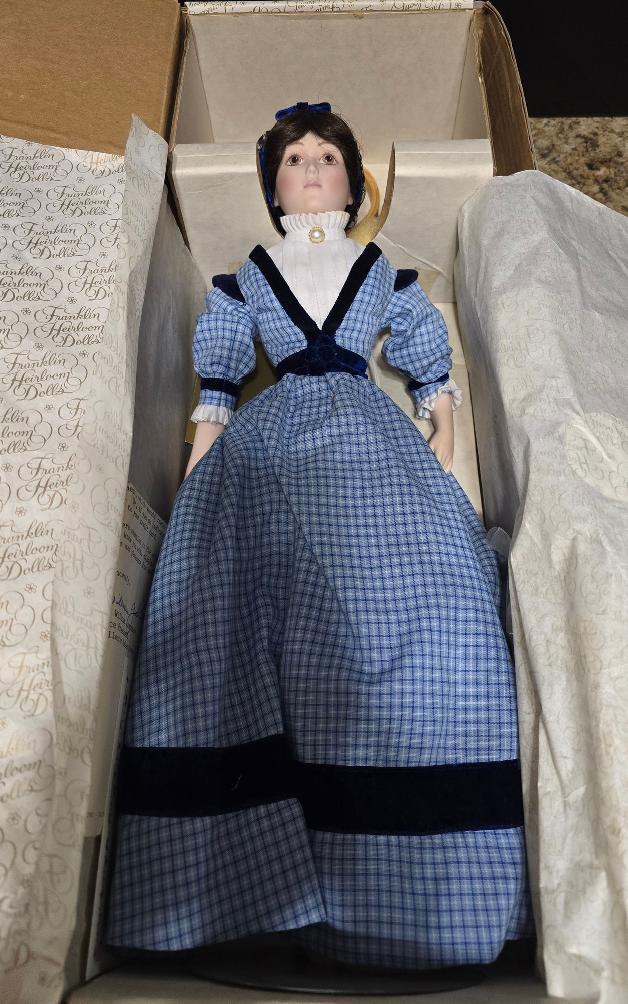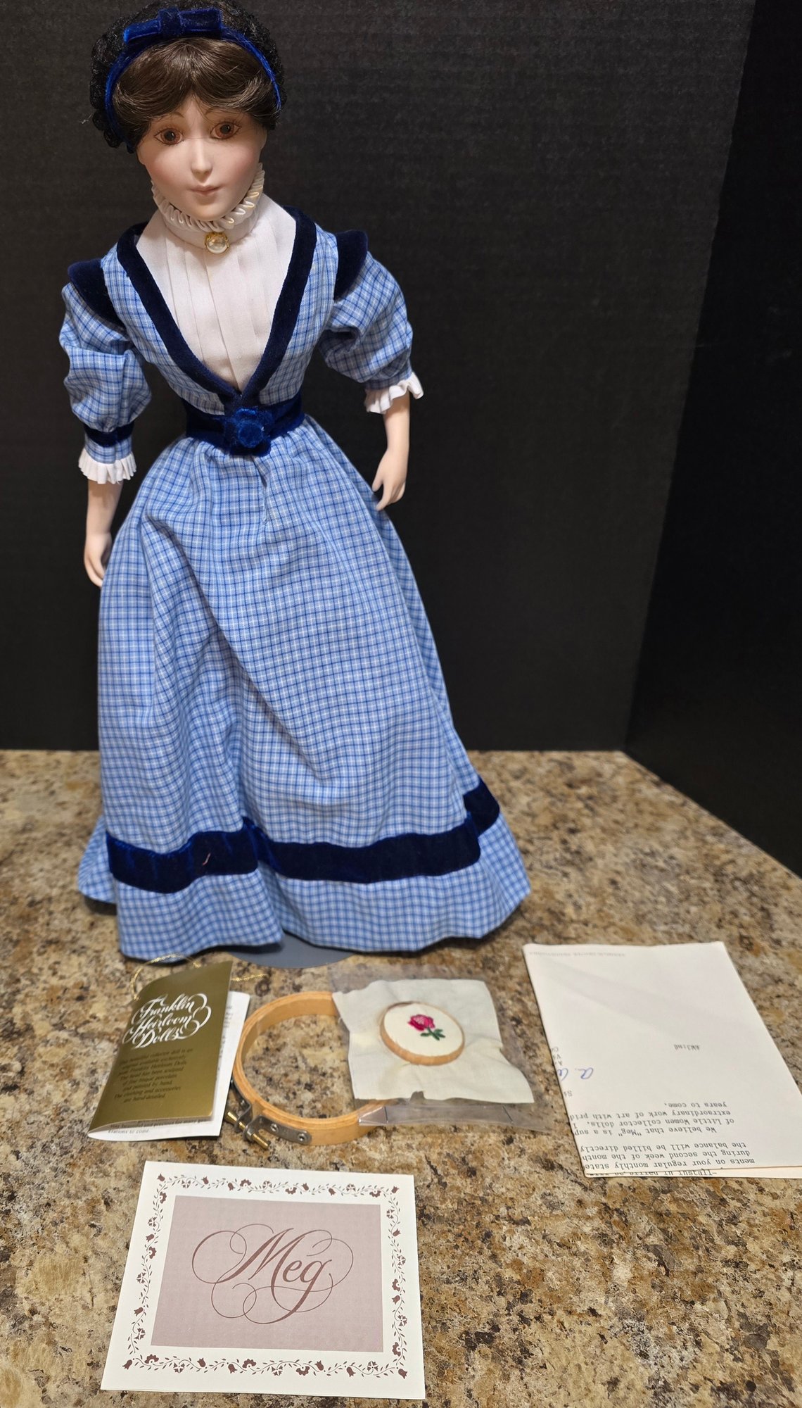 1984 Franklin Mint Heirloom 17" porcelain doll of the character Meg from Little Women. In original box. Please see all pics for details. Please see all pics for details.