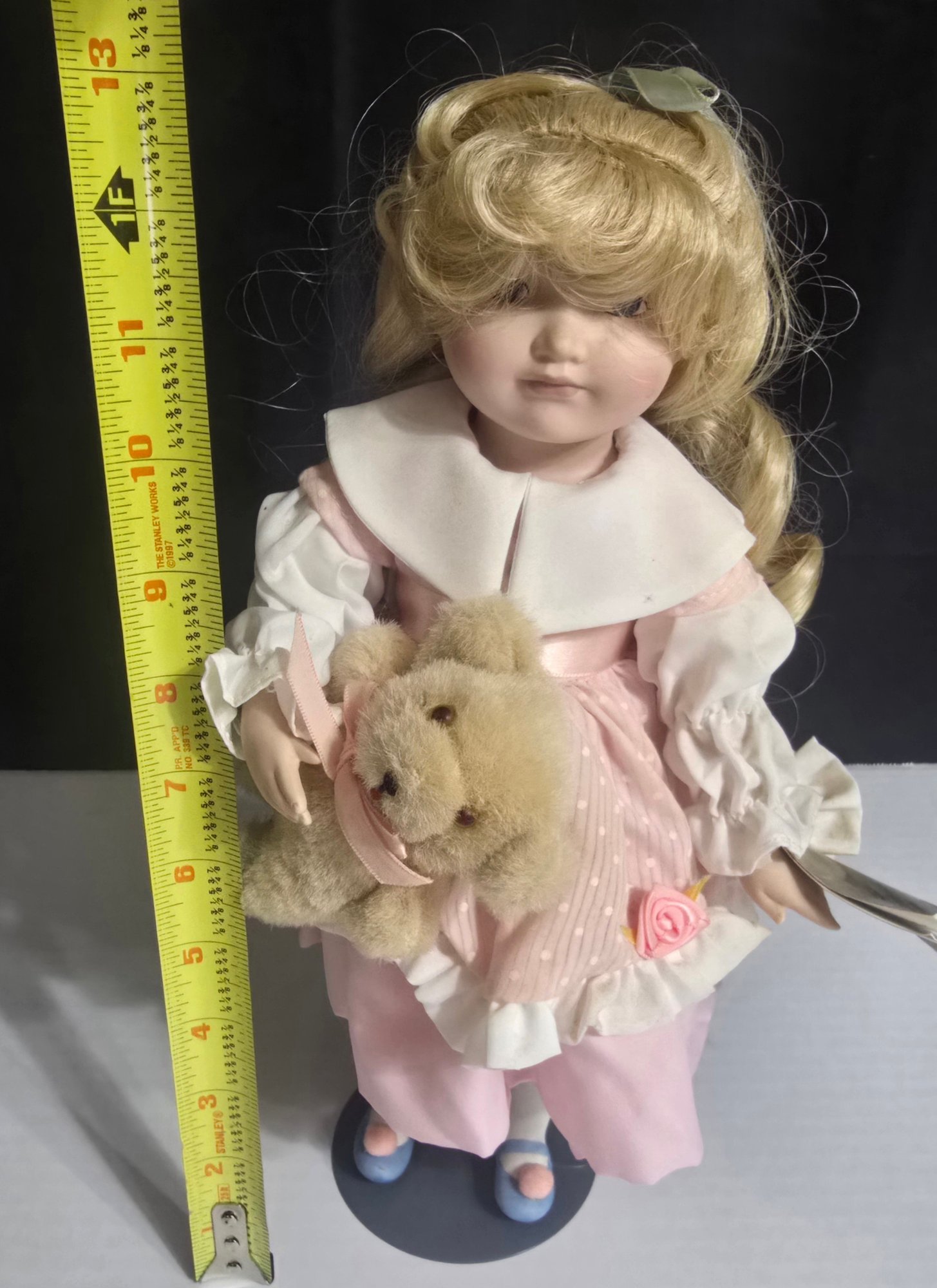 Franklin Heirloom Porcelain Doll depicting Goldilocks, No box. A little dirty. Please see all pics for details.