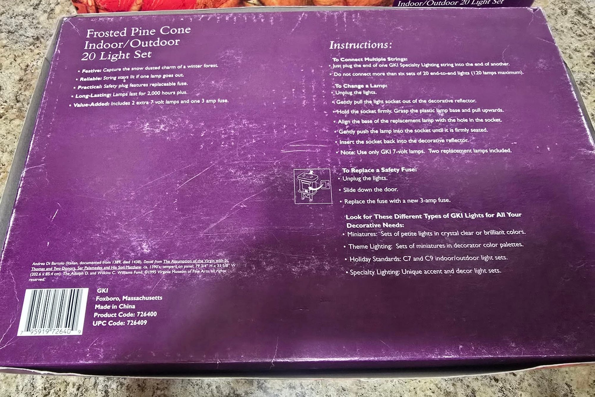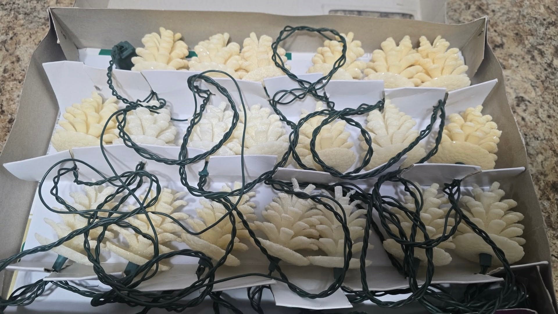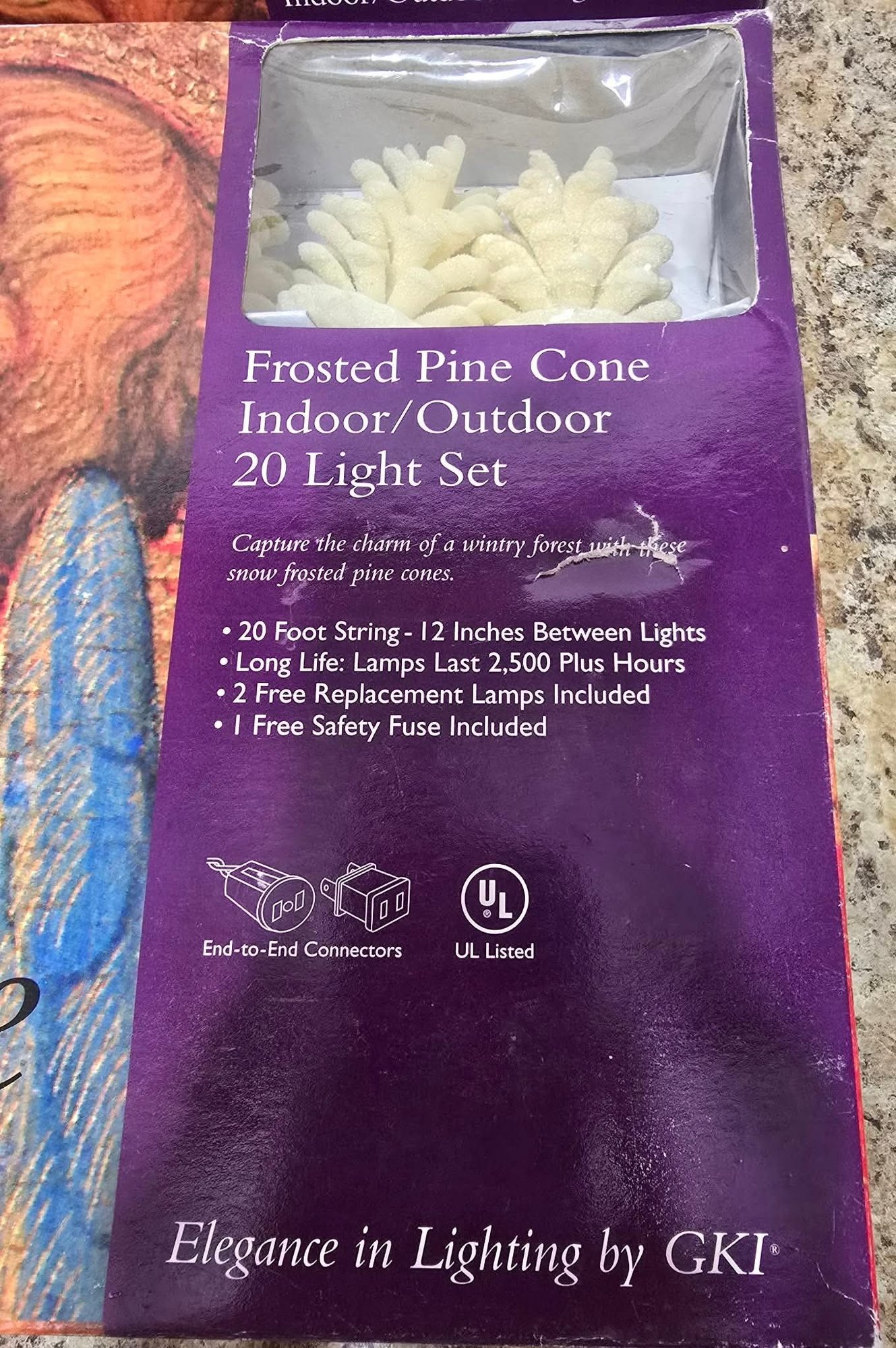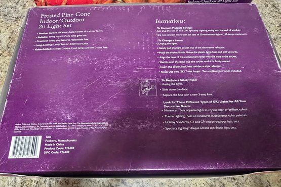 Frosted Pine Cone specialty lighting sets by GKI. Untested.