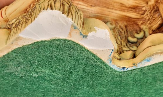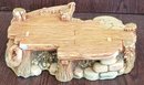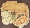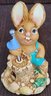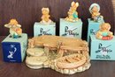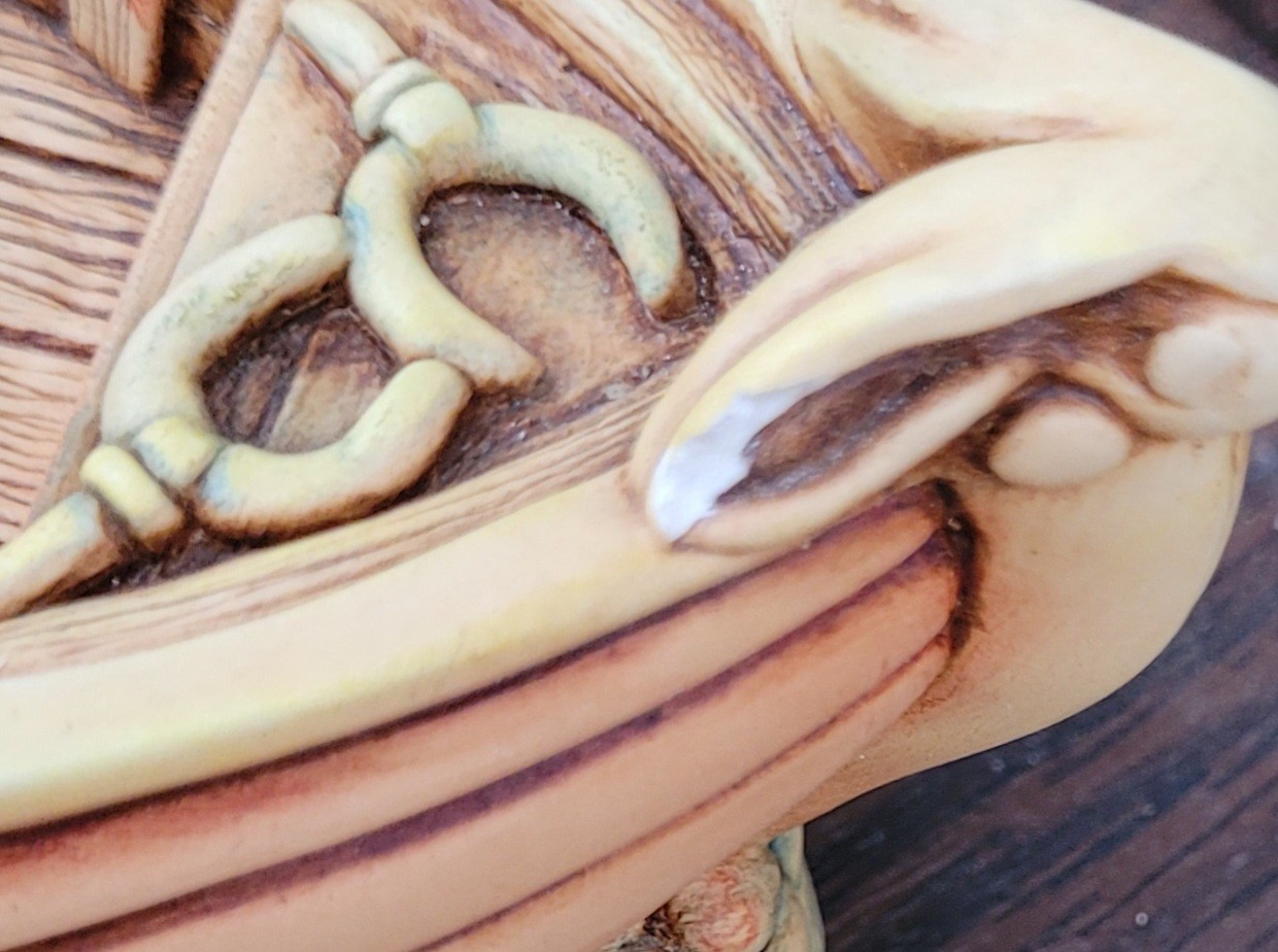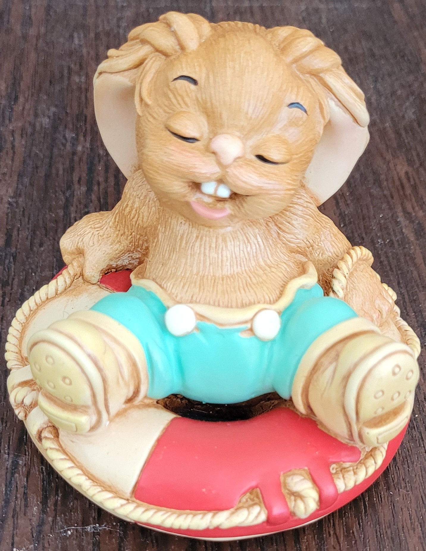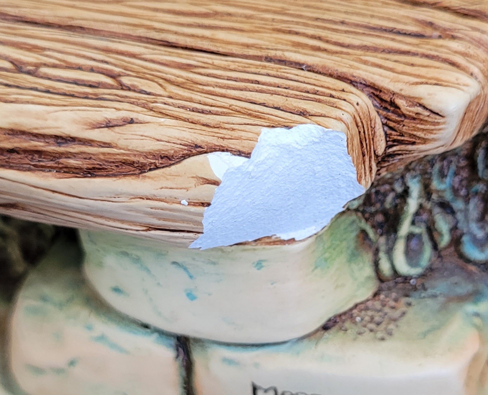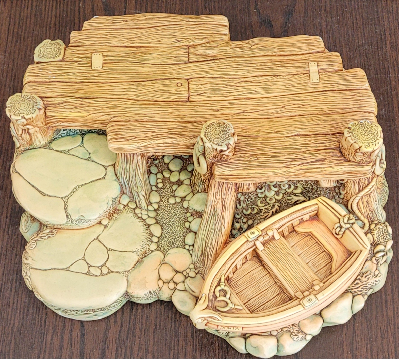 The rabbits come in the original boxes. The boat dock doesn't have the original box. It measures 12.5" long by 12" wide by 4" tall. It does have some large chips out of it but if someone could paint the spots it would look pretty good. One of the rabbits has had some repair done on its hat. See pictures for details.