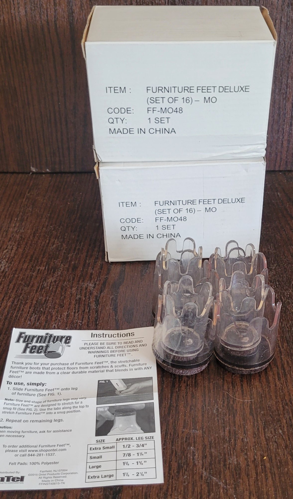 This lot comes with 2 full boxes and a partial box of these furniture feet. See pictures for details.