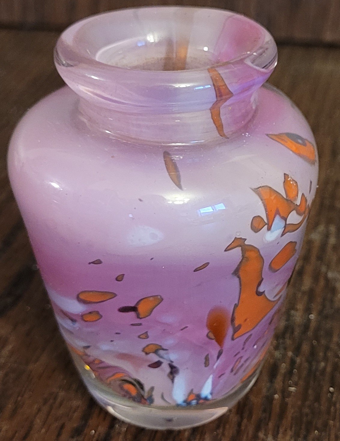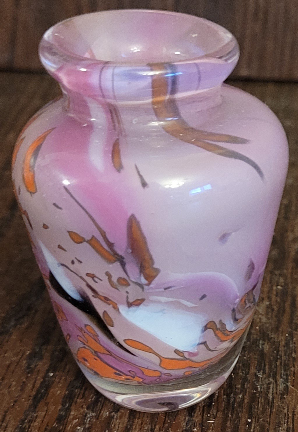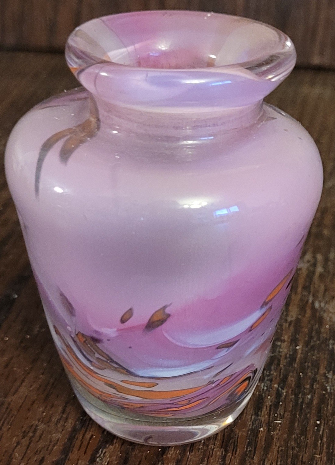 This vase measures 3.25" tall by 2.5" in diameter. It is signed on the bottom and is great condition. See pictures for details.