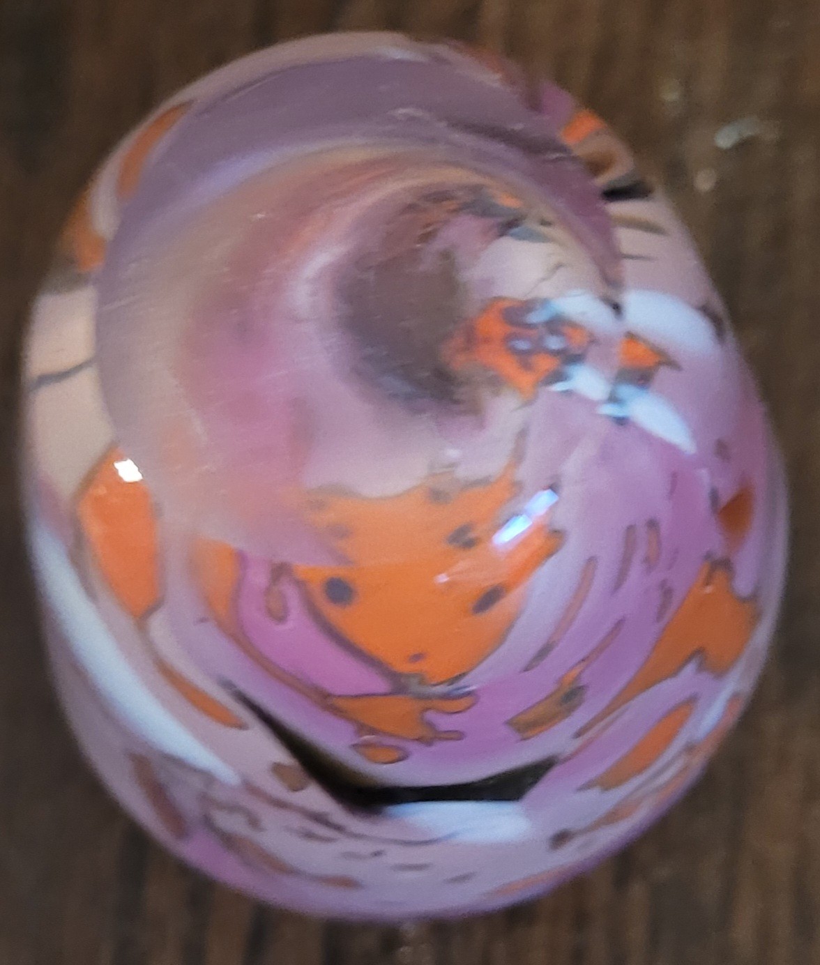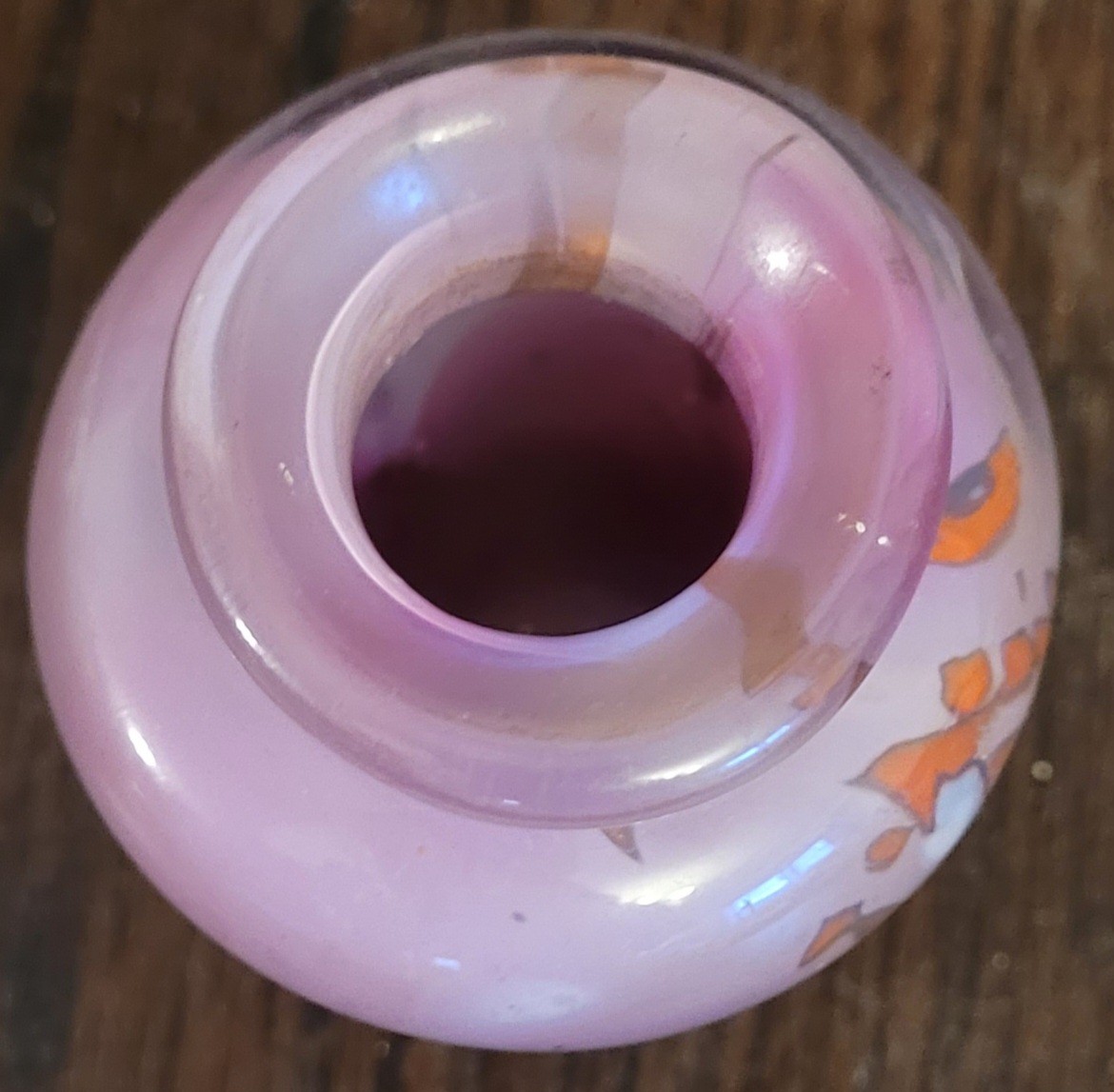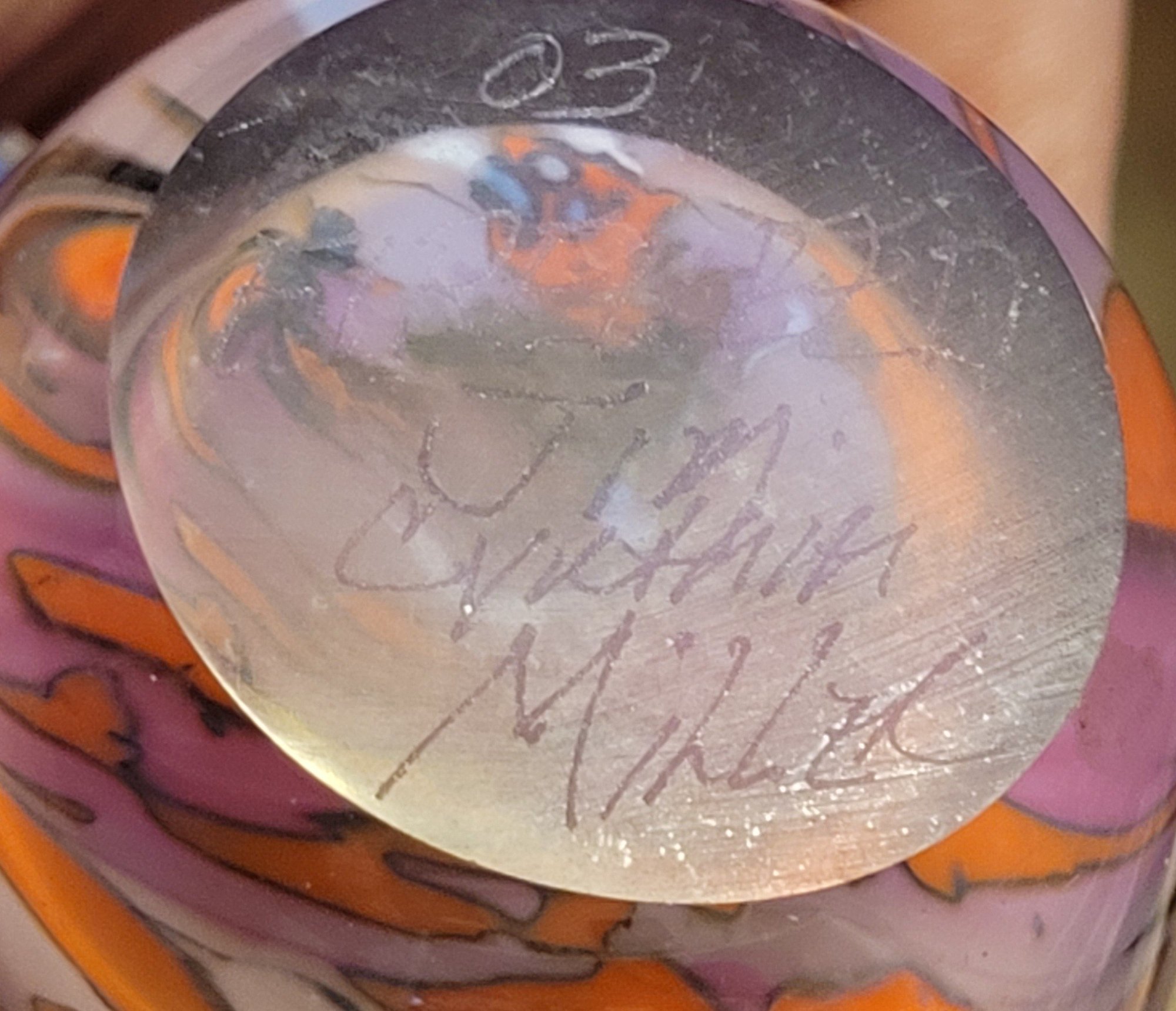 This vase measures 3.25" tall by 2.5" in diameter. It is signed on the bottom and is great condition. See pictures for details.