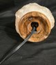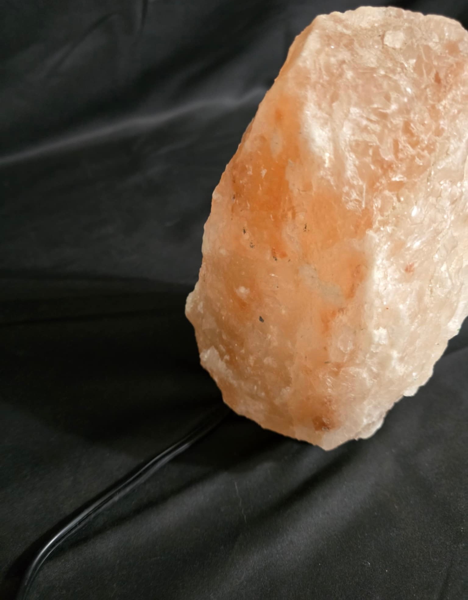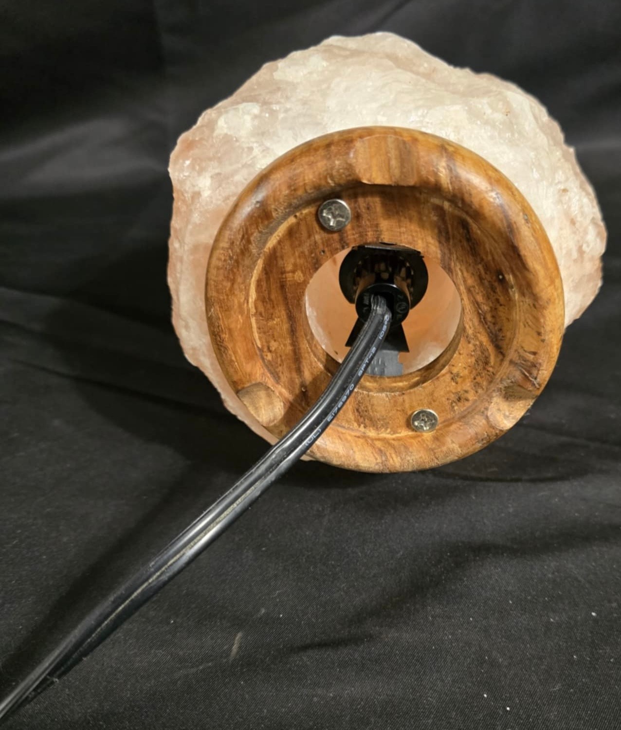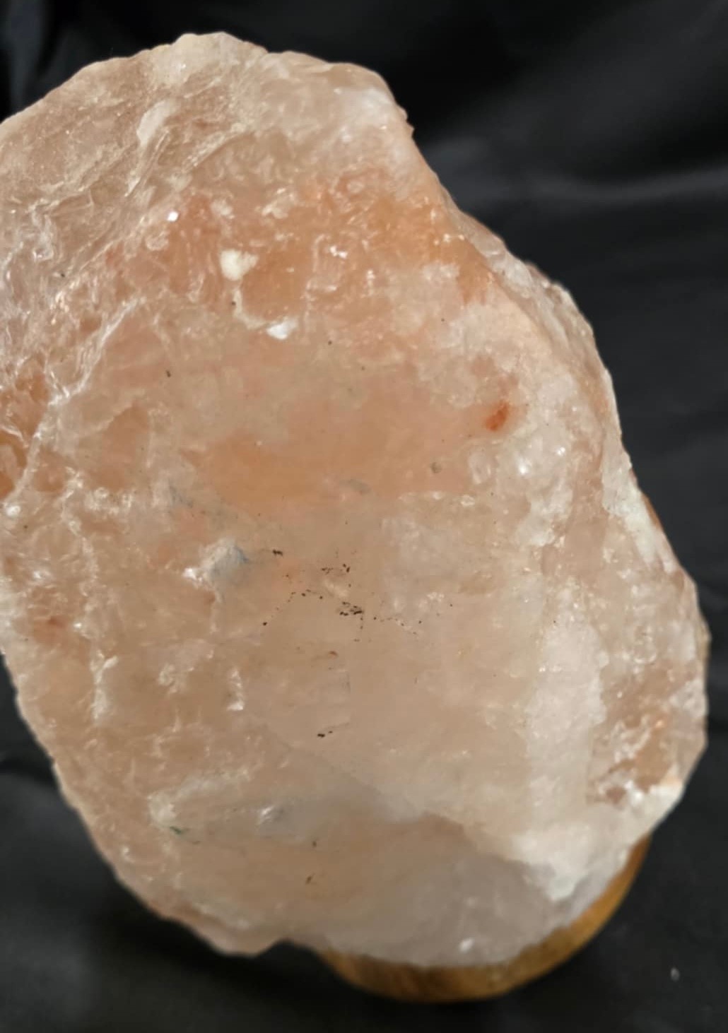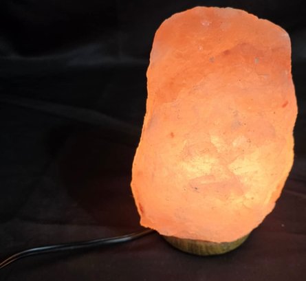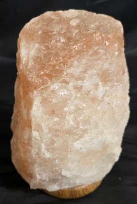 Hand-carved natural Himalayan salt lamp with a wooden base. . Measures 7.5h x 5w.