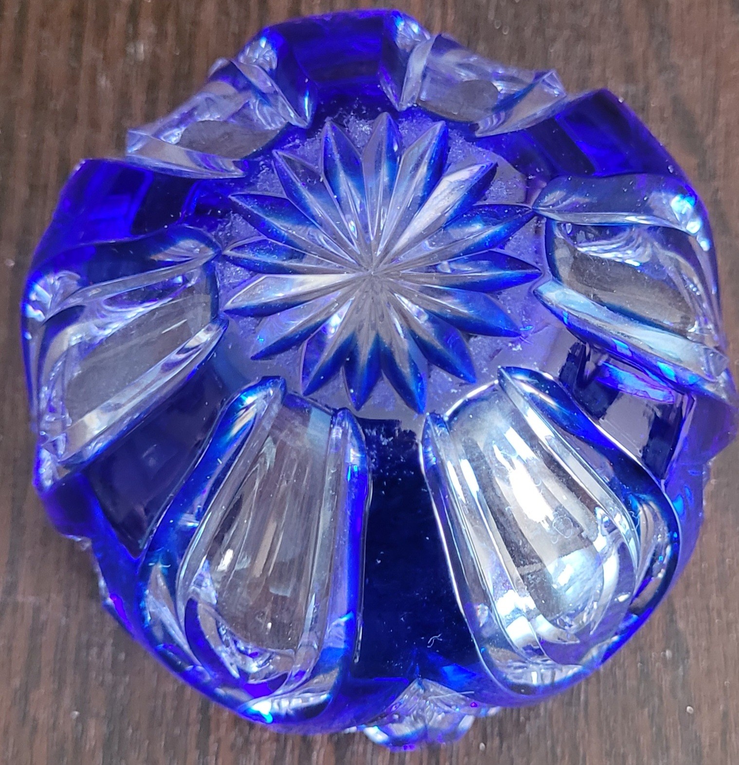 This is a beautiful piece. It measures 3.75" in diameter by 2.75" tall. I didn't see any chip or cracks. See pictures for details.