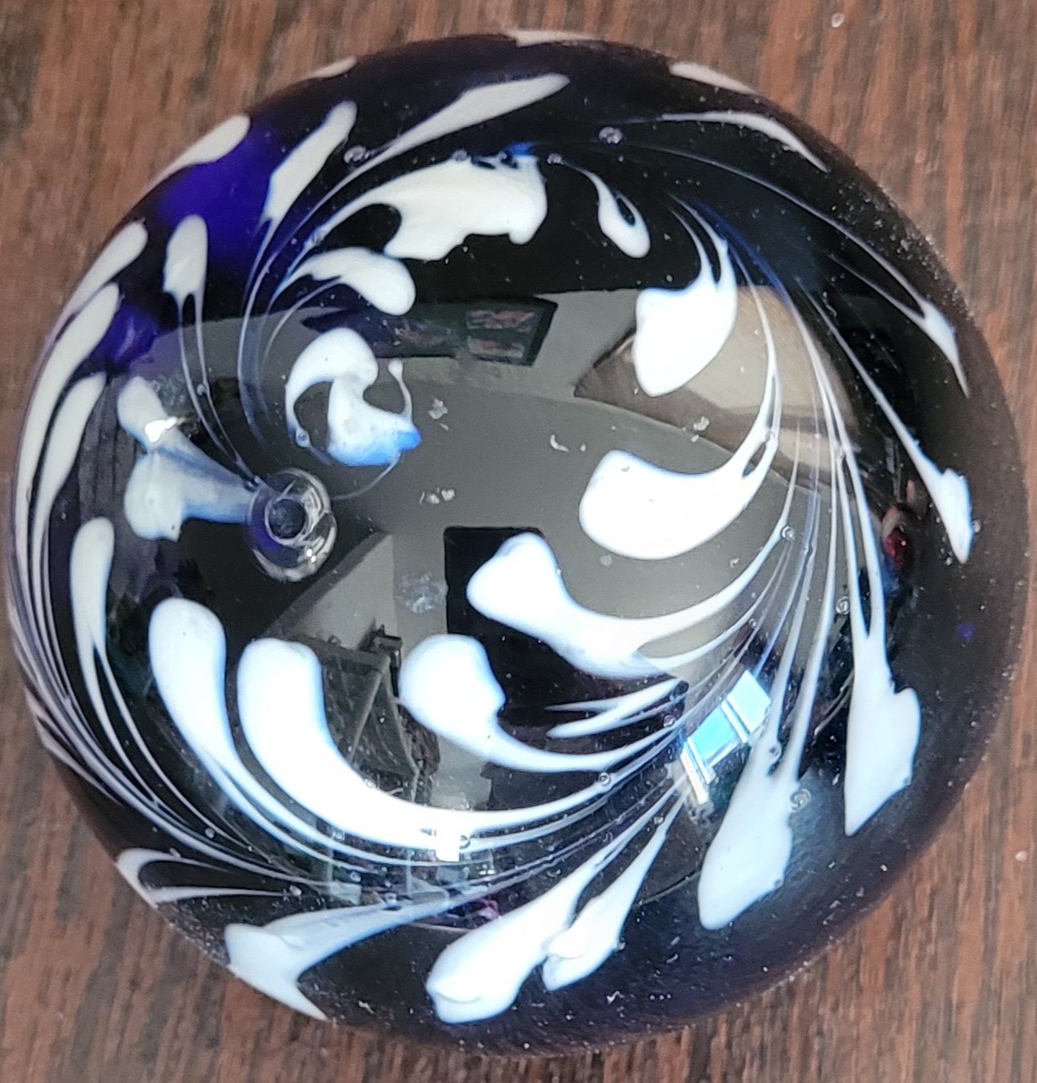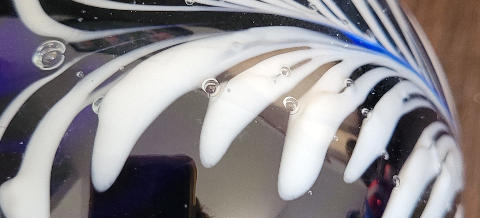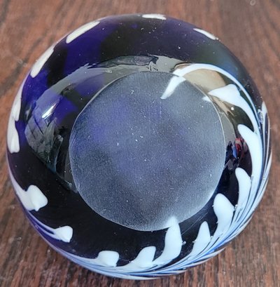 This measures 3.5" in diameter. It does have some bubbles in the glass. See pictures for details.