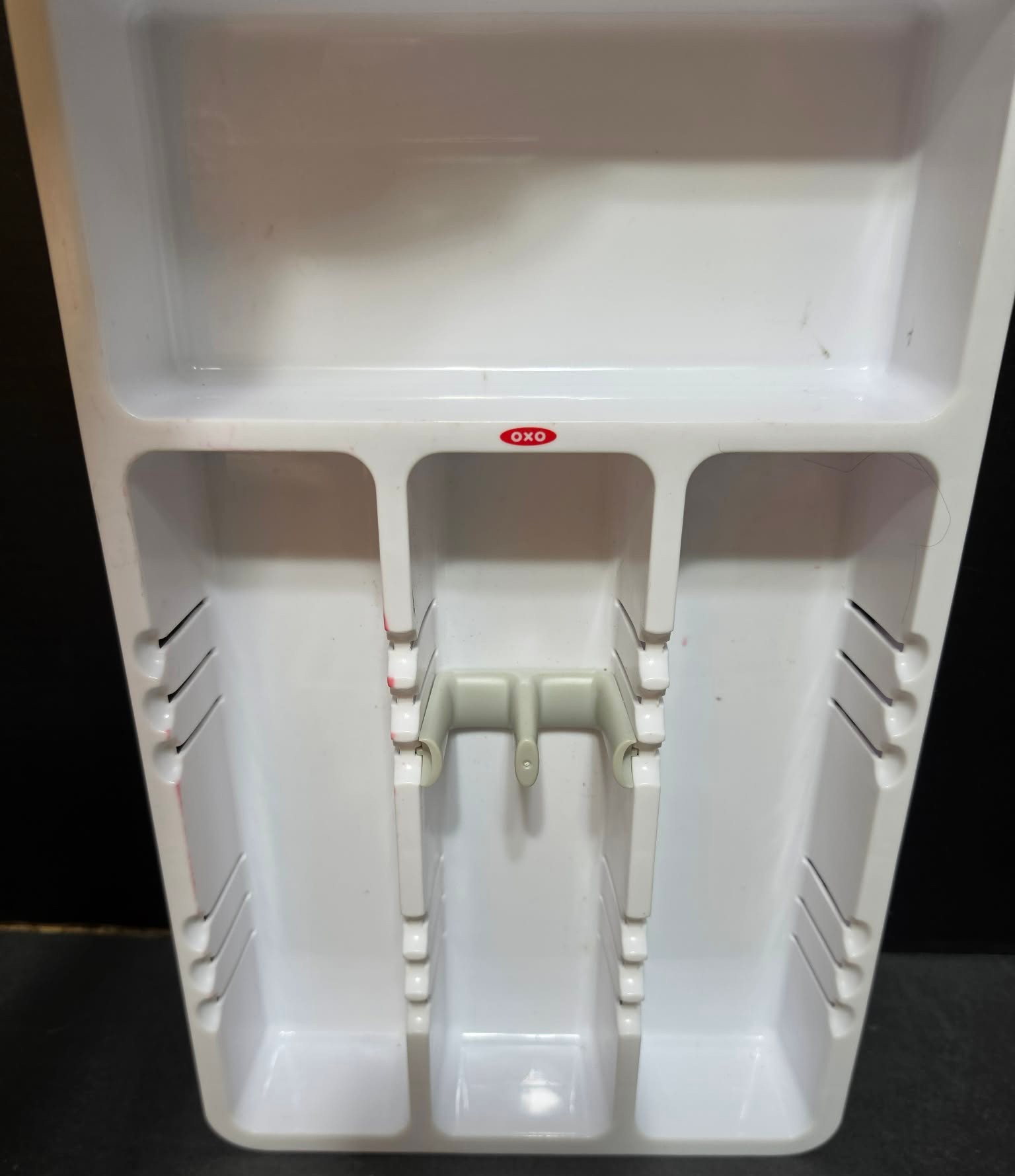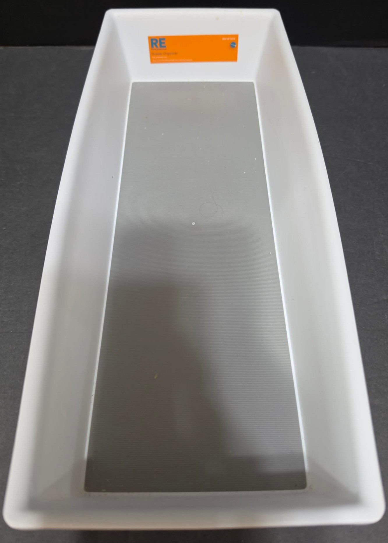 Safety work gloves, plastic organizer tray, plastic drawer organizer, partial roll of EVA foam matting, and a Mesh 1-Runner drawer.