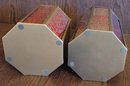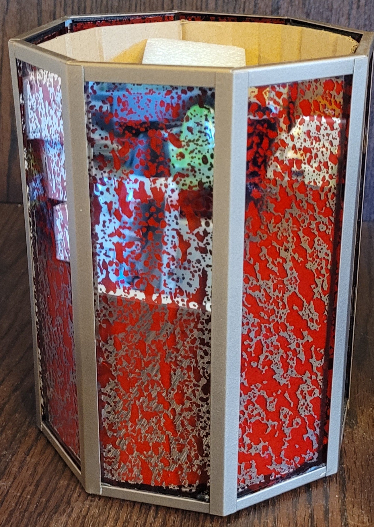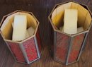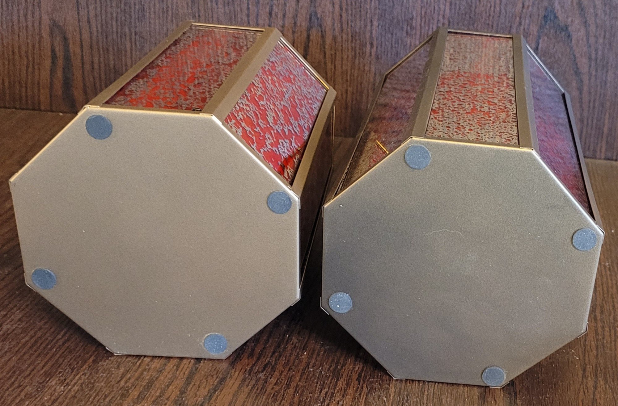 The small one measures 7.25" tall by 5.5" in diameter and the large one measures 9.25" tall by 5.5" in diameter. Both come with the fairy lights and appear to have never been used. See pictures for details.