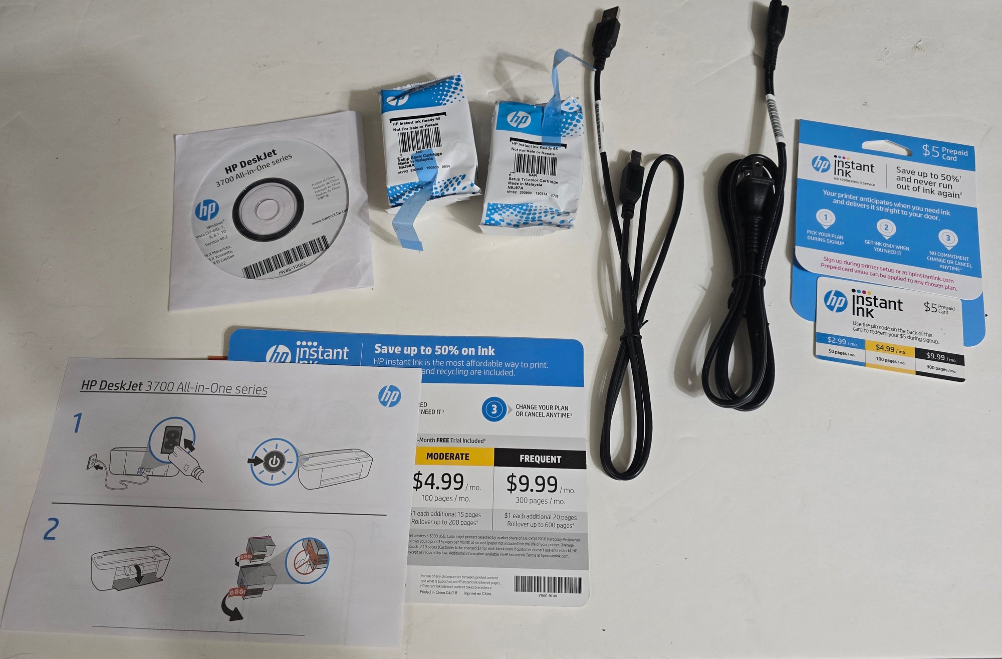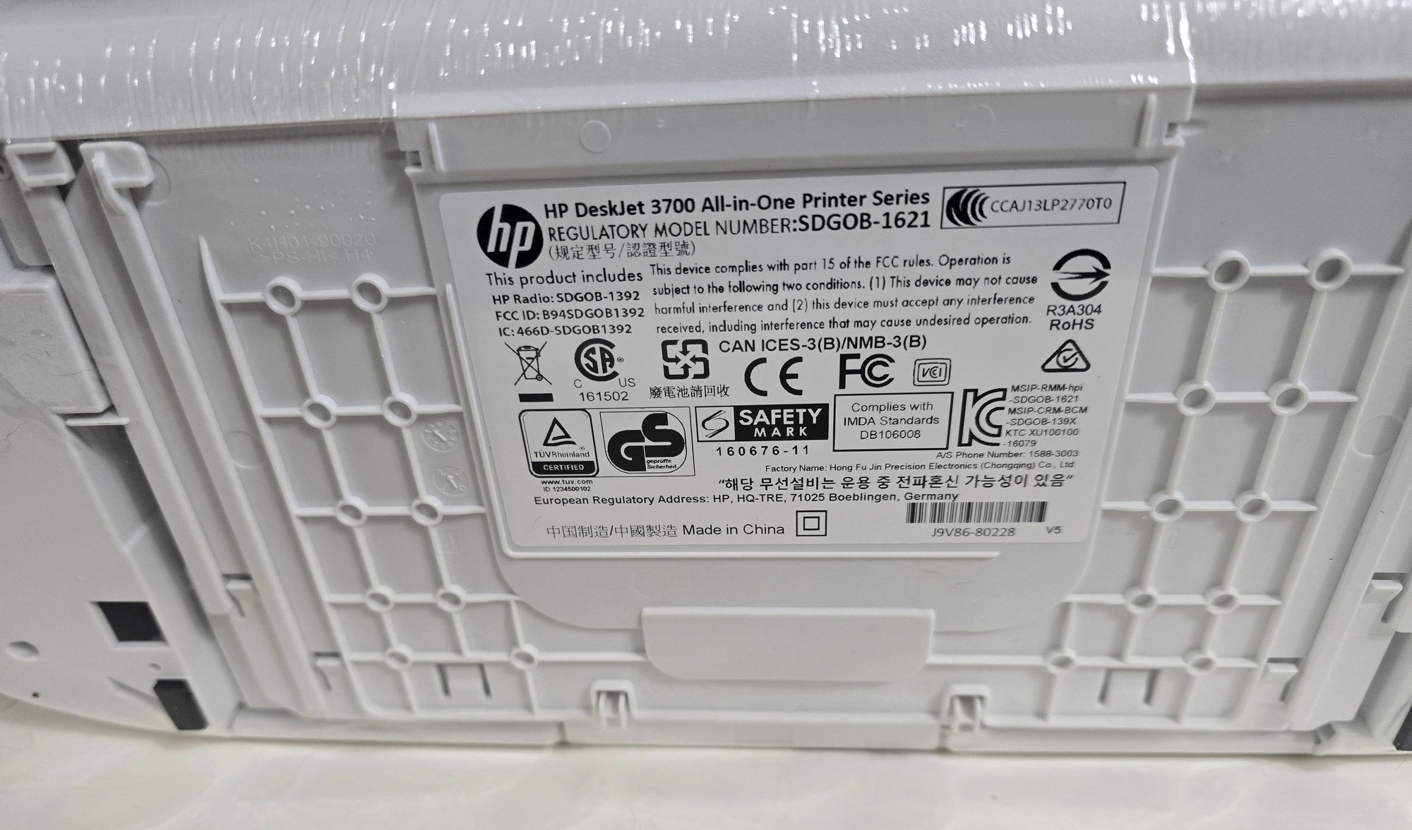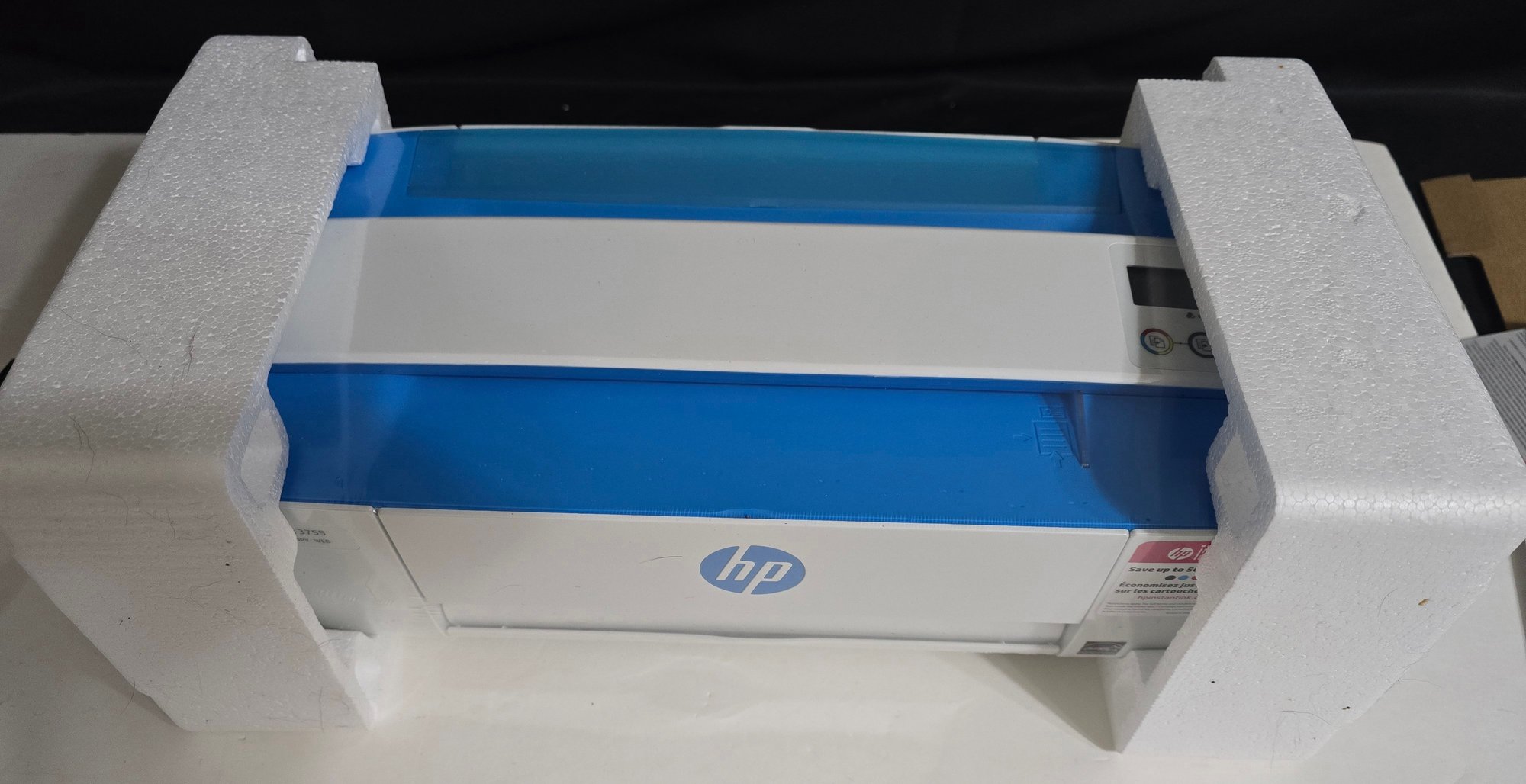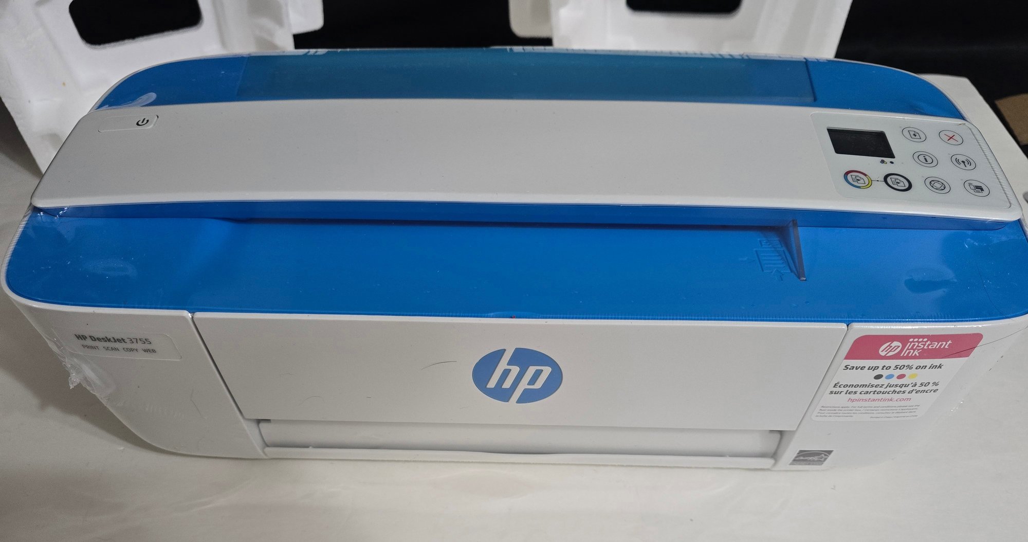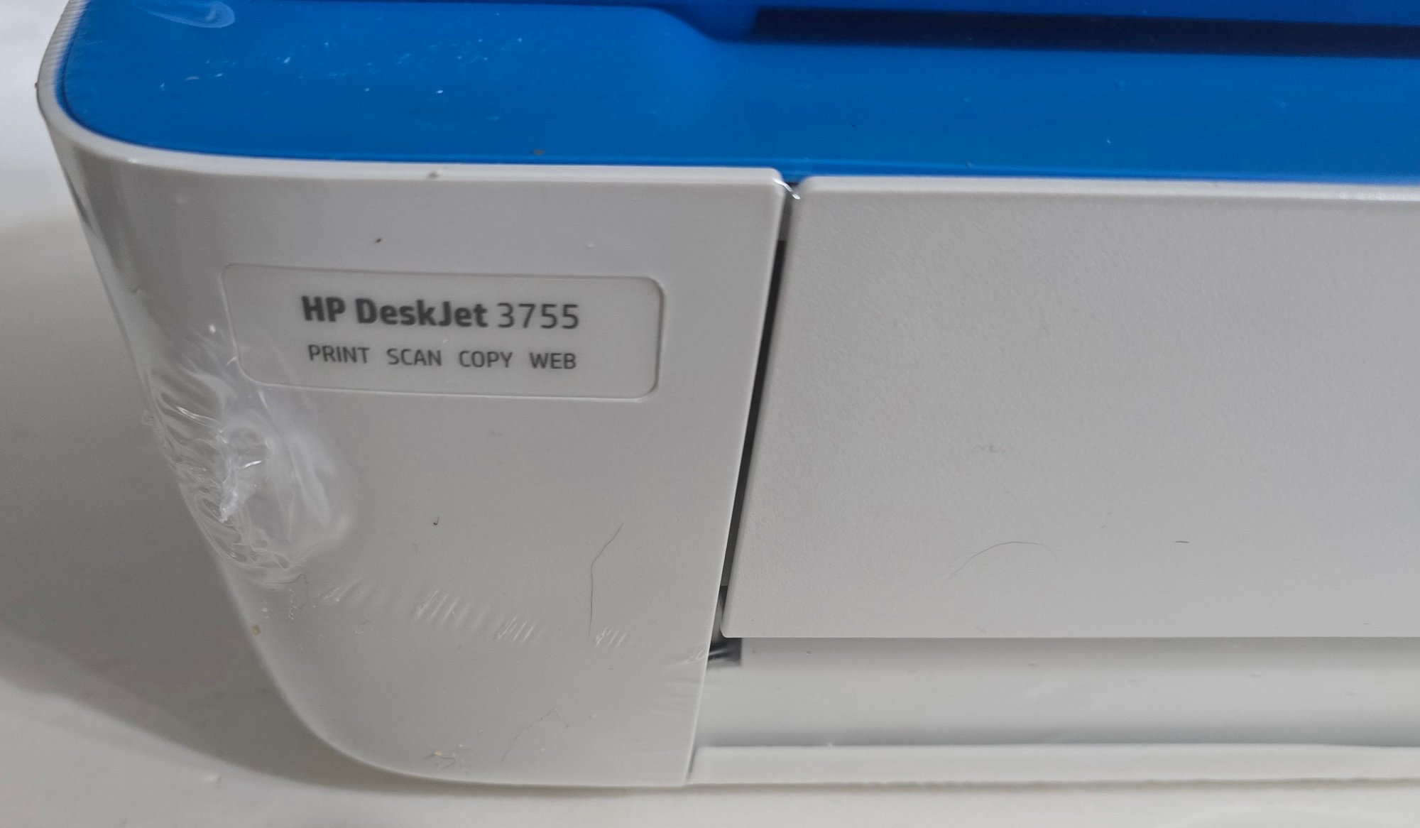 HP Deskjet 3755 All in One series printer. Box was opened, however printer is still sealed in factory celephane. Untested. Looks like everything is there.