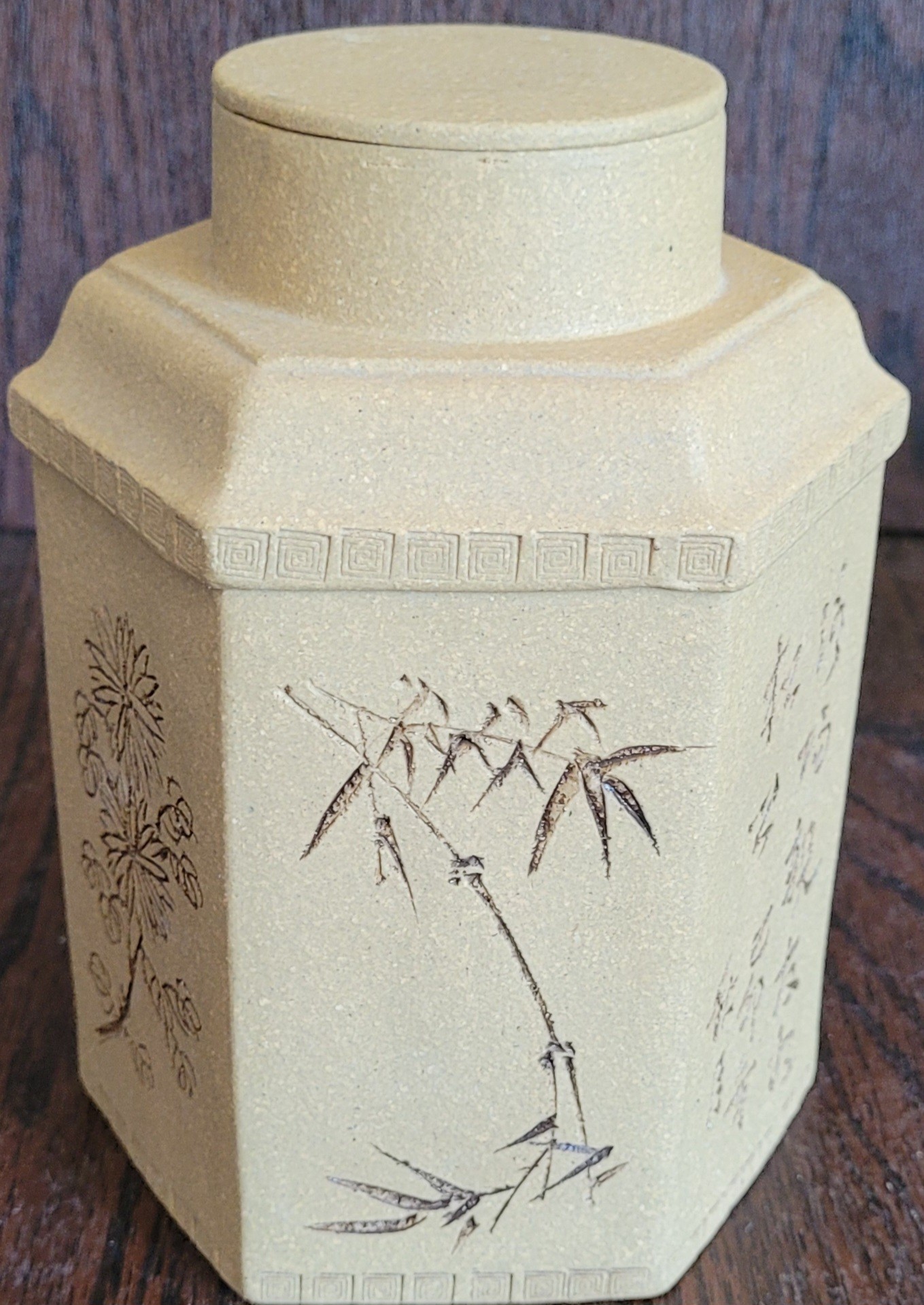 This is only a 2 piece. It measures 6.75" tall by 5" in diameter. Good condition. See pictures for details.