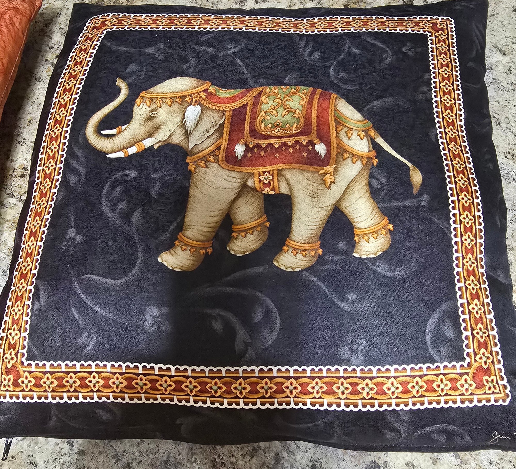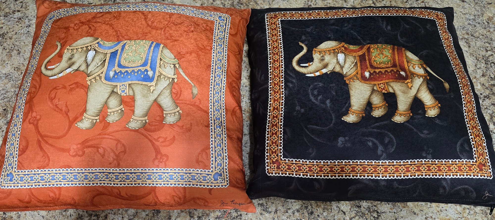 Jim Thompson silk elephant decorative pillow/covers featuring a traditional Thai motif. Measures 15.5 x 14.5. Please see all pics for details.