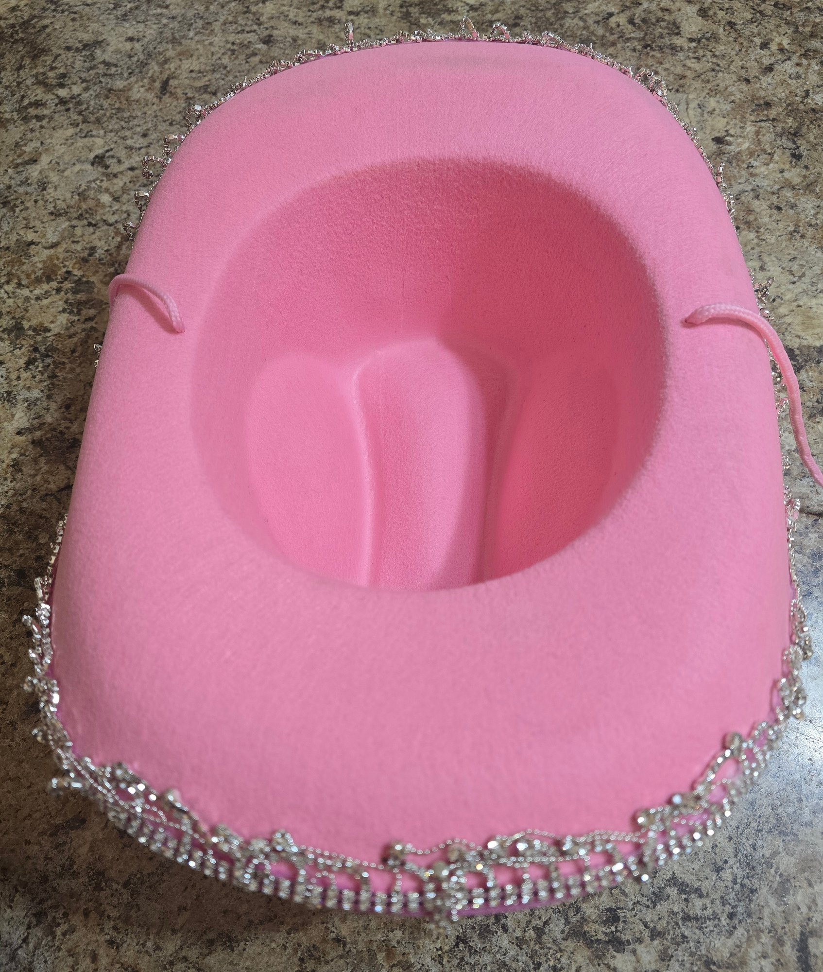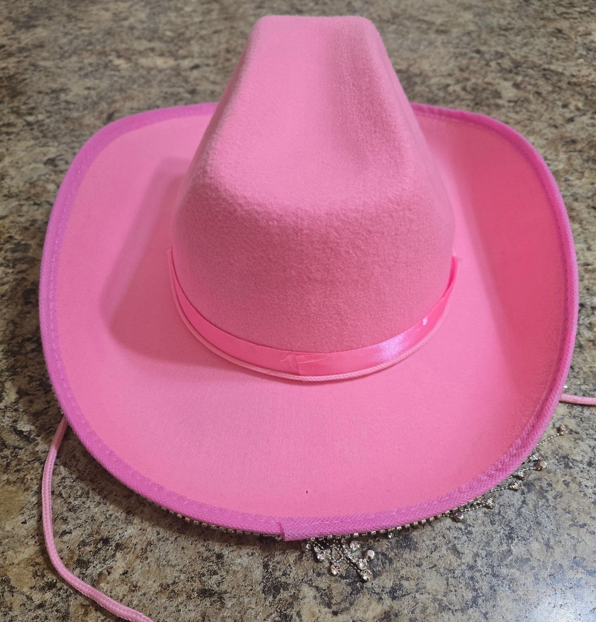 Pink felt cowgirl hat. Very cute. Please see all pics for details.