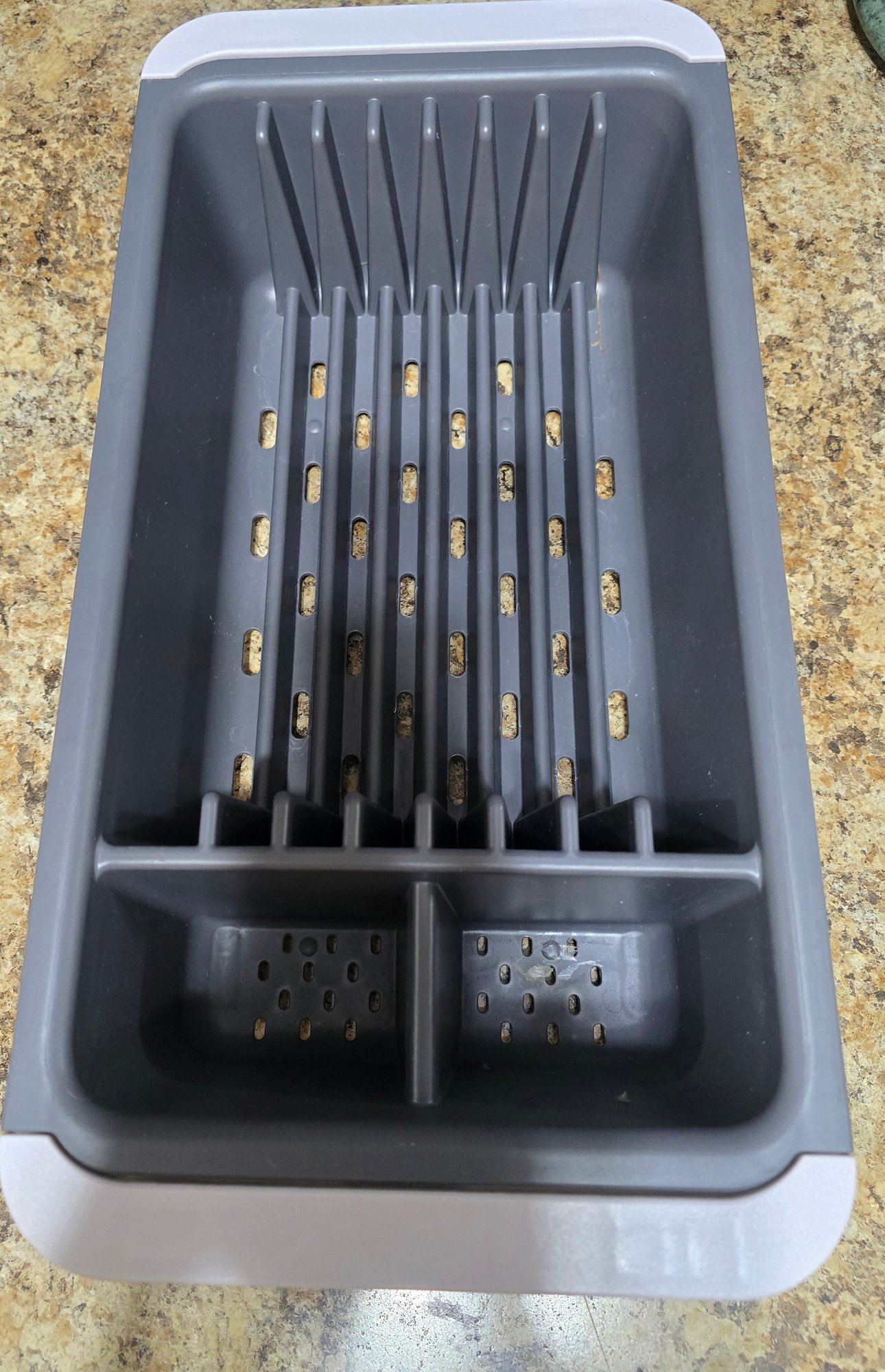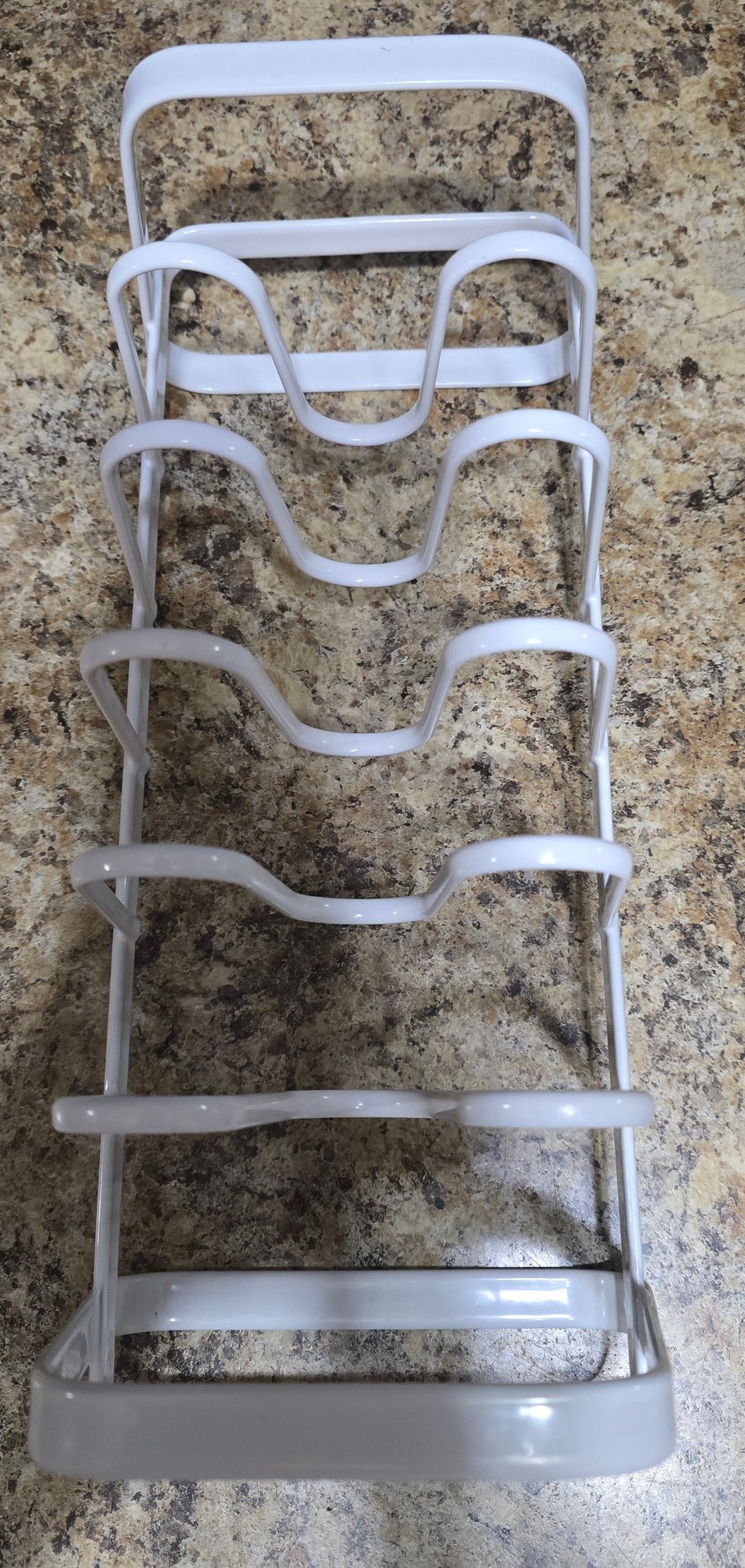 Kitchen Helper Lot. 2 Paper Towel Holders. A nice framed wall hanging picture measuring 15 x 12. A expandable, over-the-sink plastic dish drying rack, and a white metal pot lid organizer rack. Please see all pics for details.