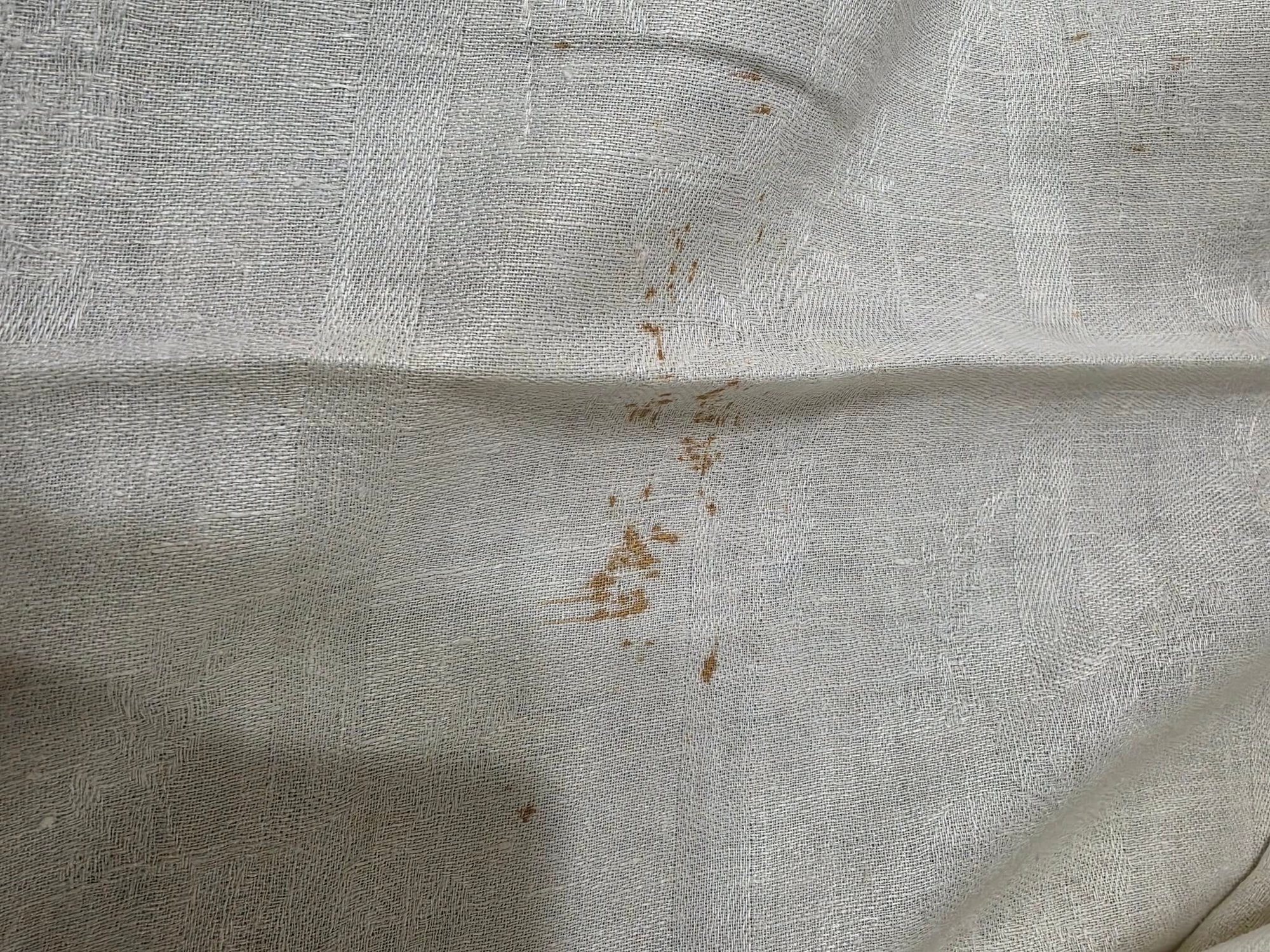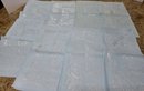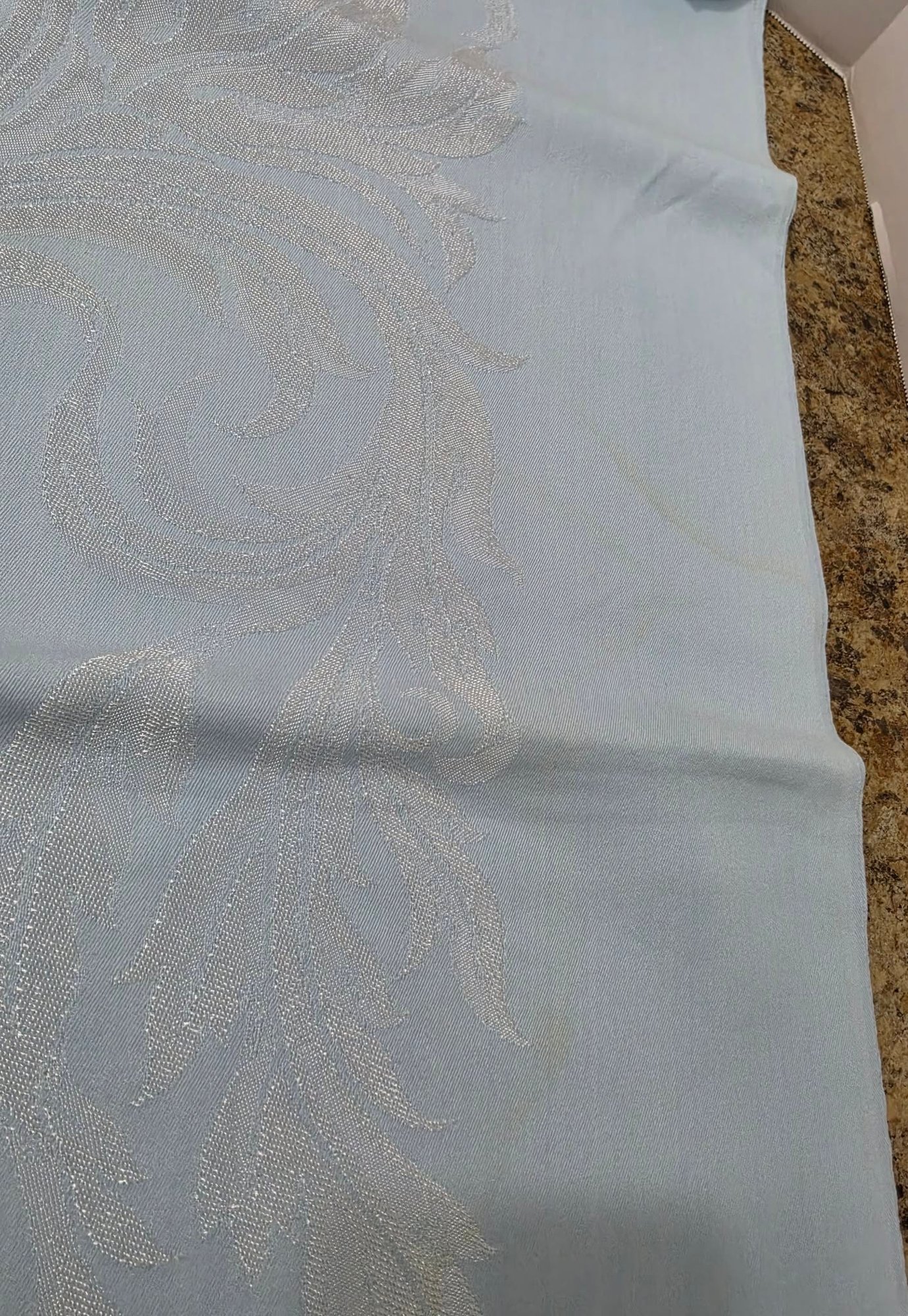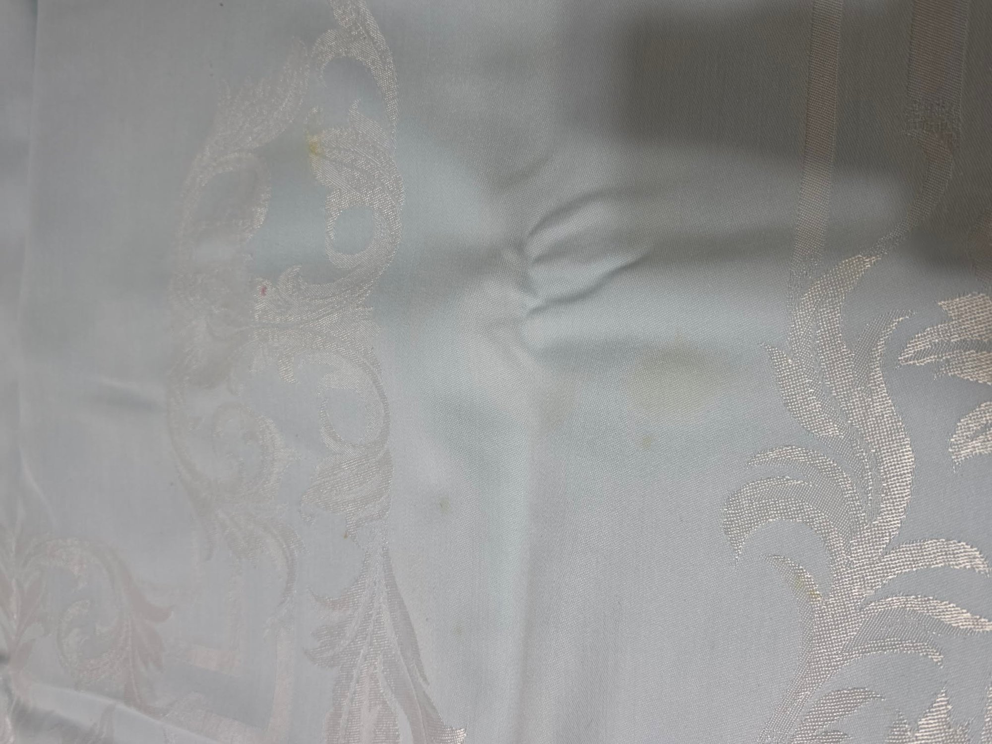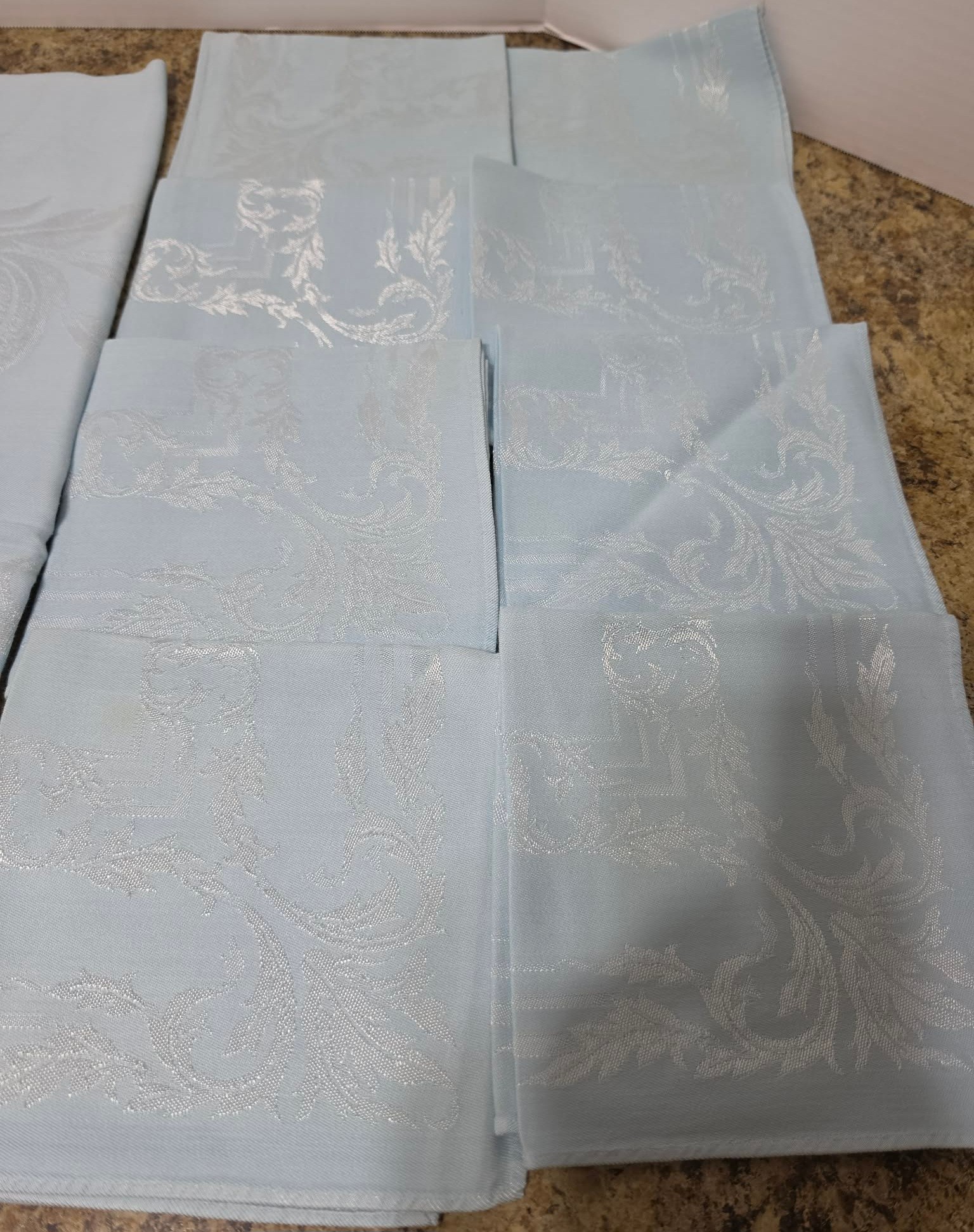 Large Cloth Table Clothes & Napkins. Staining. Not sure if it can come out. Measures 74 x62 white, 60 x 120 darker blue and 74 x 60 light blue.