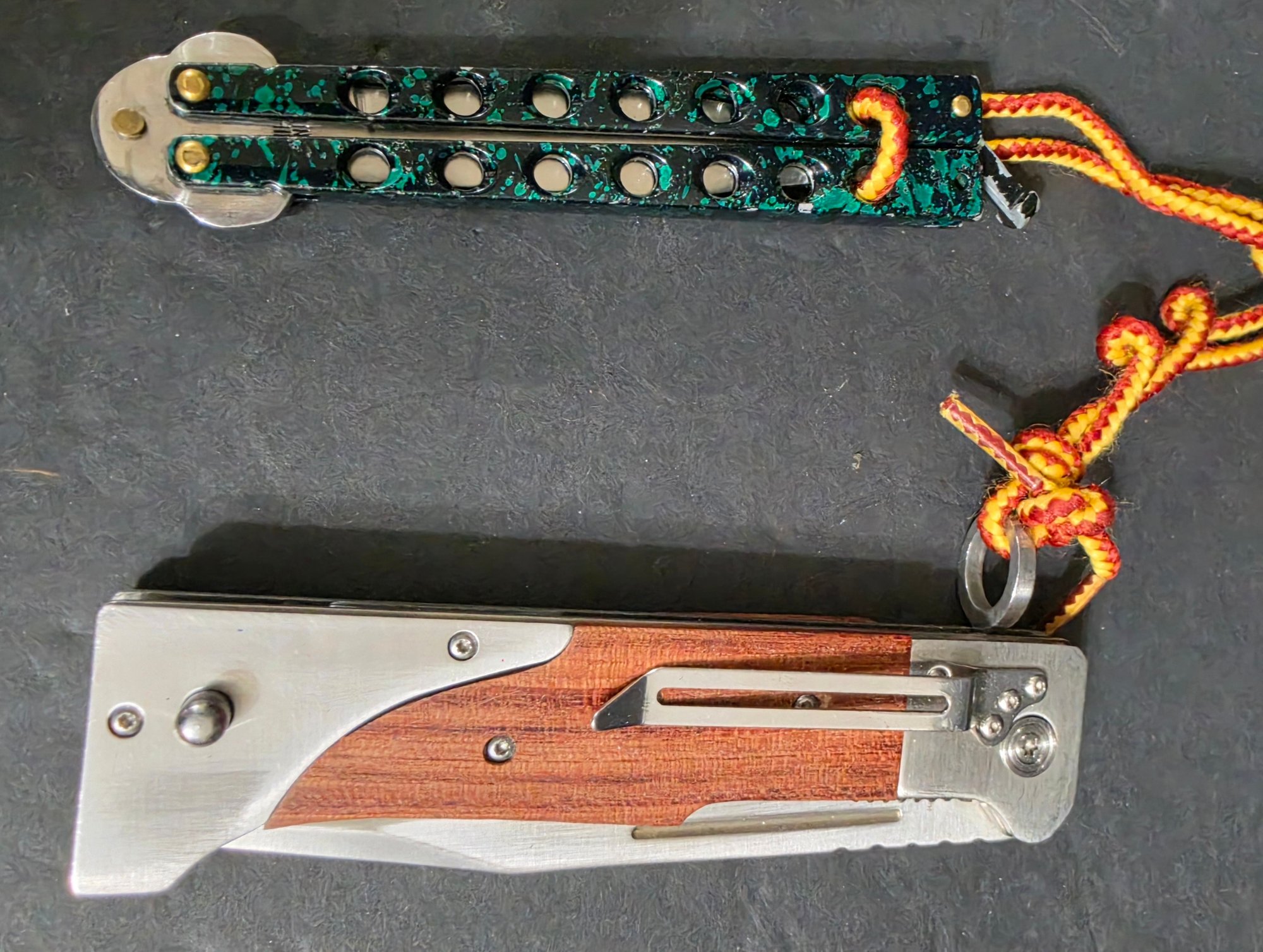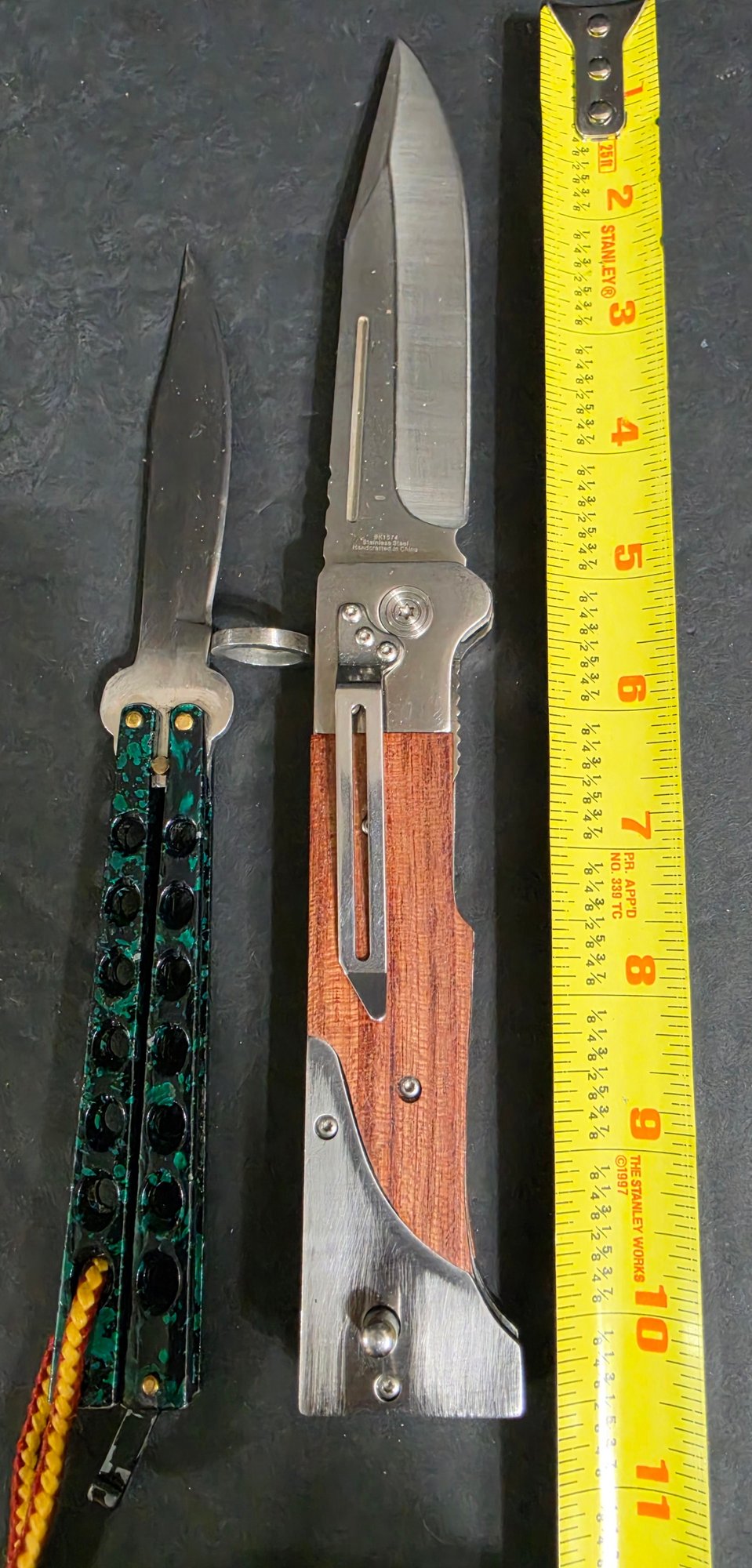 Classic Economy Butterfly Knife Stainless Steel - Marble Green and a Large Folding Pocket Knife. Please see all pics for details.