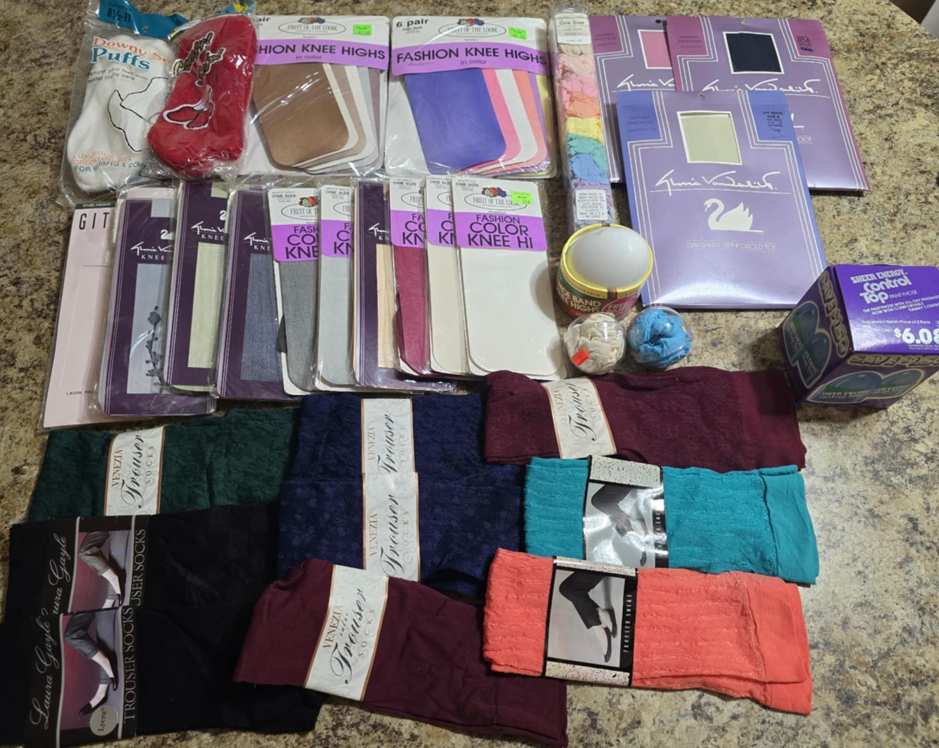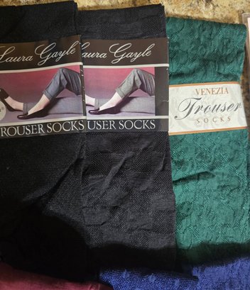 Large group of Woman's trouser socks, knee highs, panty hose and more. All unopened.