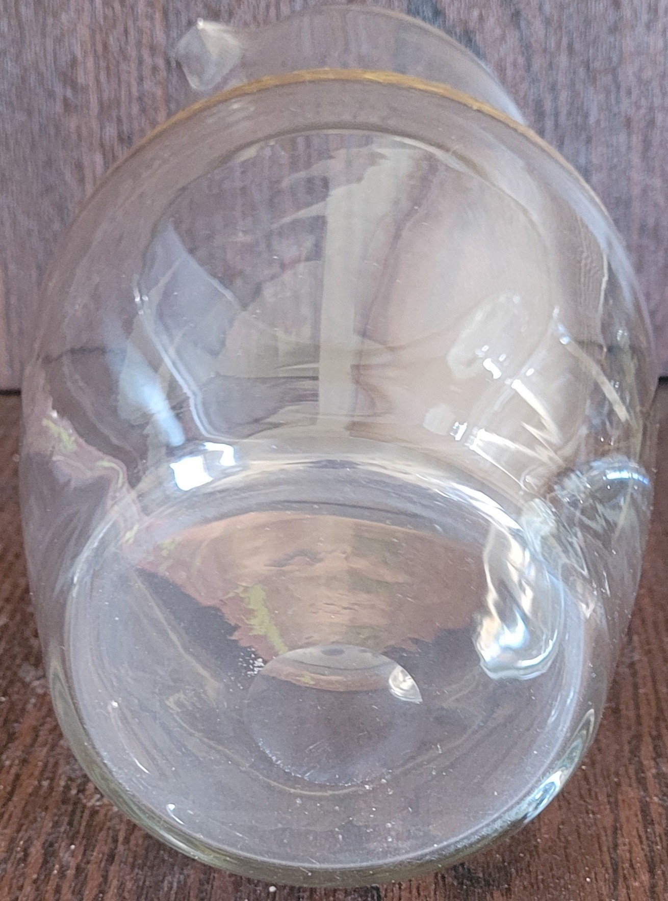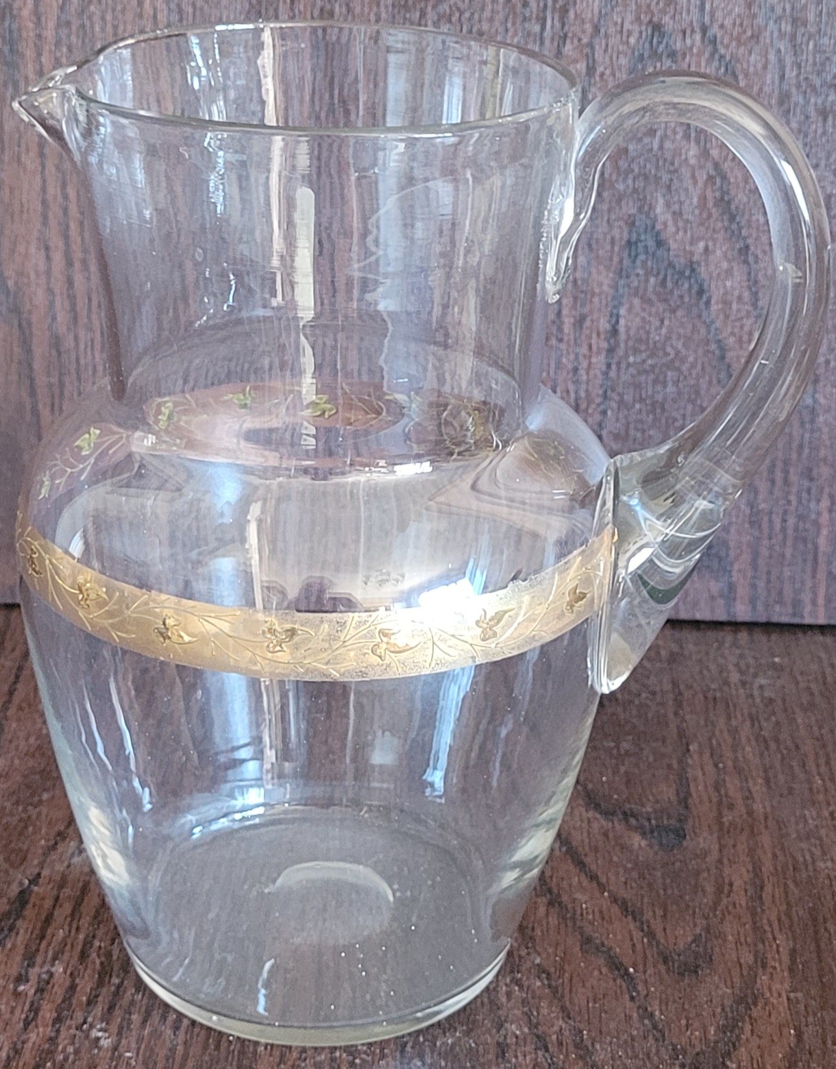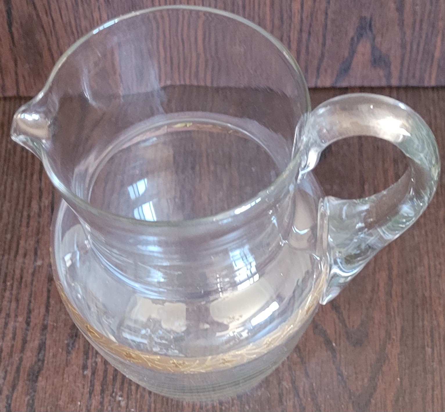 This pitcher measures 8.75" tall by 7" long by 5.5" wide. I didn't see any chips or cracks. See pictures for details.