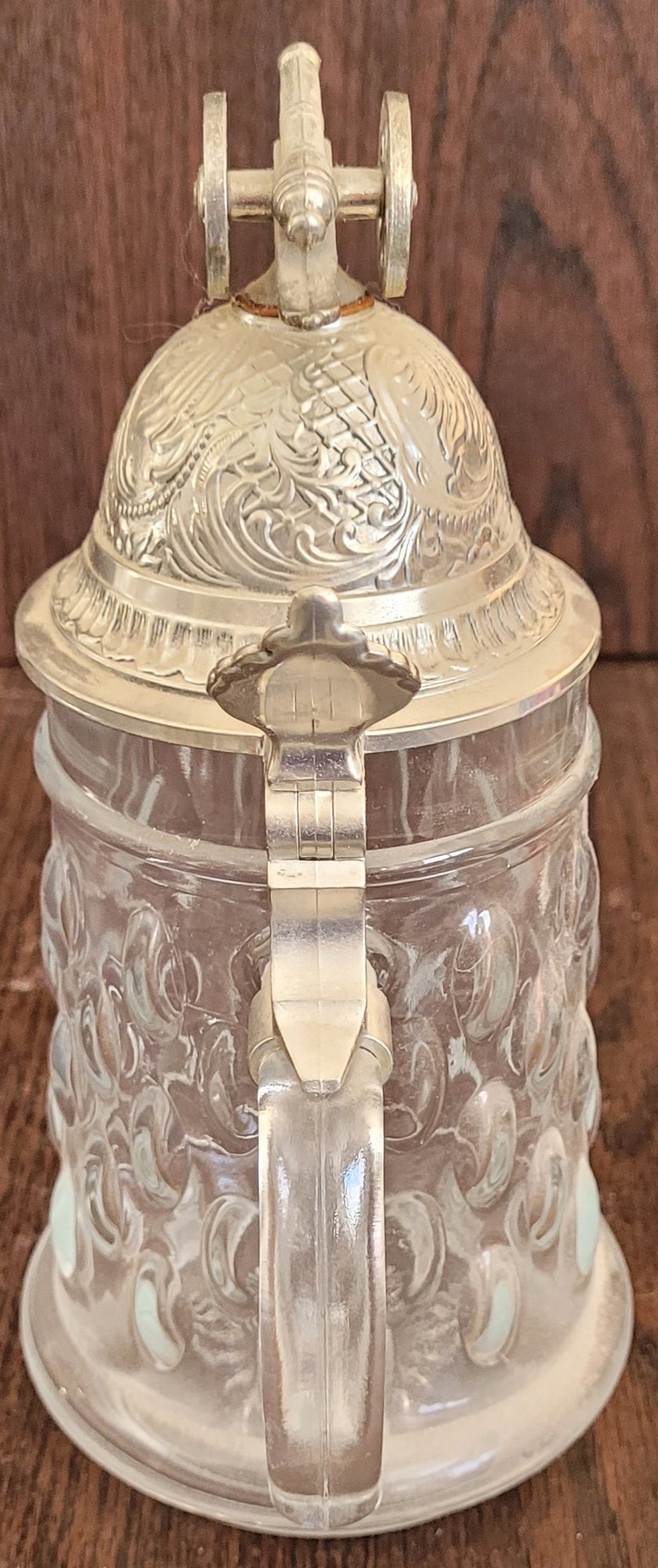 This measures 9" tall. It is in good condition. I didn't see any chips or cracks. See pictures for details