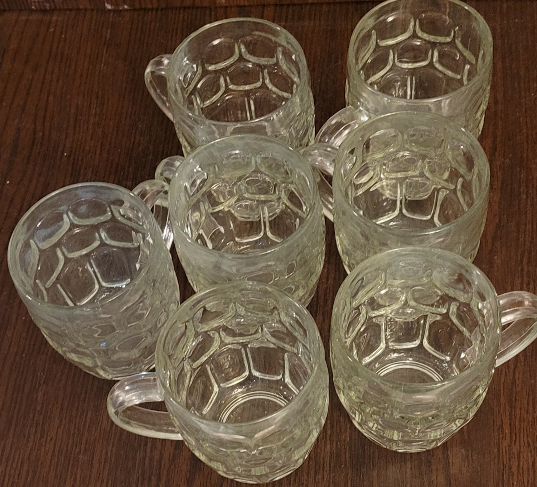 This lot comes with 7 mugs. Each measures 5" tall by 3.75" in diameter. See pictures for details.