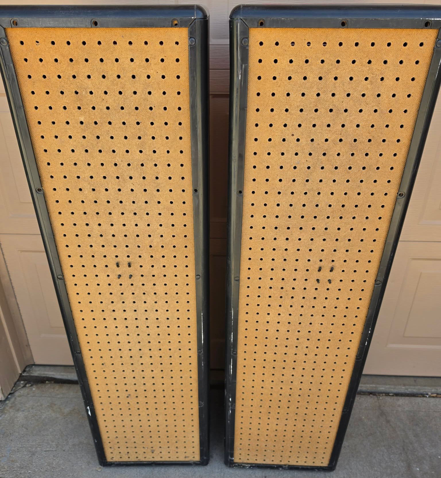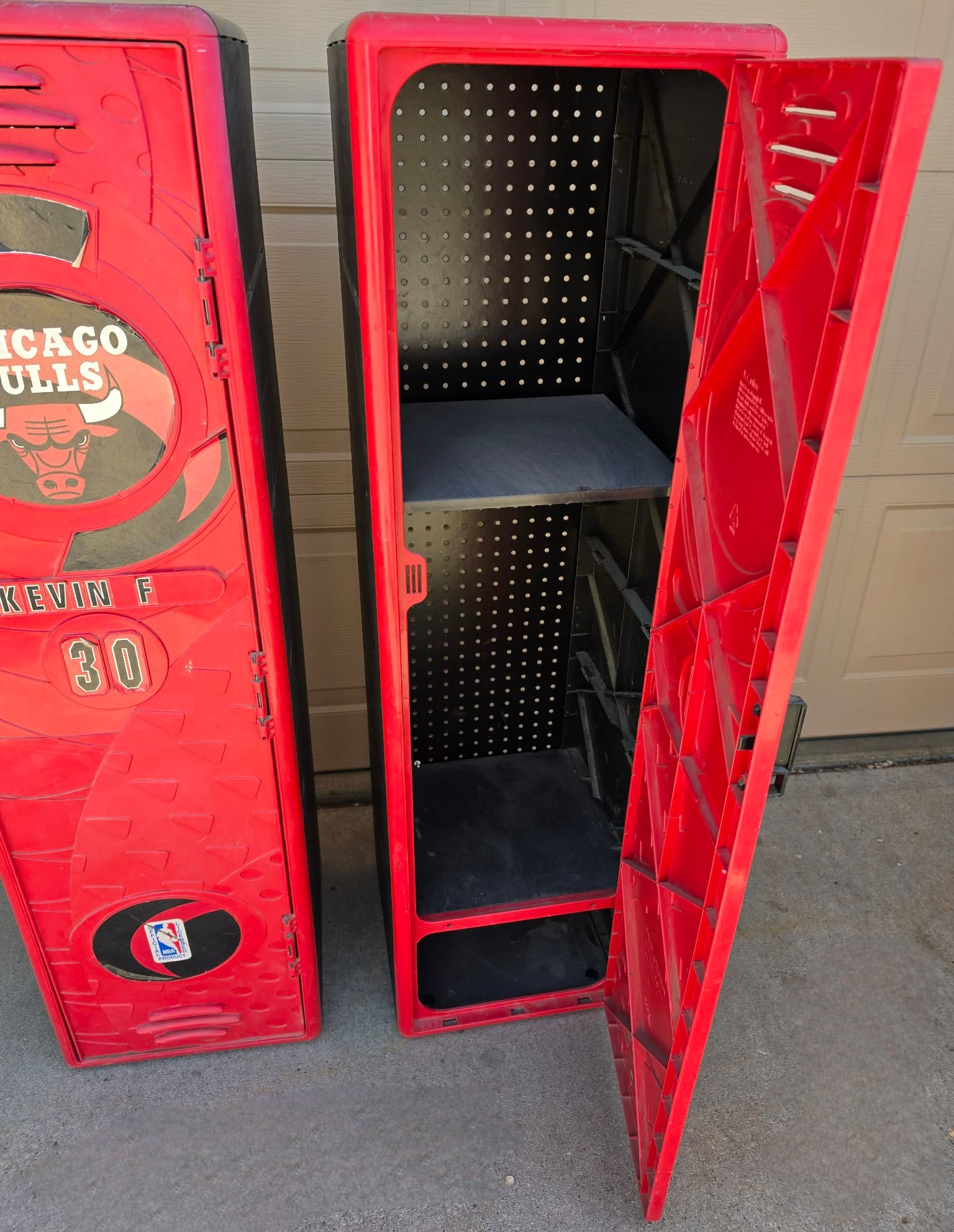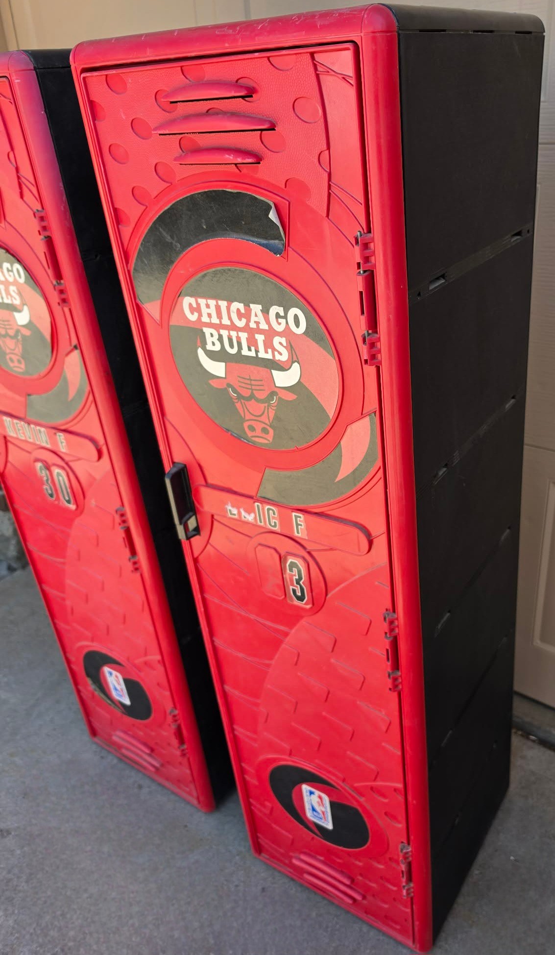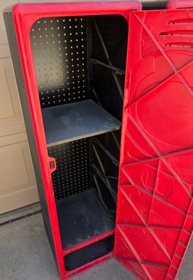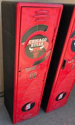 Plastic Kids Lockers. One handle missing. Measures 14 x 14 x 49.5. Needs cleaned.