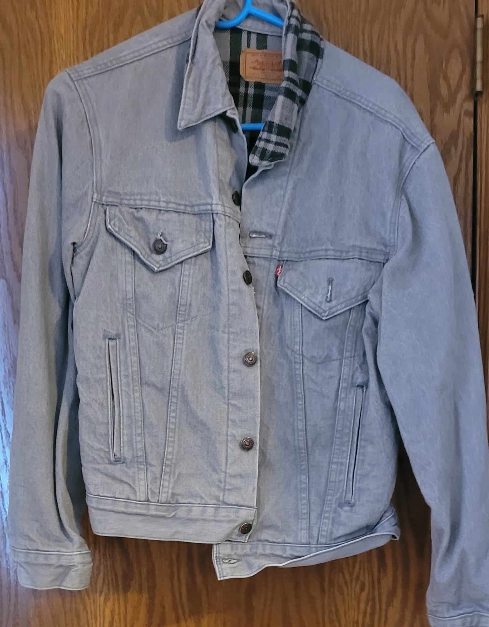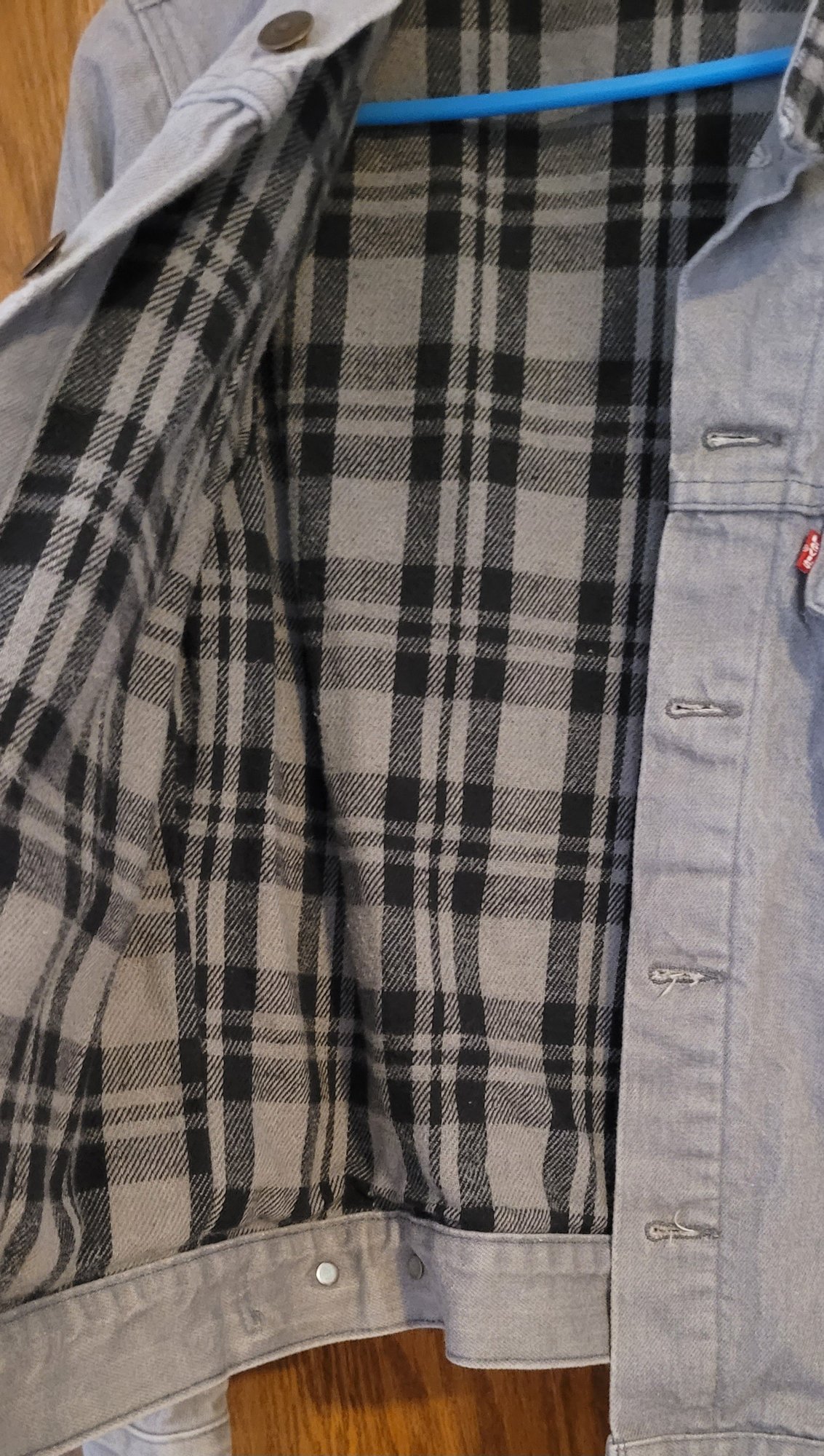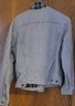 This jacket is a medium jacket and looks more of a gray color. See pictures for details.