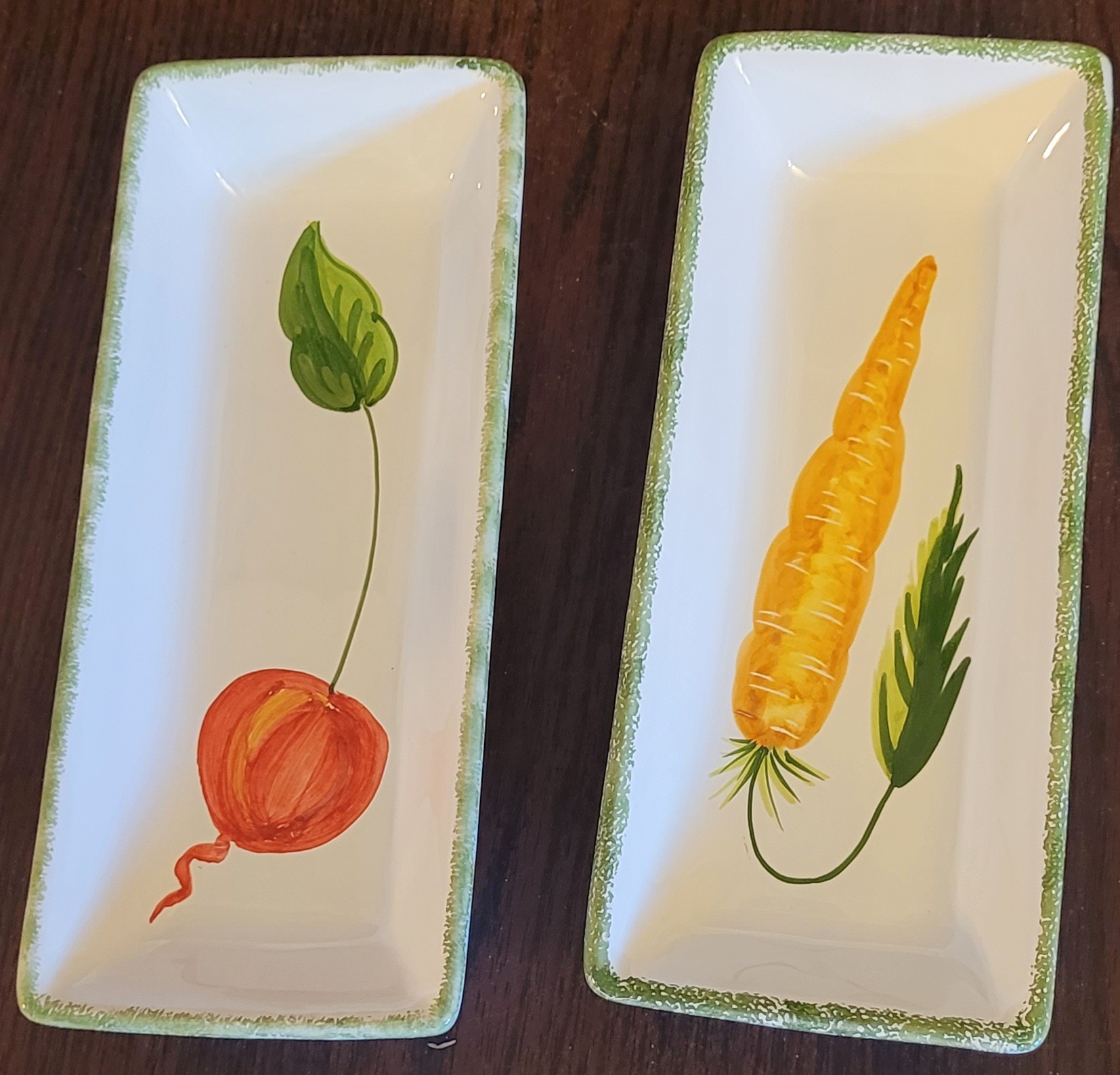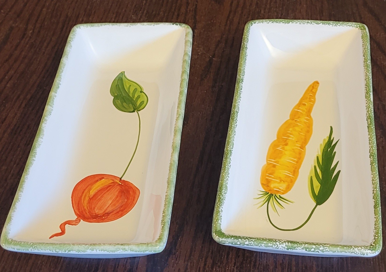 Each of these plates measure 9.75" long by 4" wide by 1.5" tall. See pictures for details.