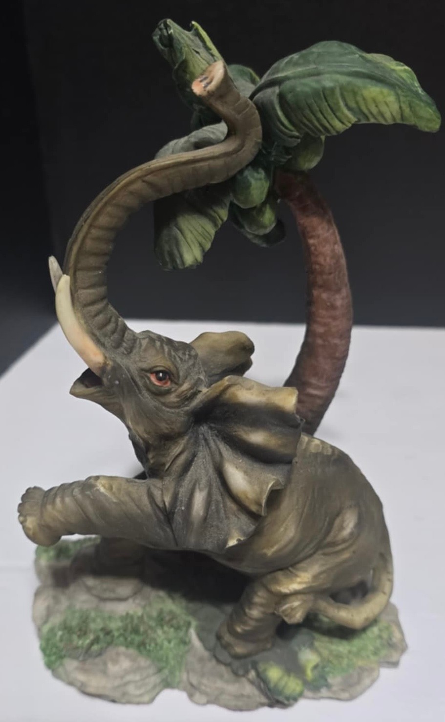 Looks to be a Rare De Capoli Collection 8.5” Elephant Statue With Bananas Figurine Sculpture. However it is missing the bananas. Measures 5.5 x 4 x 7.5.