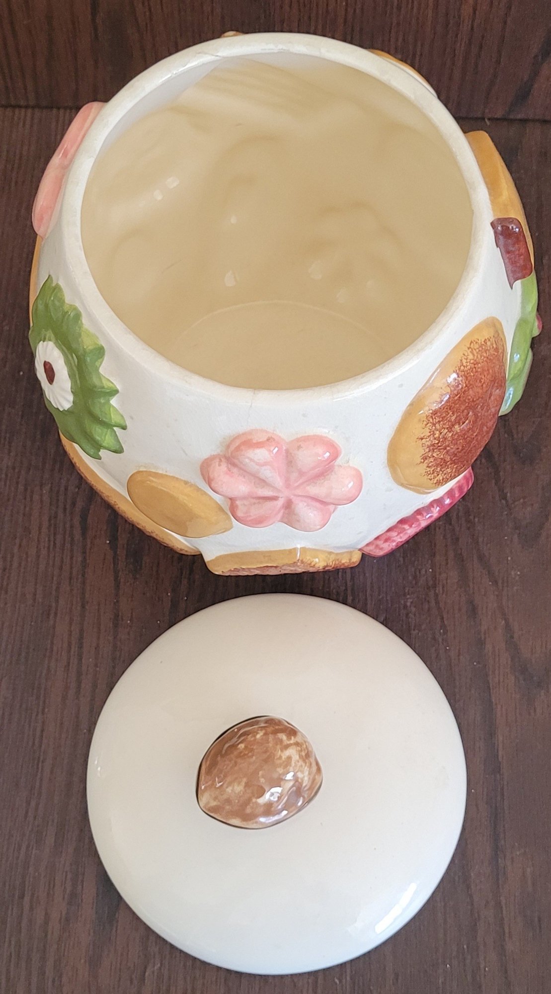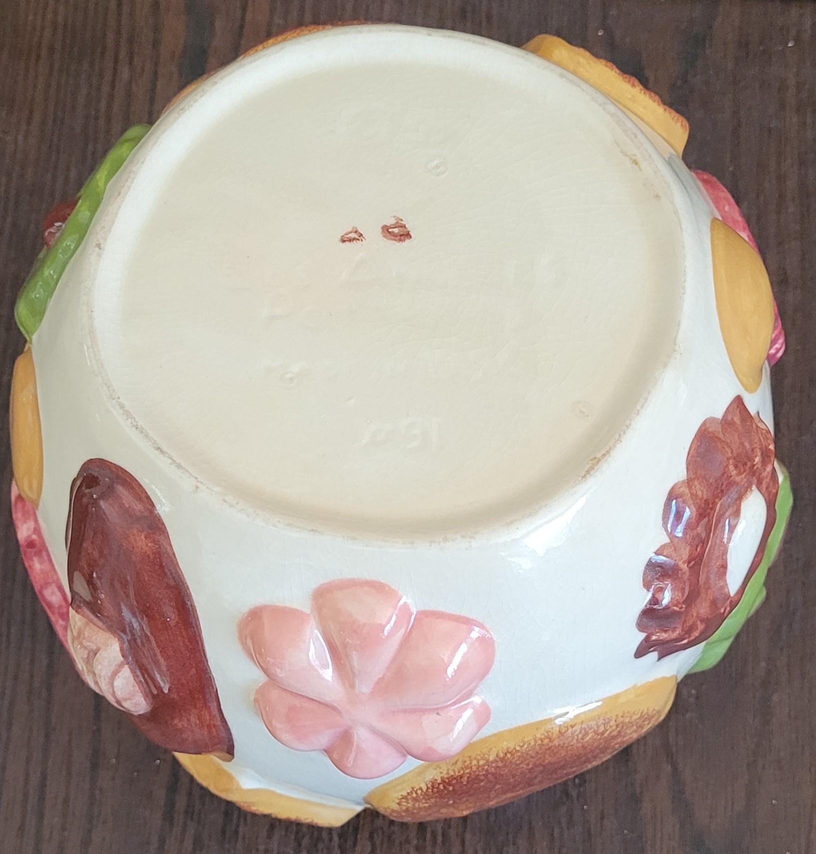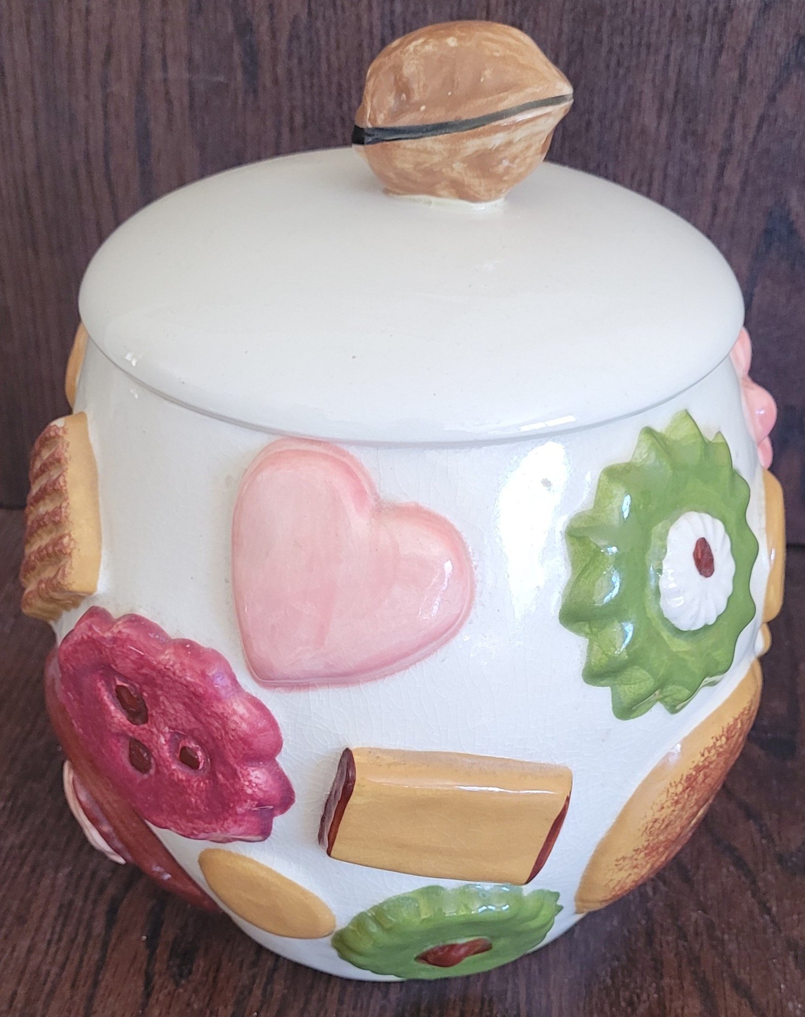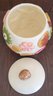 This measures 10" tall by 8.5" in diameter. There is a small chip on the side and it looks to have some crackling on it. See pictures for details.
