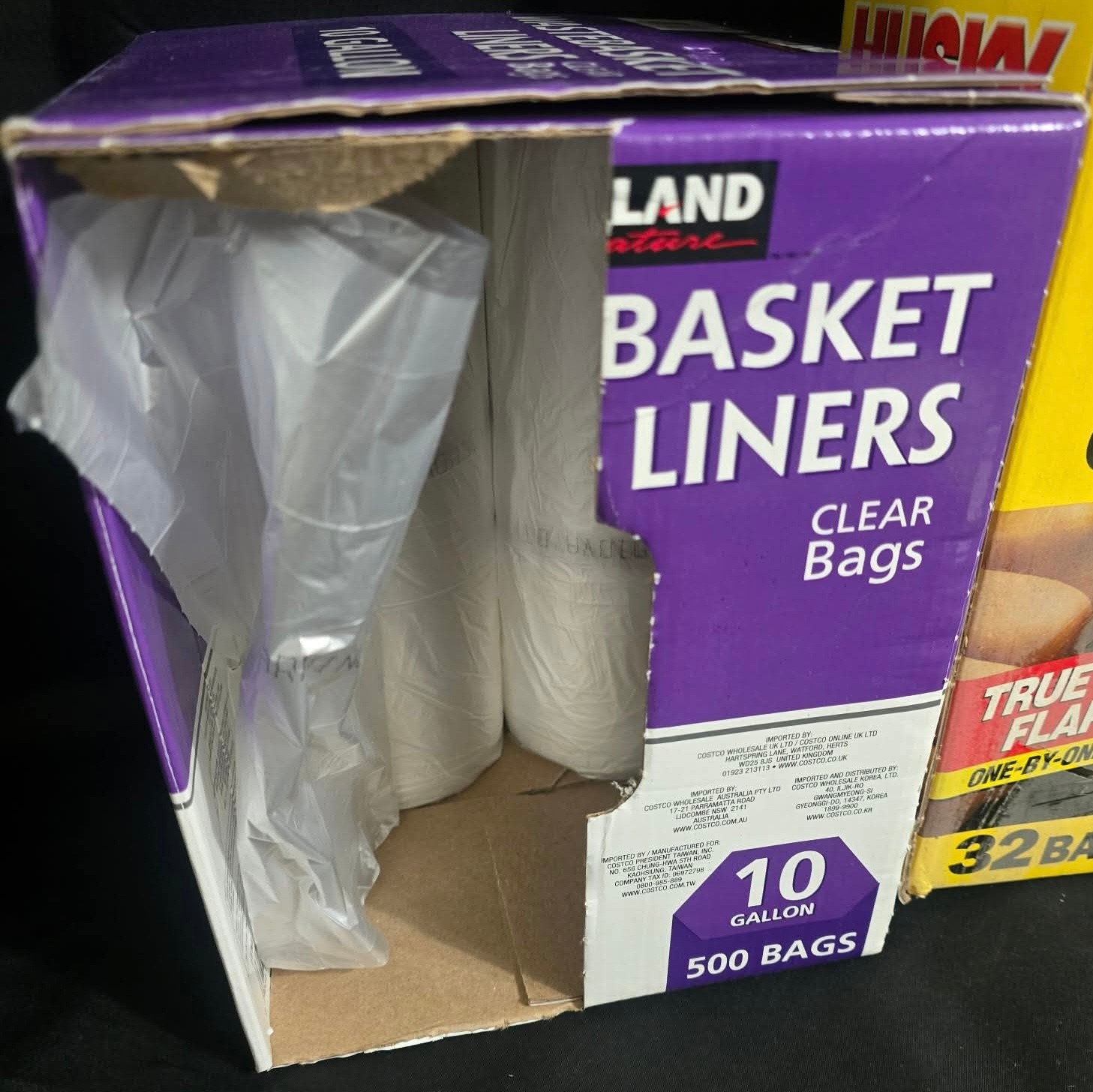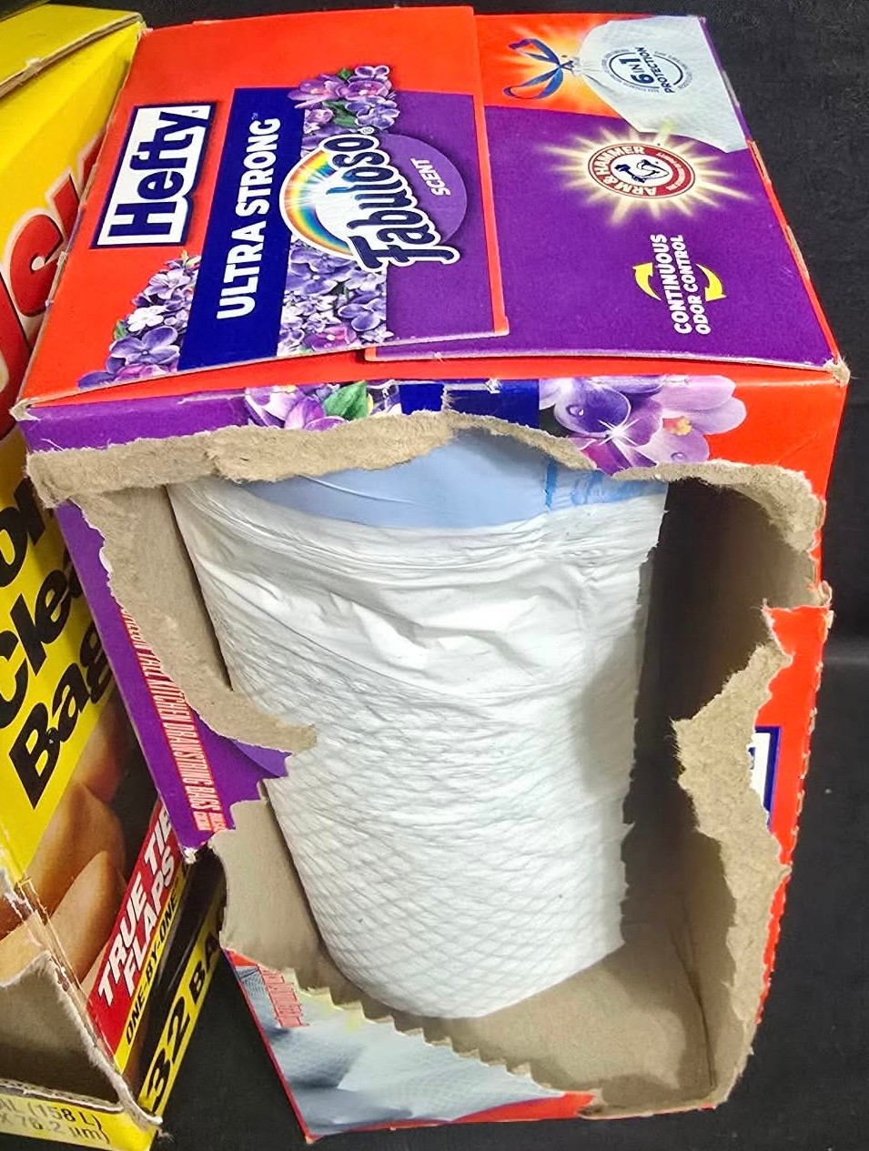 Lot # 1 - Opened boxes of trash bags. The Husky looks like it has 3 different styles of the gallon bags.