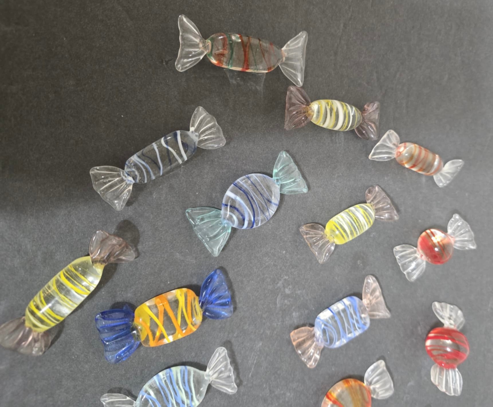 Vintage glass wrapped candy with pieces. Possibly Italian murano. Measures approximately 2.5". No cracks or chips noted.