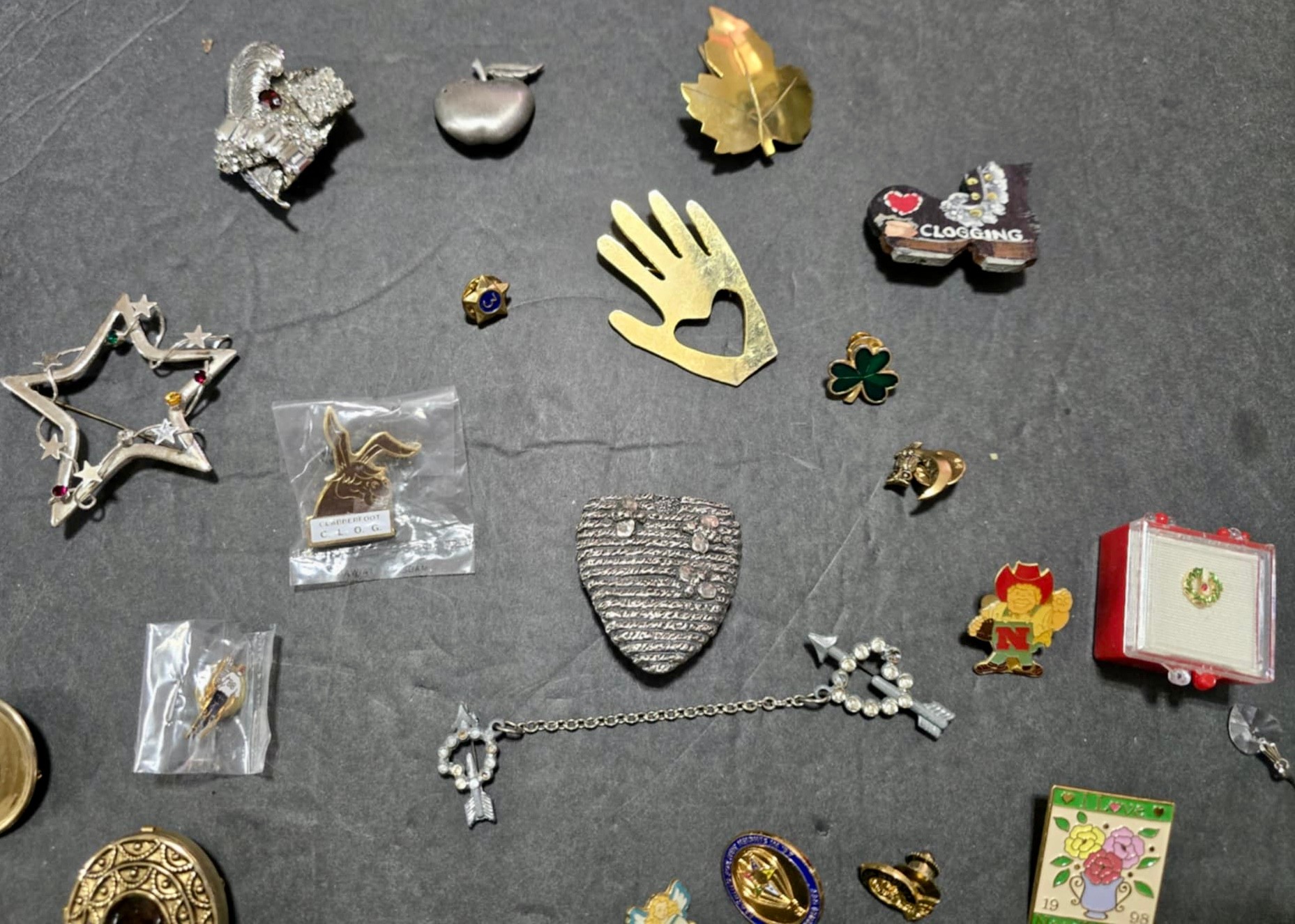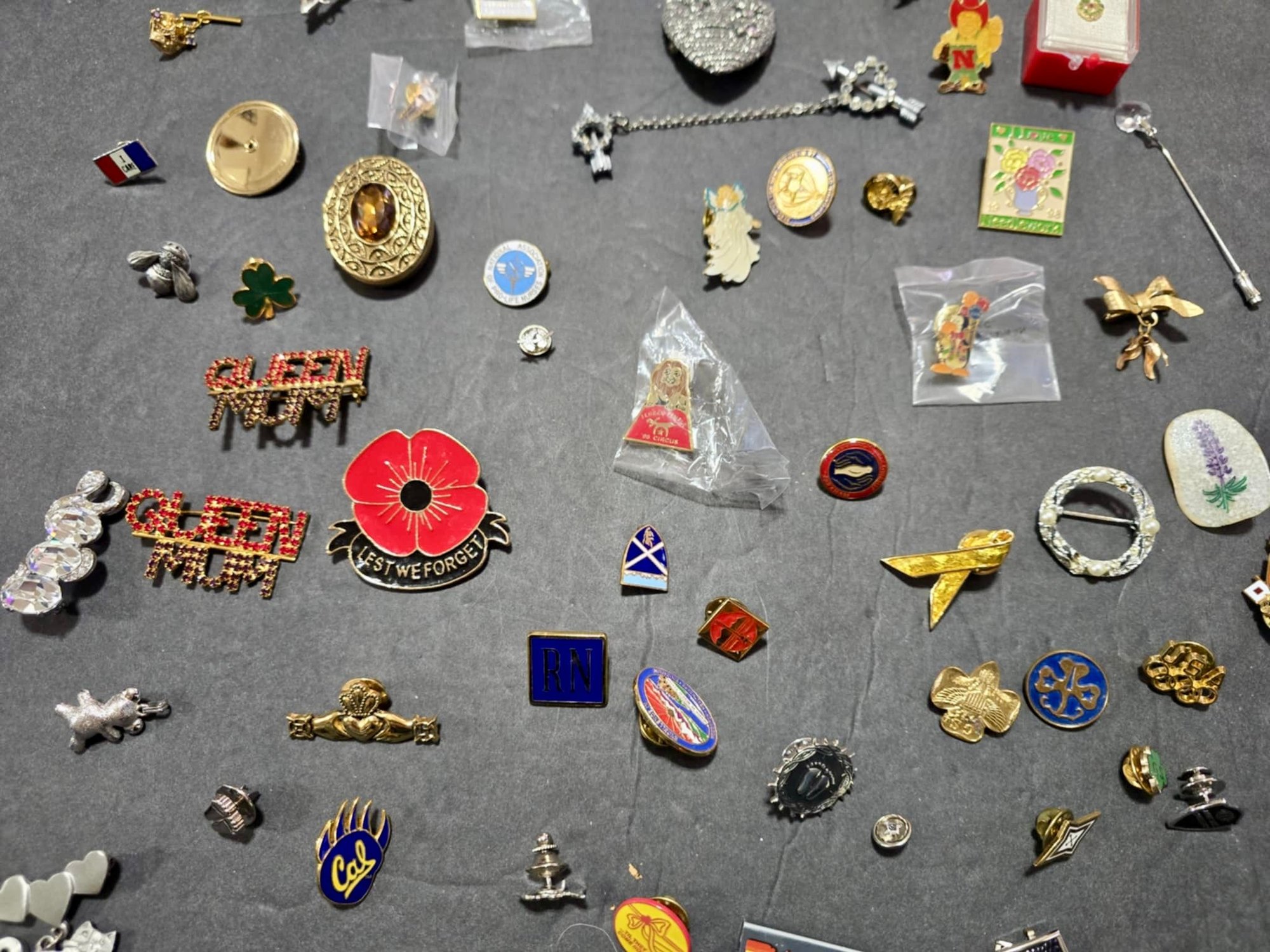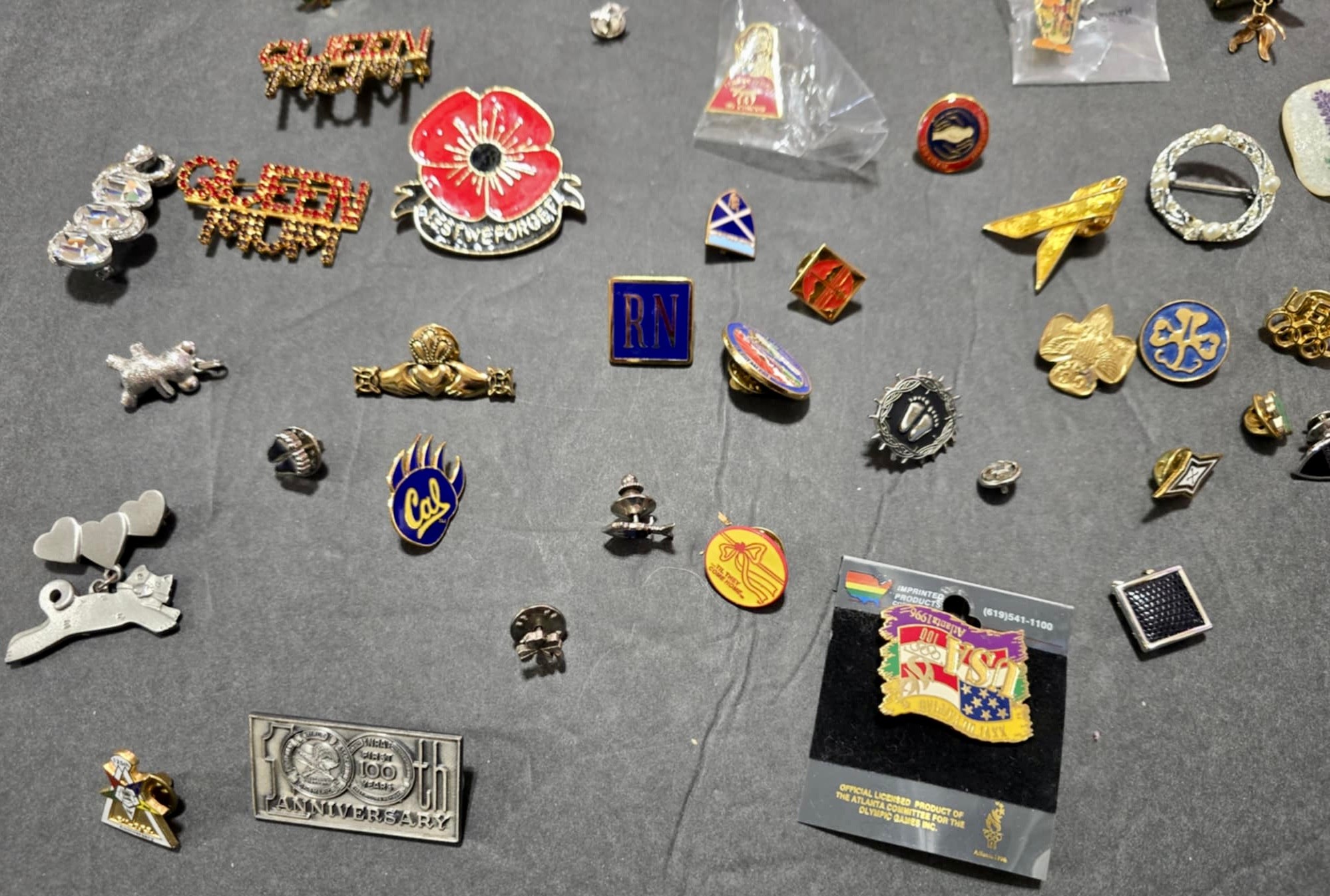 Group of pins, tie tacks and more. A couple are missing the back piece.