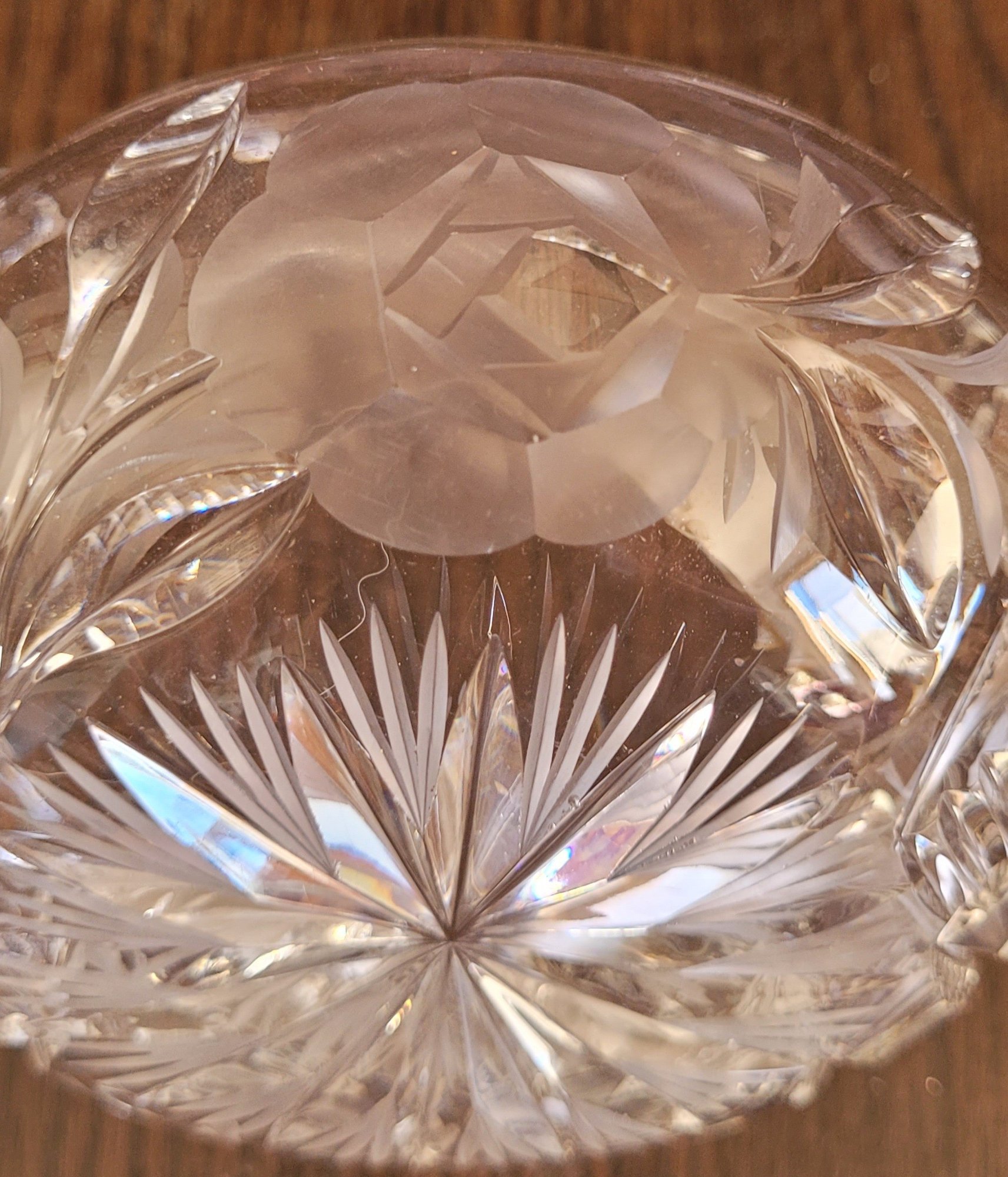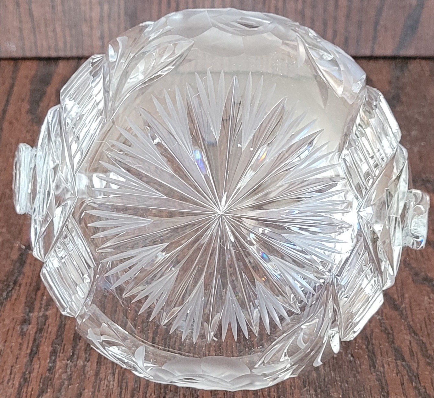 This measures 5" tall by 4.5" in diameter. I didn't see any chips or cracks. See pictures for details.