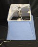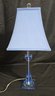Appears to be a Lucite Mid Century Modernism Style Table Lamp & Shade. Measures 10 x 10 x 24. Shade is a little dirty.