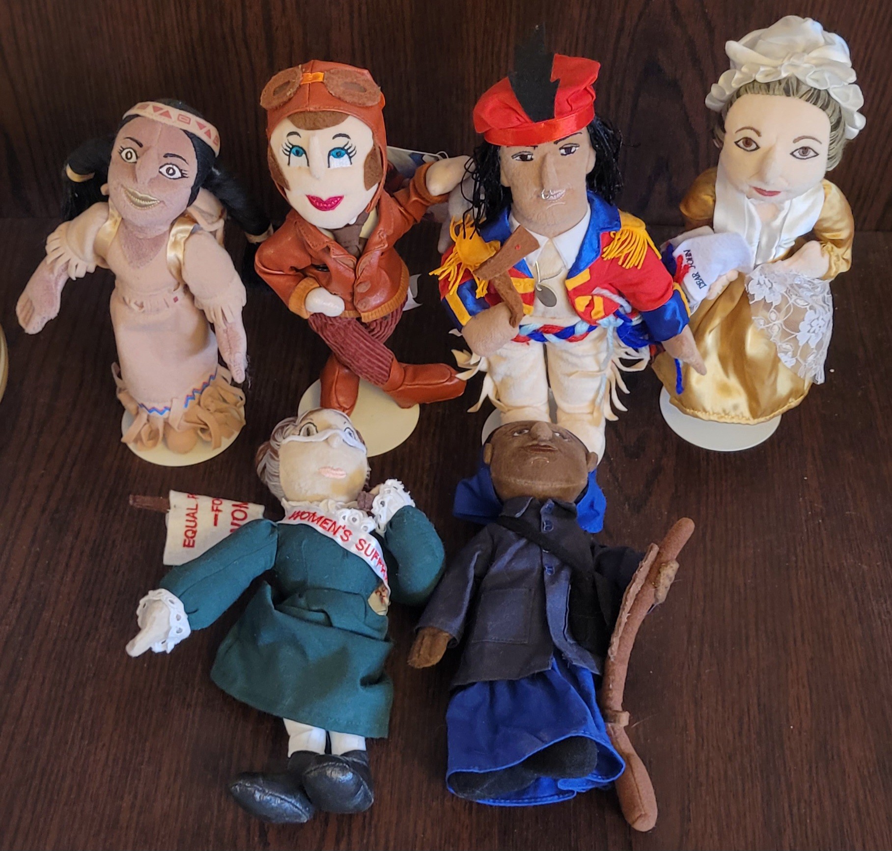 These measure about 10" tall. Four of them come with stands and the other two don't have them. See pictures for details.
