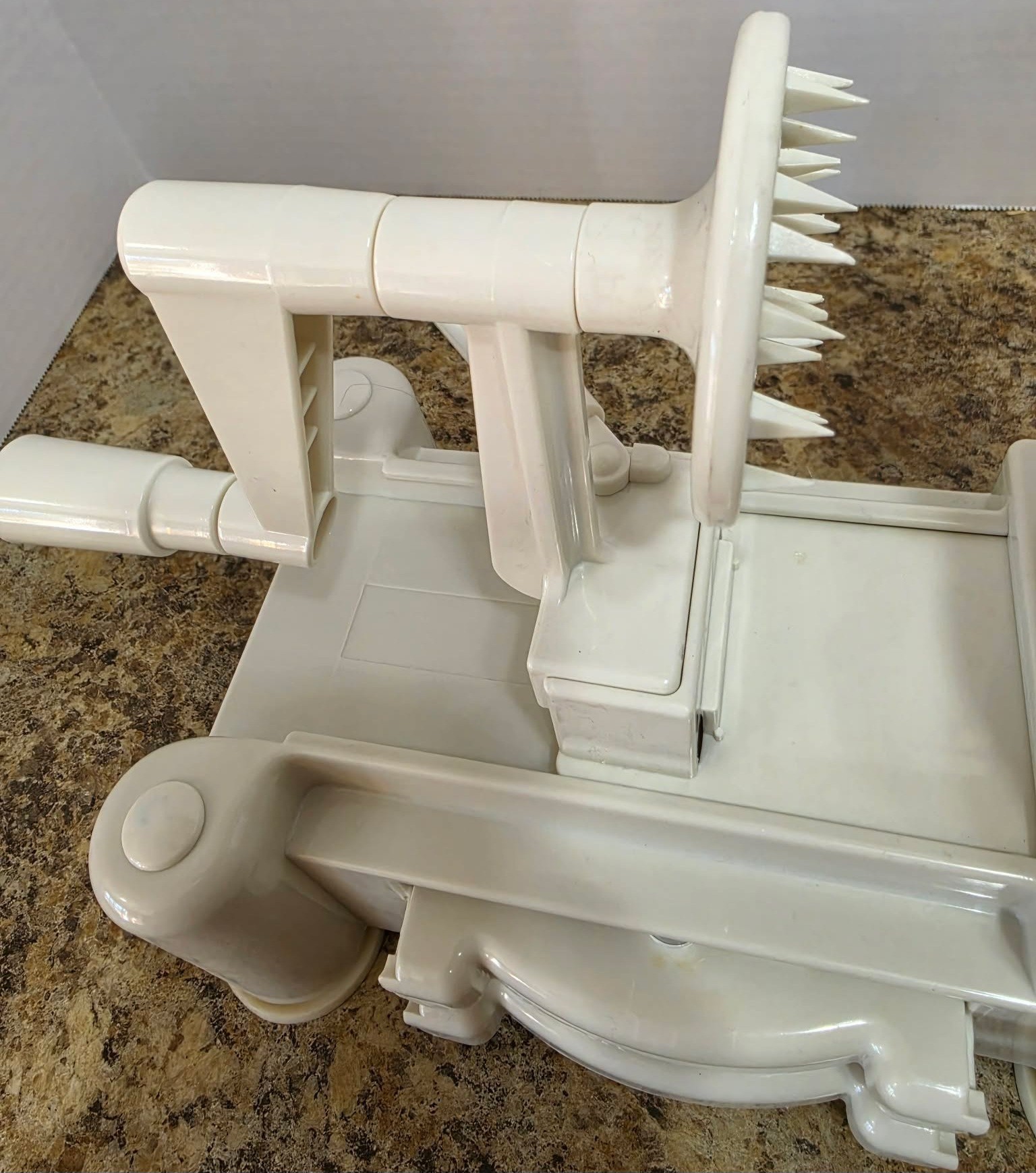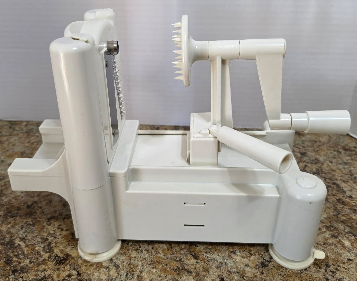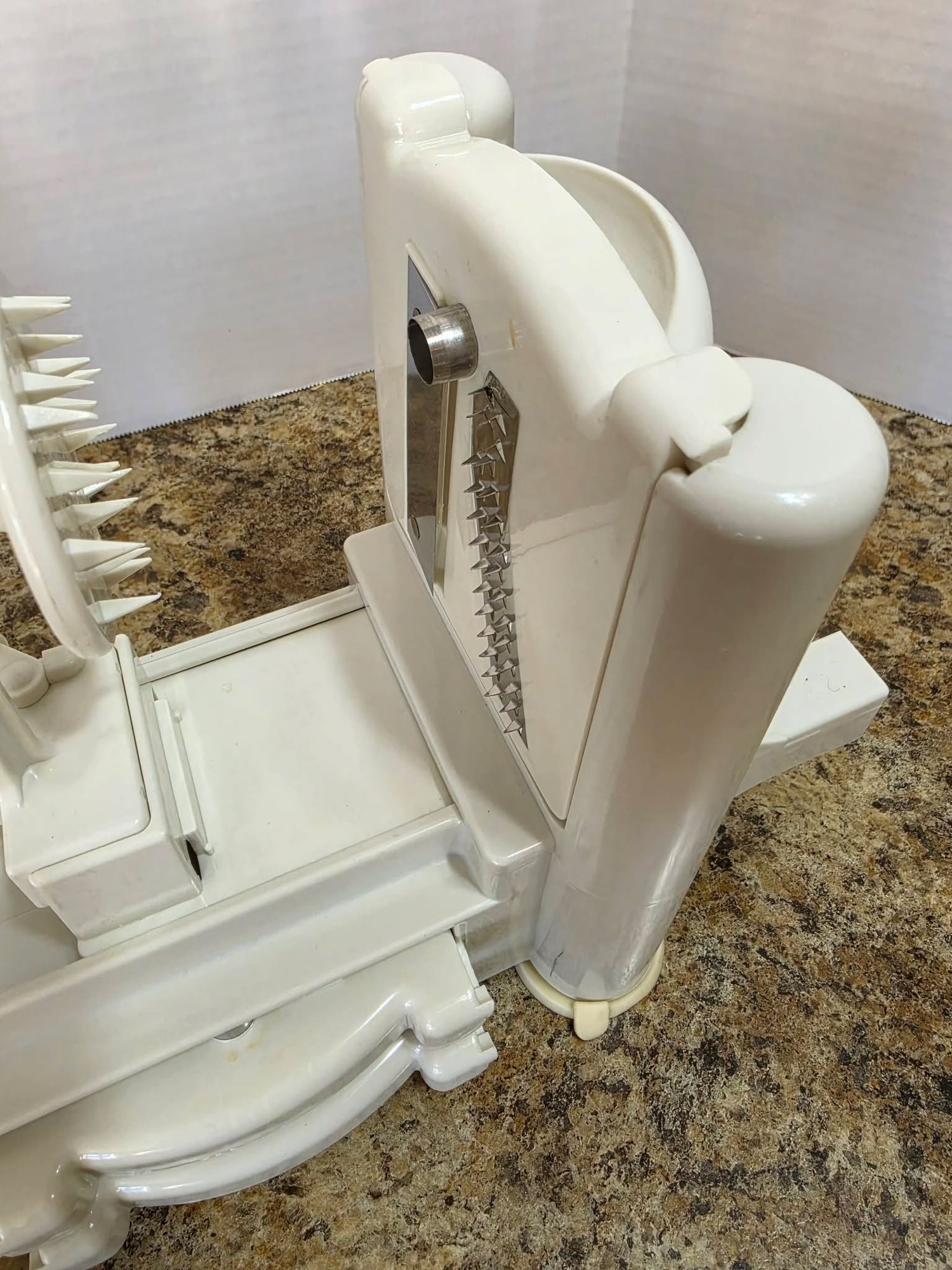 Manual vegetable spiralizer. Needs a little cleaning.